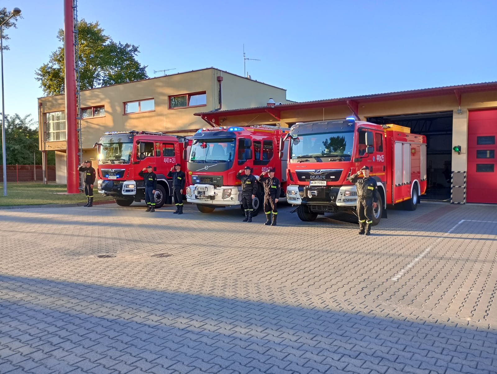 O godzinie 18:00 strażacy wyjechali samochodami przed garaż Komendy Powiatowej Państwowej Straży Pożarnej w Grodzisku Mazowieckim, gdzie w samochodach pożarniczych włączone zostały sygnały świetlne i dźwiękowe. Następnie w zorganizowanej zbiórce minutą ciszy oddali hołd tragicznie zmarłym druhom którzy poświęcili największą wartość - własne życie, niosąc pomoc drugiemu człowiekowi.