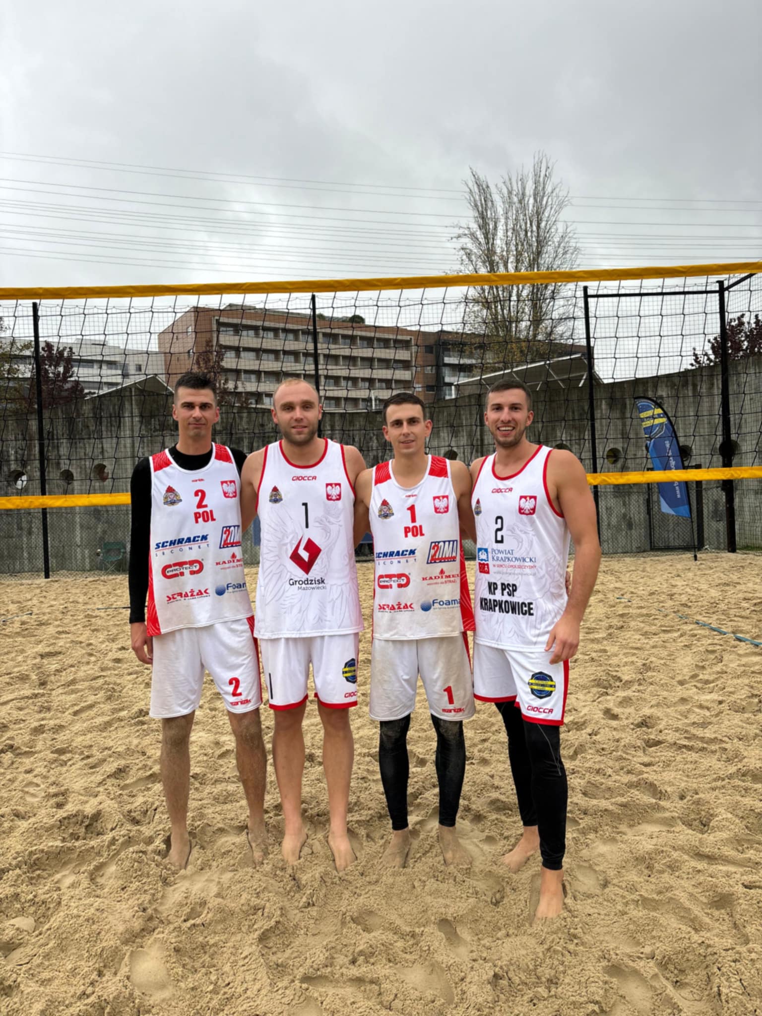 W pierwszym dniu rozgrywek odbyła się faza grupowa turnieju, zawodnik naszej komendy, który występował w parze z Jakubem Korczykiem ( KP PSP Krapkowice ) bez straty seta wygrali swoje 3 spotkania i z pierwszego miejsca zapewnili sobie awans do fazy finałowej turnieju. Najwięcej emocji dostarczył ich pojedynek z parą z Portugalii – wynik 21:19, 22:20. Druga polska para, Michał Barczyk i Adam Ojrzyński , również nie zawiodła oczekiwań . Walczyli z determinacją i także awansowali do dalszej fazy turnieju, dołączając do swoich kolegów w drodze po najwyższe trofea .