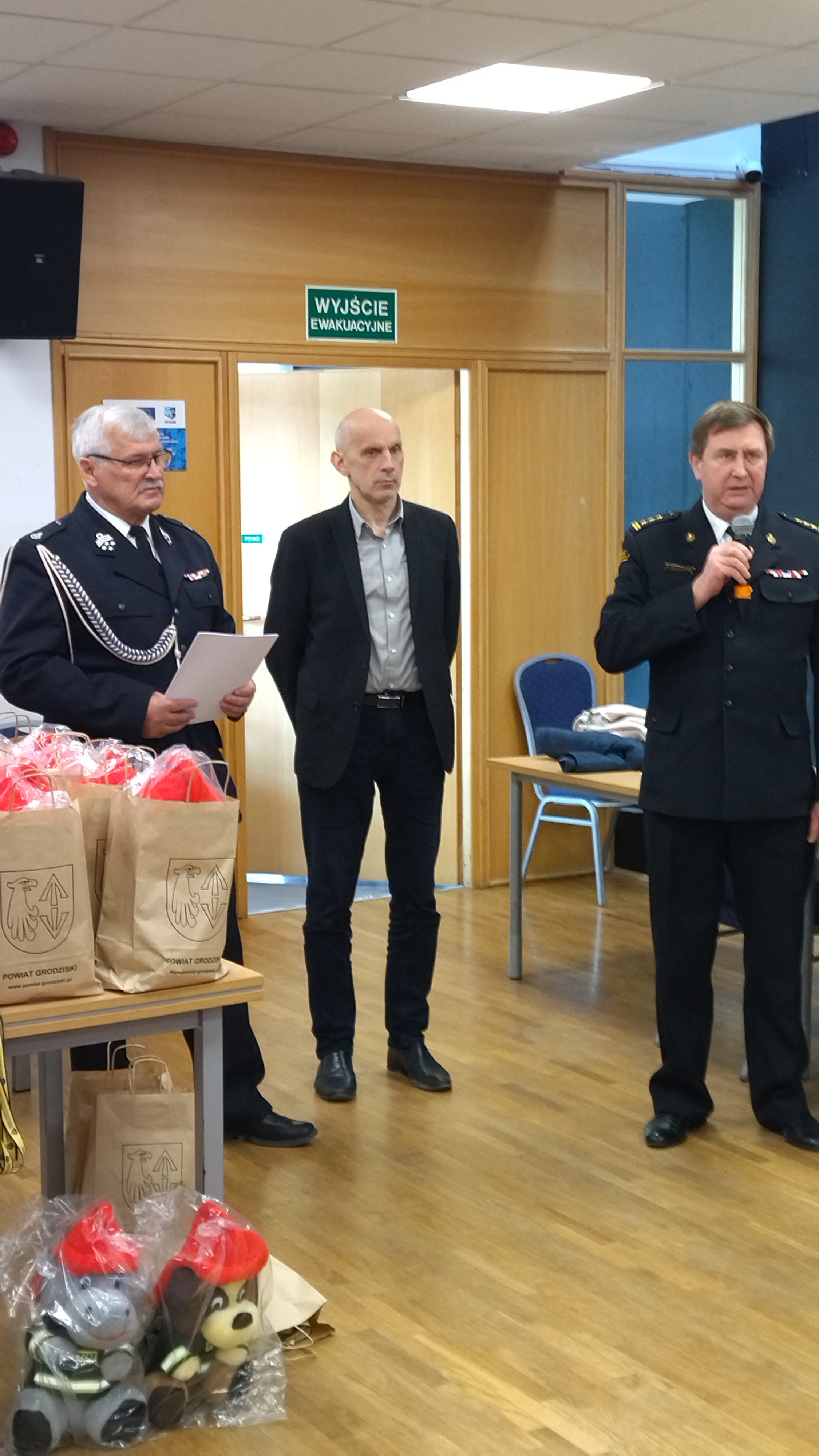 Starosta Grodziski Pan Marek Wieżbicki, Prezes Zarządu Powiatowego ZOSP RP w Grodzisku Mazowieckim druh Piotr Galiński oraz Komendant Powiatowy PSP w Grodzisku Mazowieckim st. bryg. Krzysztof Tryniszewski.