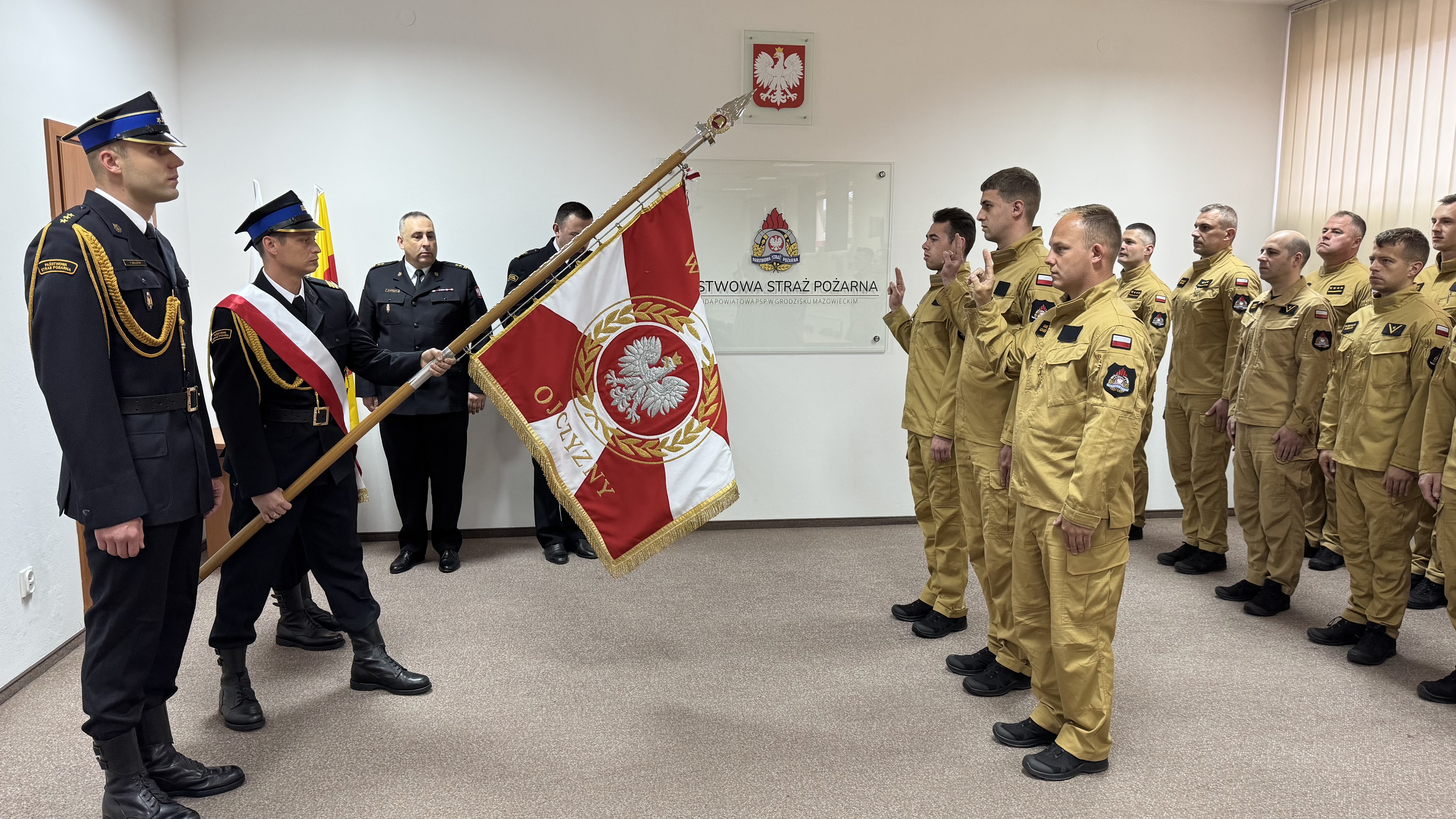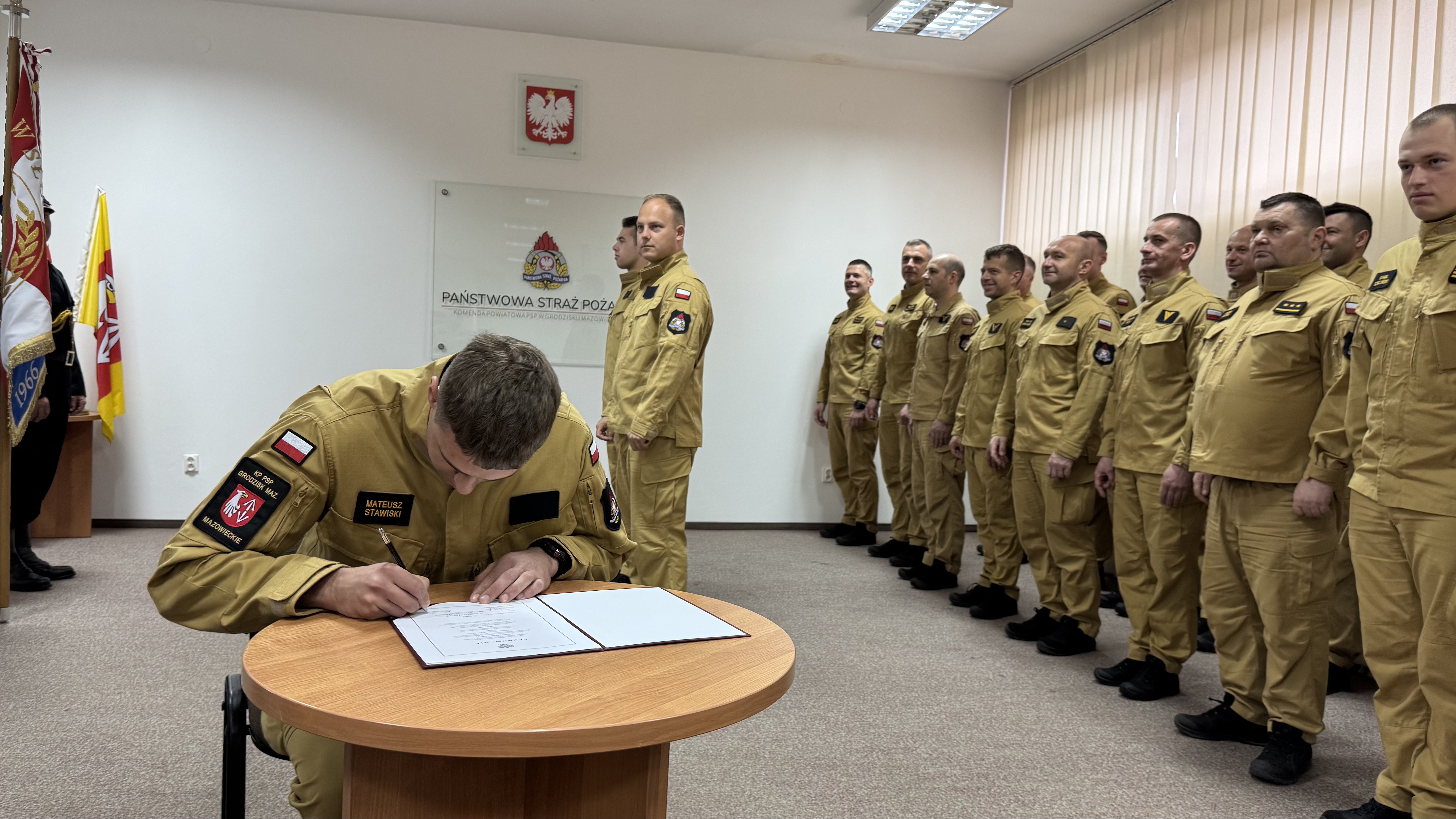 25 kwietnia br. w Komendzie Powiatowej Państwowej Straży Pożarnej w Grodzisku Mazowieckim odbyła się uroczystość ślubowania trzech strażaków rozpoczynających służę. W obecności funkcjonariuszy Komendy Ślubowanie przyjął Komendant Powiatowy PSP w Grodzisku Mazowieckim bryg. Marcin Strzyżowski. W szeregi grodziskich strażaków wstąpili: