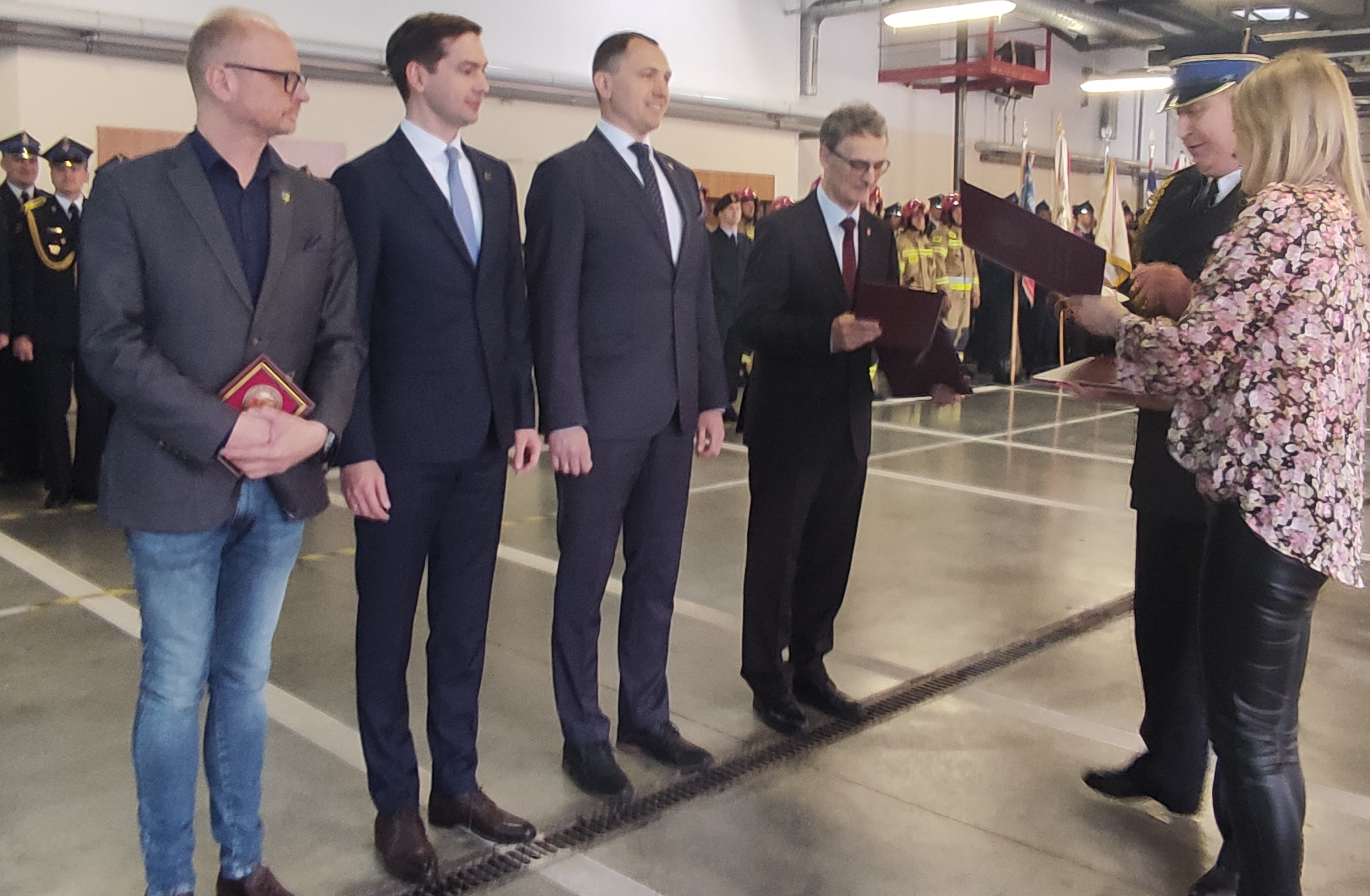 Brązową Odznaką zasłużony dla Ochrony Przeciwpożarowej odznaczony został st. ogn. Tomasz Kałużny, a Złotym Znakiem Związku Ochotniczych Straży Pożarnych RP odznaczony został dh Piotr Galiński Prezes Zarządu Oddziału Wojewódzkiego ZOSP RP.