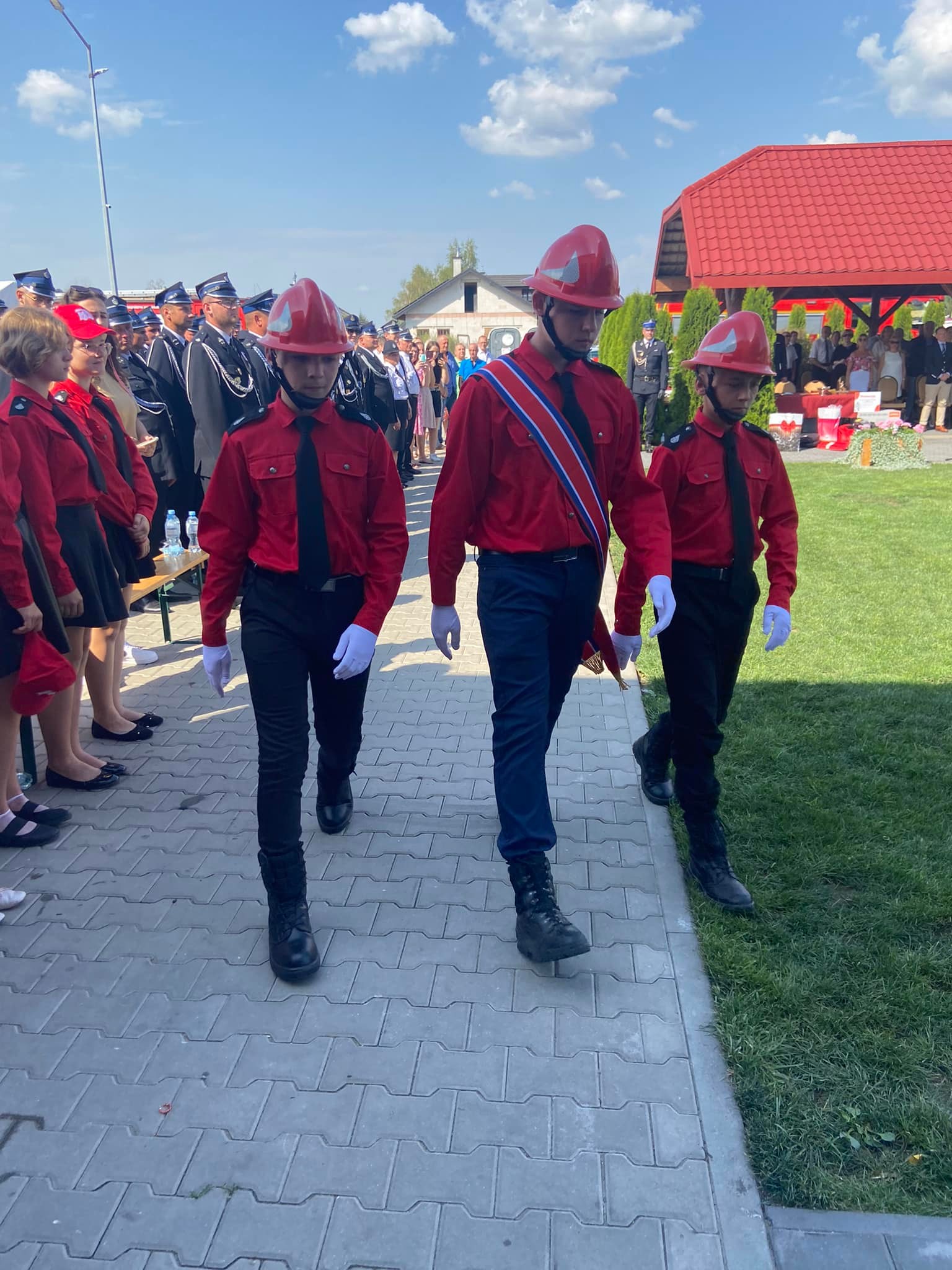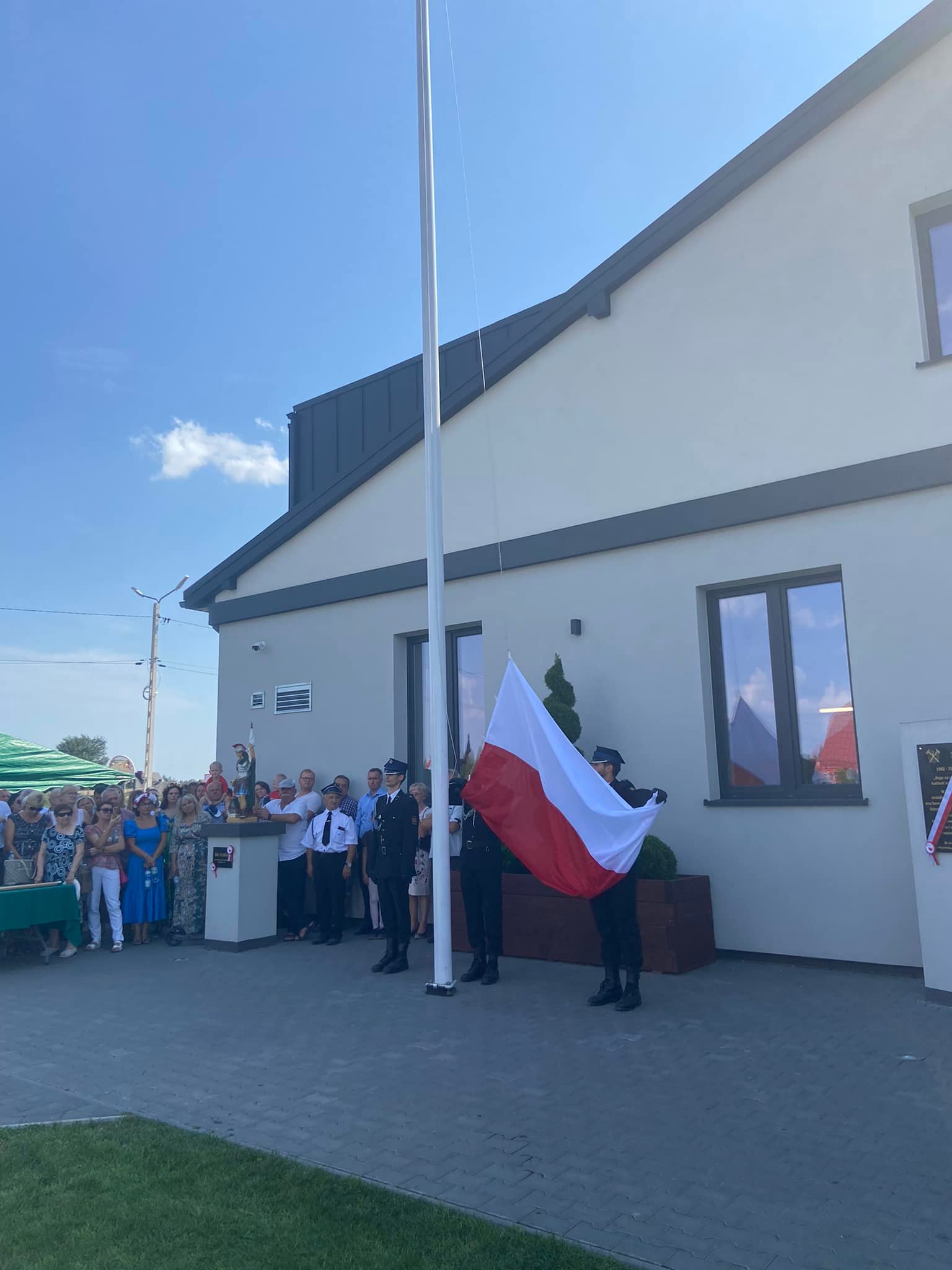 W dalszej części uroczystości miało miejsce poświęcenie przez proboszcza księdza Jerzego Króla nowego budynku remizy, proporca Młodzieżowej Drużyny Pożarniczej, figury świętego Floriana oraz okolicznościowej tablicy. Proporzec został wręczony pocztowi sztandarowemu MDP Żelechów. Radni gminy pani Wanda Redestowicz oraz pan Mariusz Luc odsłonili pamiątkową tablicę. Delegacja gości pod przewodnictwem wójta gminy Piotra Rybka oraz prezesa OSP Mariusza Pałasza przecięła wstęgę otwierając oficjalnie remizę.