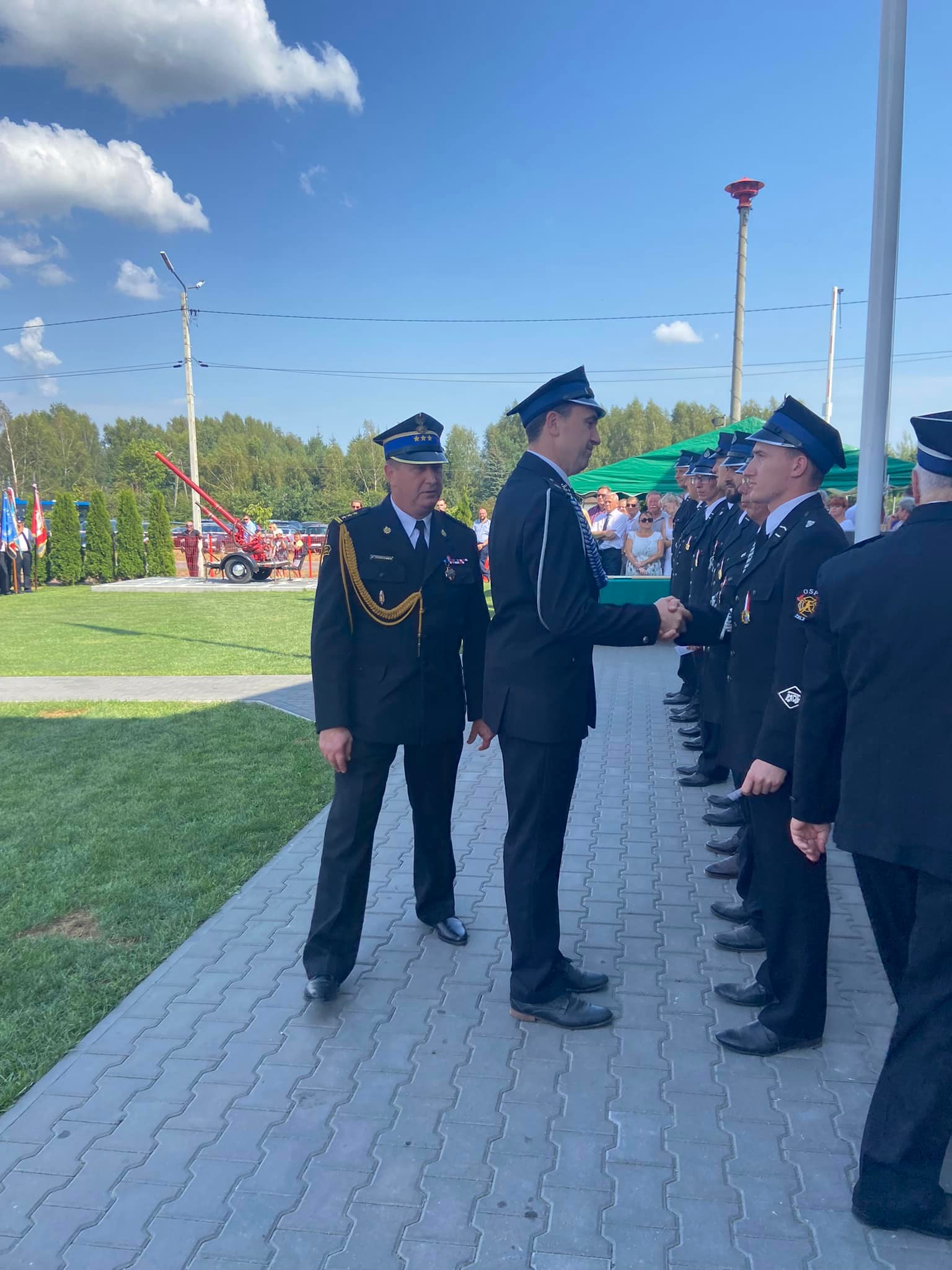 Na zakończenie apelu były przemówienia zaproszonych gości. Podczas nich komendant powiatowy PSP w Grodzisku Mazowieckim st. bryg. Krzysztof Tryniszewski wręczył prezesowi OSP pamiątkową tabliczkę upamiętniającą jubileusz jednostki.