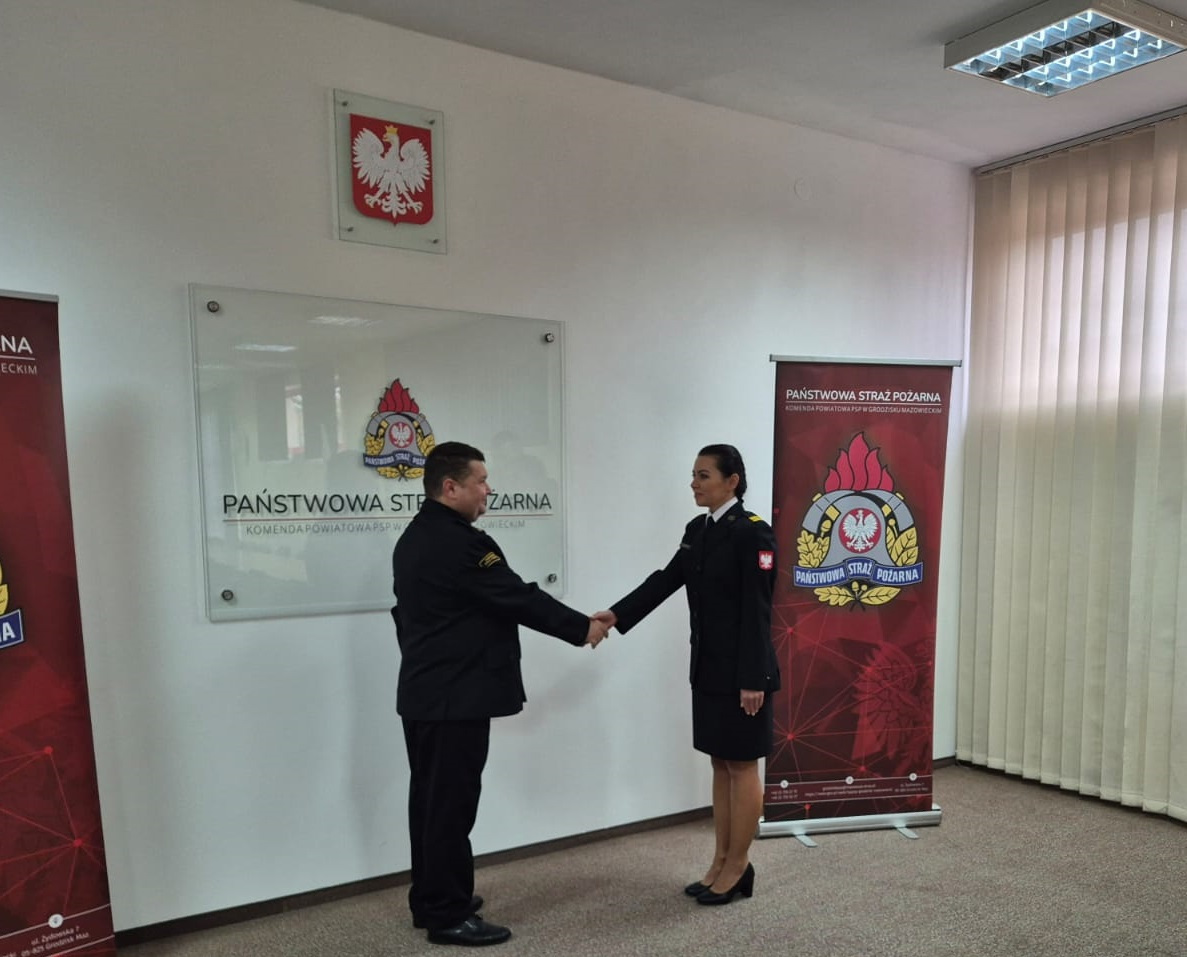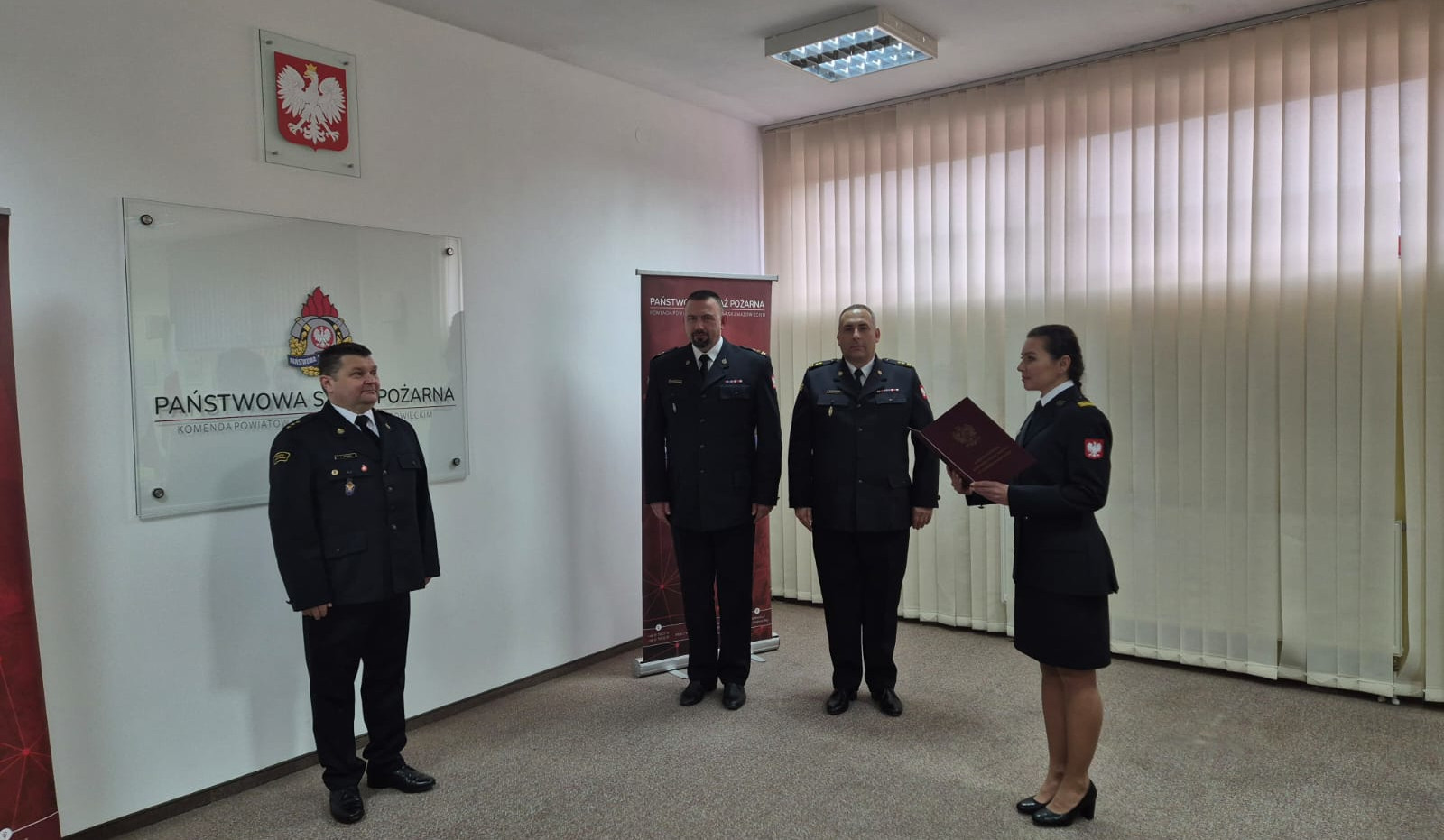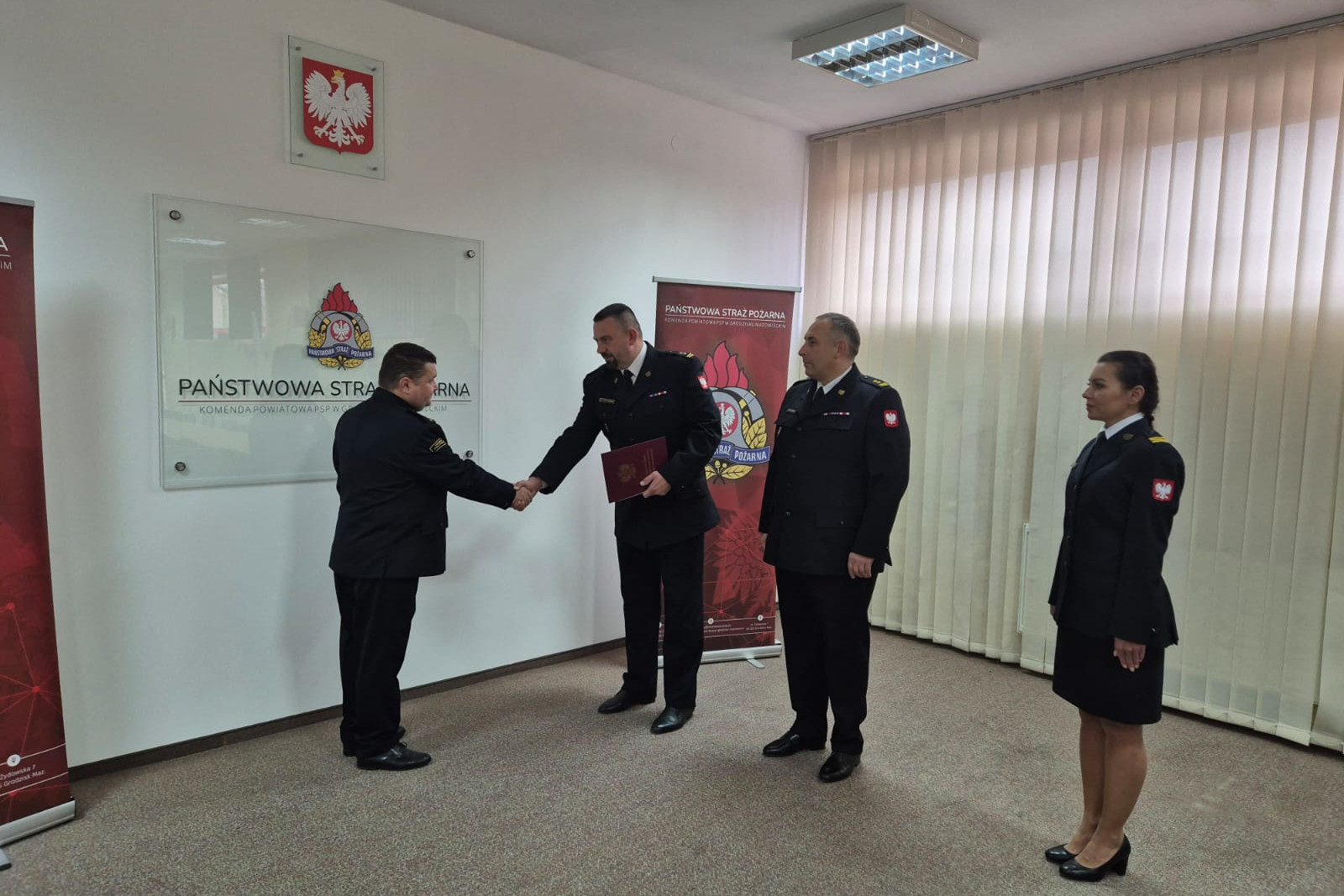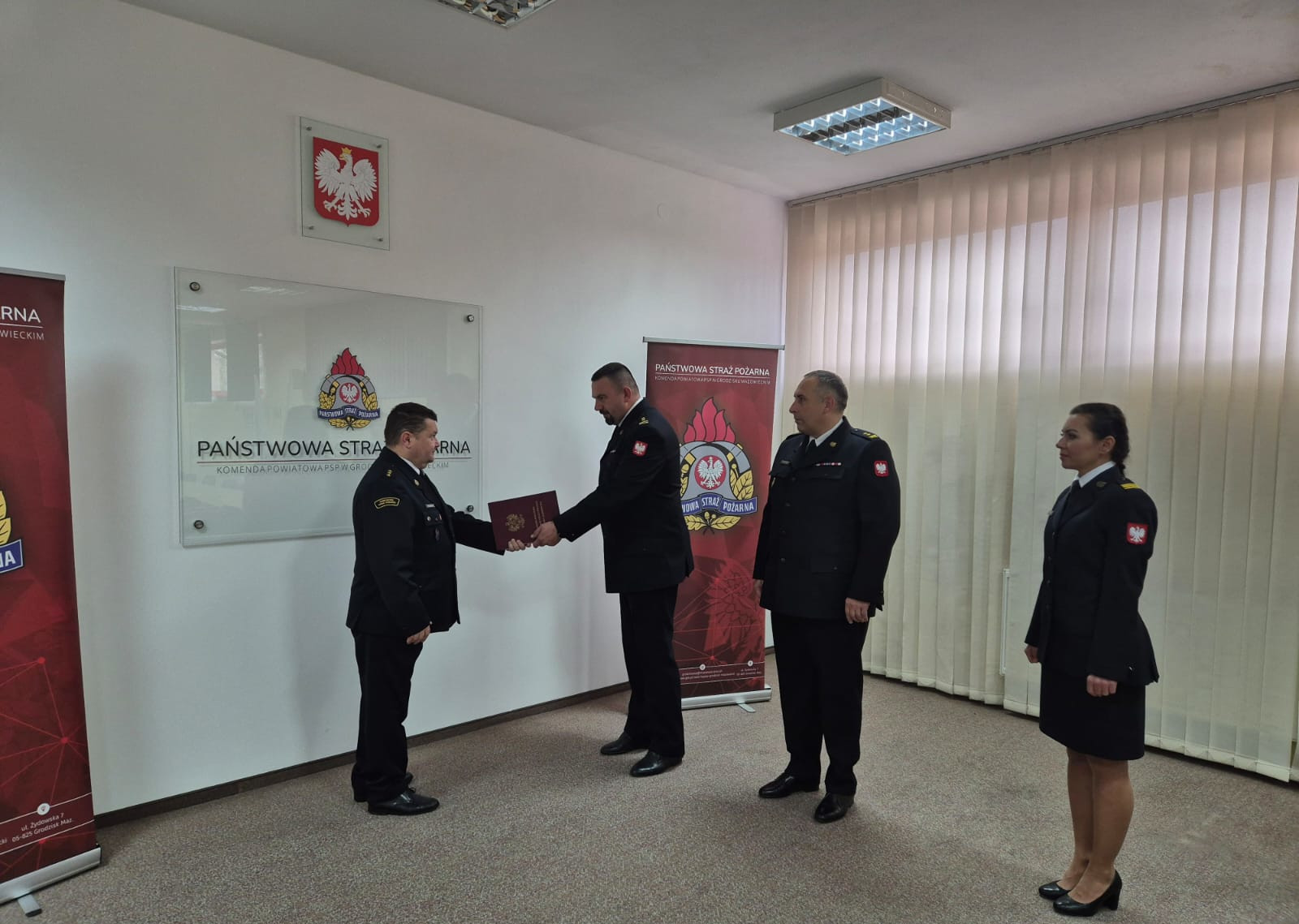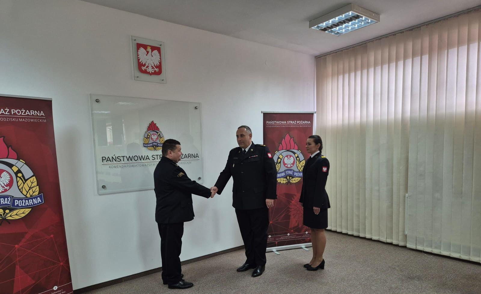 Dnia 31 października 2024 r. p.o. Komendant Powiatowy PSP w Grodzisku Mazowieckim bryg. Marcin Strzyżowski, w obecności swojego Zastępcy bryg. Marka Szymanka oraz pracownika Samodzielnego Stanowiska ds. Kadrowych st. sekc. Anny Marszalek , z dniem 1 listopada 2024 r. mianował kpt. Rafała Antosa na stanowisko Naczelnika Wydziału Operacyjno - Technicznego.