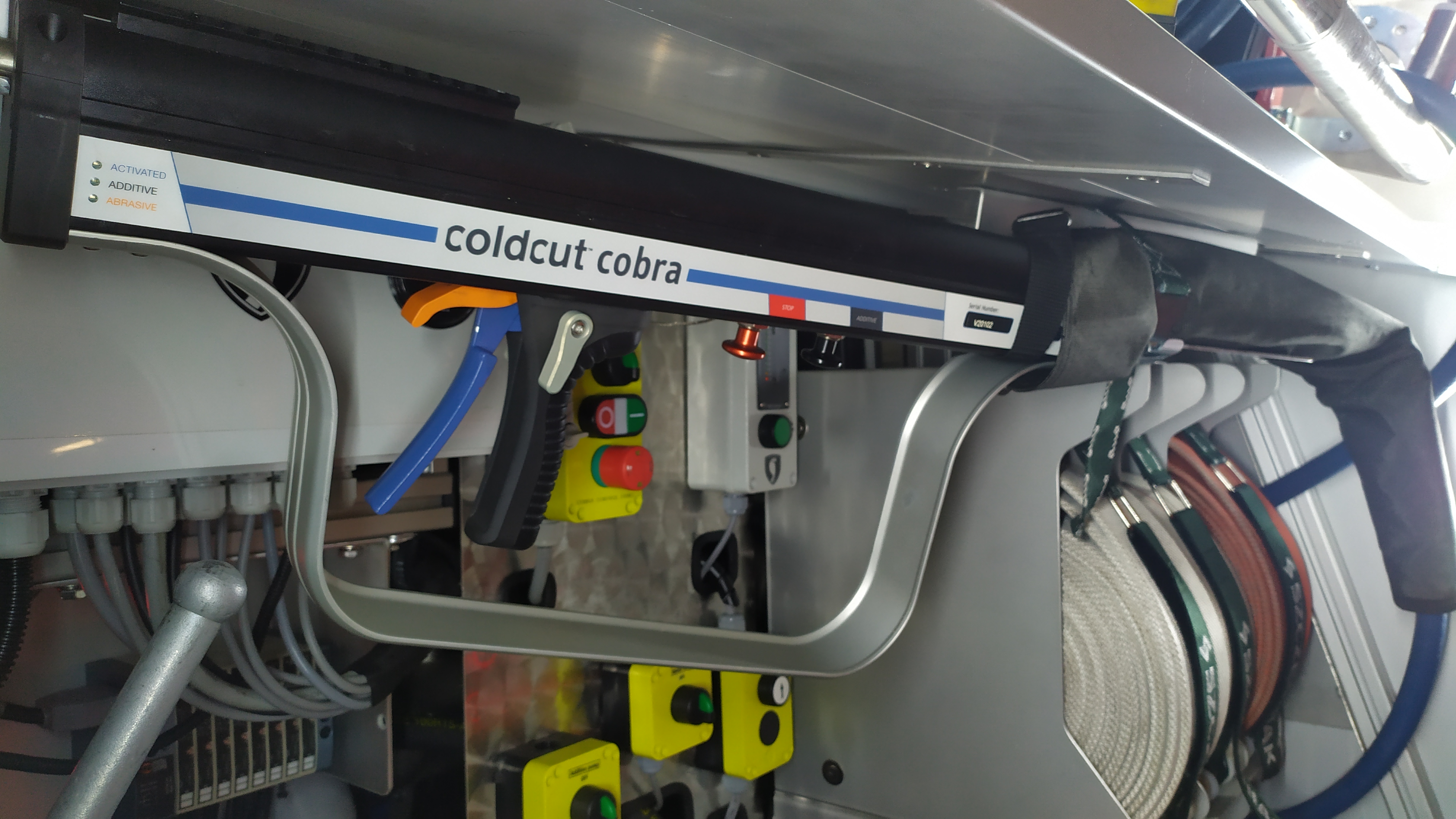 Auto wyposażone jest w nowoczesny system Coldcut Cobra, tj. urządzenie gaśnicze, które wytwarza mgłę wodną pod bardzo wysokim ciśnieniem oraz umożliwia cięcie materiałów strumieniem wody wzbogaconym specjalnym cierniwem.. Wysokie ciśnienie strumienia wody pozwala materiałowi ściernemu na szybkie przebicie wszystkich znanych materiałów budowlanych, umożliwiając wprowadzenie wydajnej mgły wodnej o wysokiej prędkości do pomieszczenia objętego pożarem. Zapewnia to bezpieczne działania strażaków podczas pożarów wewnętrznych, a wysokie ciśnienie mgły wodnej, pozwala zminimalizować straty popożarowe spowodowane zalaniem wodą użytą do gaszenia. Coldcut Cobra jest pierwszym w Polsce urządzeniem gaśniczo-tnącym umożliwiającym podanie obok mgły wodnej innych środków gaśniczych np.: pianotwórczych, zmiękczających wodę oraz specjalnych do gaszenia akumulatorów w autach elektrycznych.