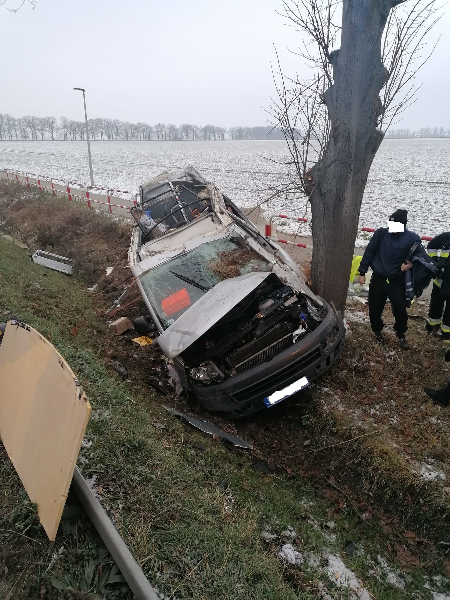 8 grudnia 2021 r. o godzinie 14:58 do Stanowiska Kierowania Komendanta Powiatowego w Grodzisku Wlkp. wpłynęło zgłoszenie, że na dordze krajowej nr 32 bus wypadł z drogi i uderzył w drzewo.