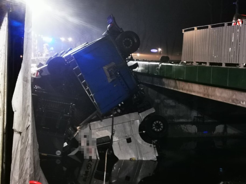 CIĘŻARÓWKA WPADŁA DO RZEKI