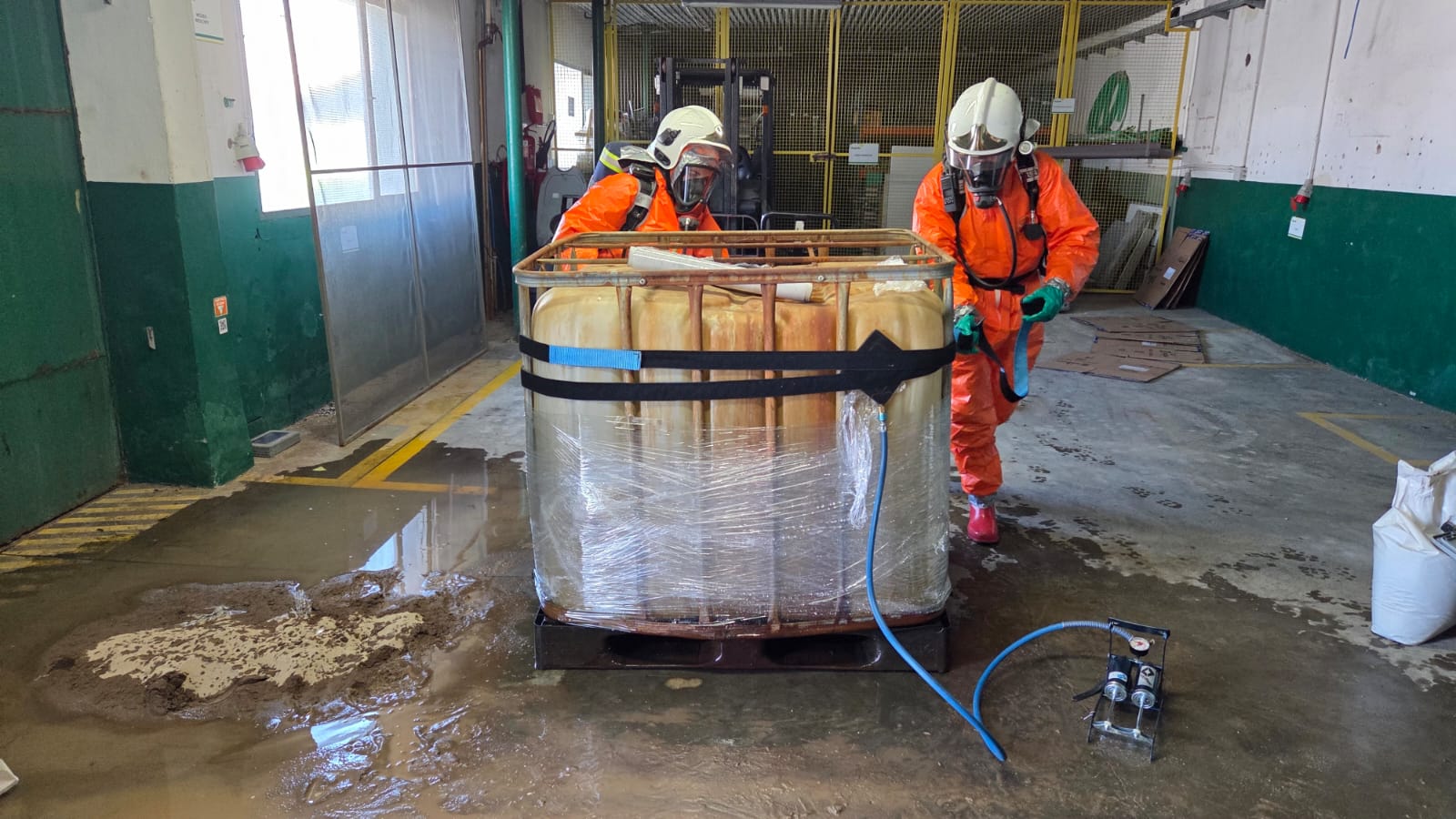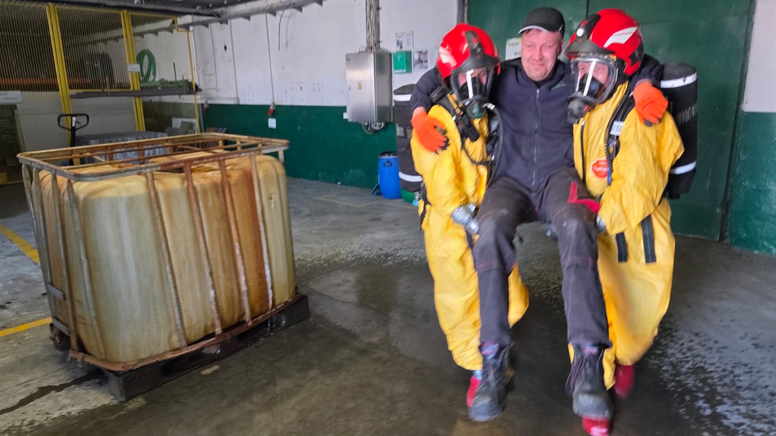 Przyjęty scenariusz ćwiczeń zakładał, że około godziny 12:00 doszło do rozszczelnienia zbiornika zawierającego substancję chemiczną. Zdarzenie miało miejsce podczas prac konserwacyjnych w pomieszczeniu, w którym magazynowano środki chemiczne wykorzystywane w procesie produkcyjnym.