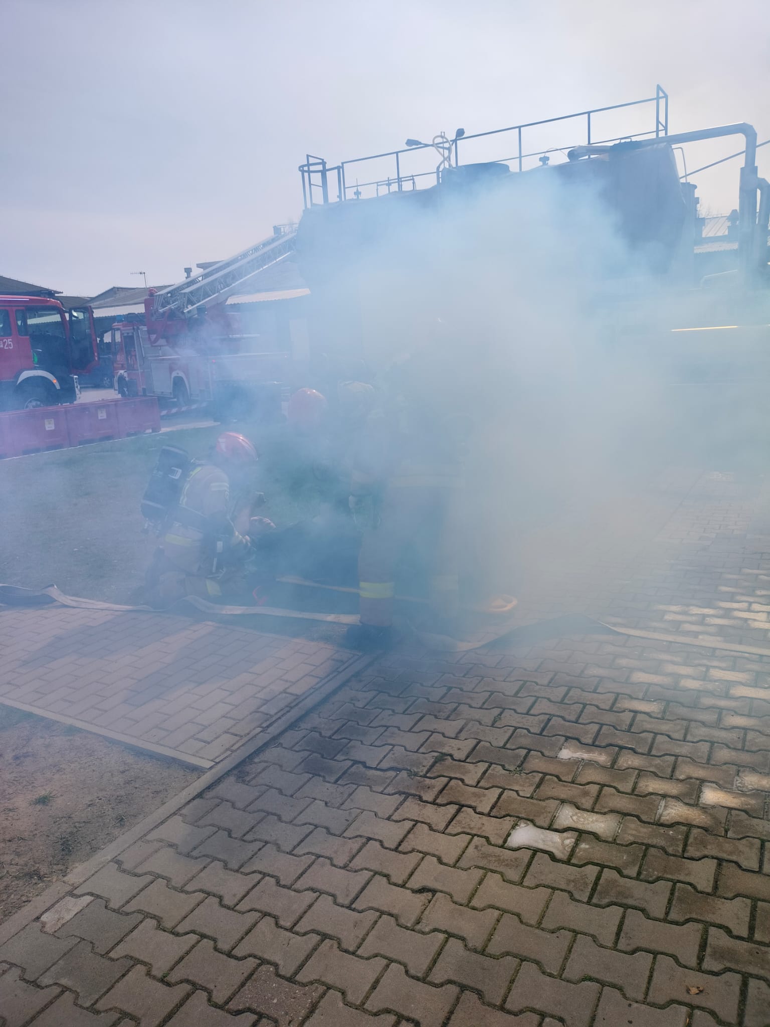 Ćwiczący podjęli działania polegające na: zlokalizowaniu źródła pożaru, jego ugaszeniu, odnalezieniu osób poszkodowanych, ich ewakuacja wraz z udzieleniem kwalifikowanej pierwszej pomocy. Ponadto konieczne było oddymienie pomieszczeń oraz podjęcie czynności zmierzających do ochrony pomieszczeń sąsiednich przed rozprzestrzeniającym się pożarem.