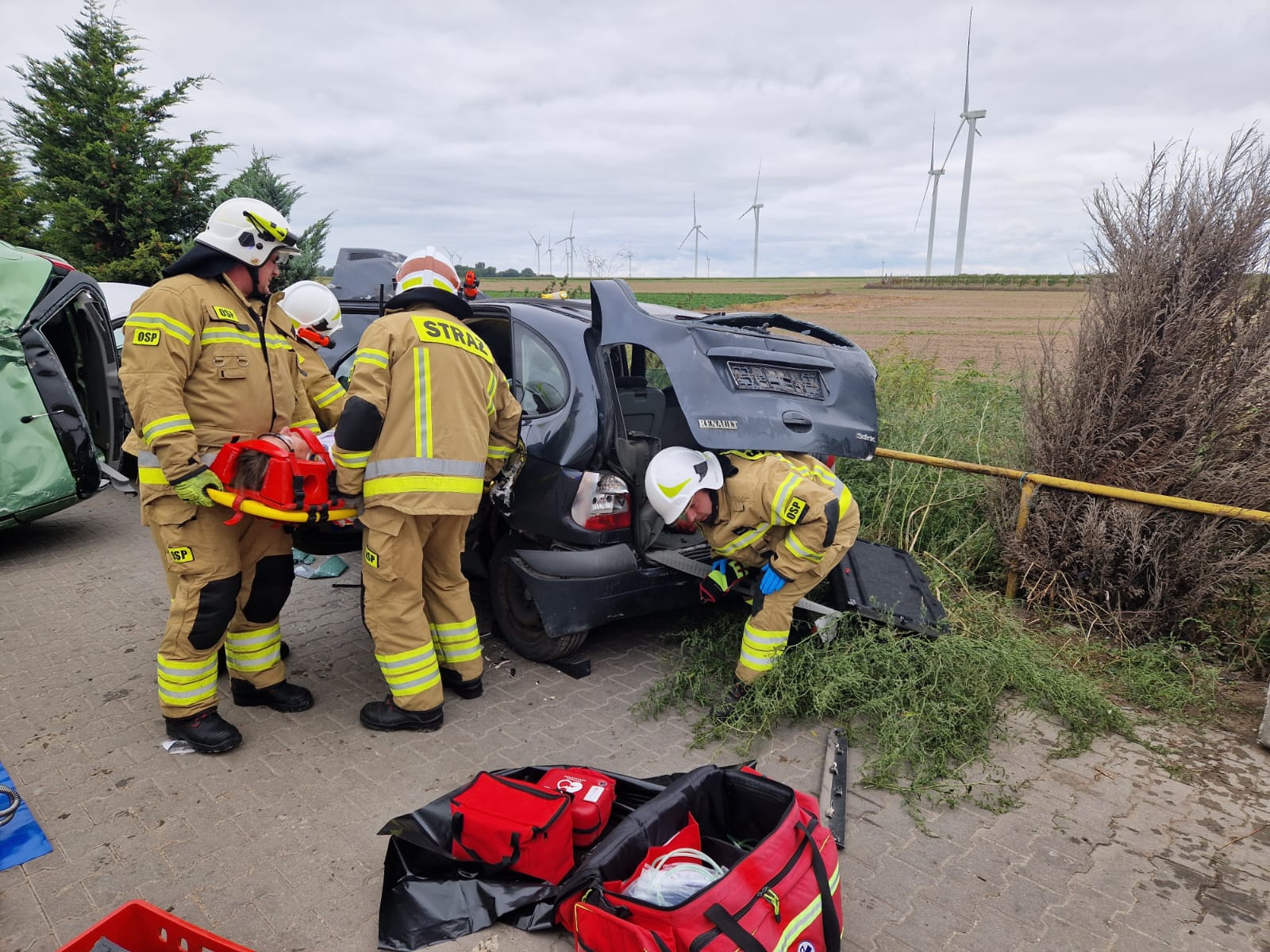 W odległości około 15 metrów od źródła pożaru znajduje się transformator umieszczony na słupach energetycznych Pracownicy informują dyrekcję firmy oraz podejmują pierwsze działania gaśnicze wskutek czego dwóch pracowników zostaje poparzonych, Silne zadymienie uniemożliwia próbę udzielenia im pomocy, jeden z nich stracił przytomność. Trwa ewakuacja pracowników w wyznaczone miejsce. W momencie ewakuacji pojazdów firmowych z zagrożonego terenu dochodzi do zdarzenia samochodu ciężarowego z samochodem osobowym na drodze dojazdowej. W wyniku uderzenia doszło do rozszczelnienia zbiornika paliwa w ciągniku siodłowym, a w drugim pojeździe przebywa osoba poszkodowana bez funkcji życiowych. Uszkodzone pojazdy blokują dojazd do firmy oraz pożaru.