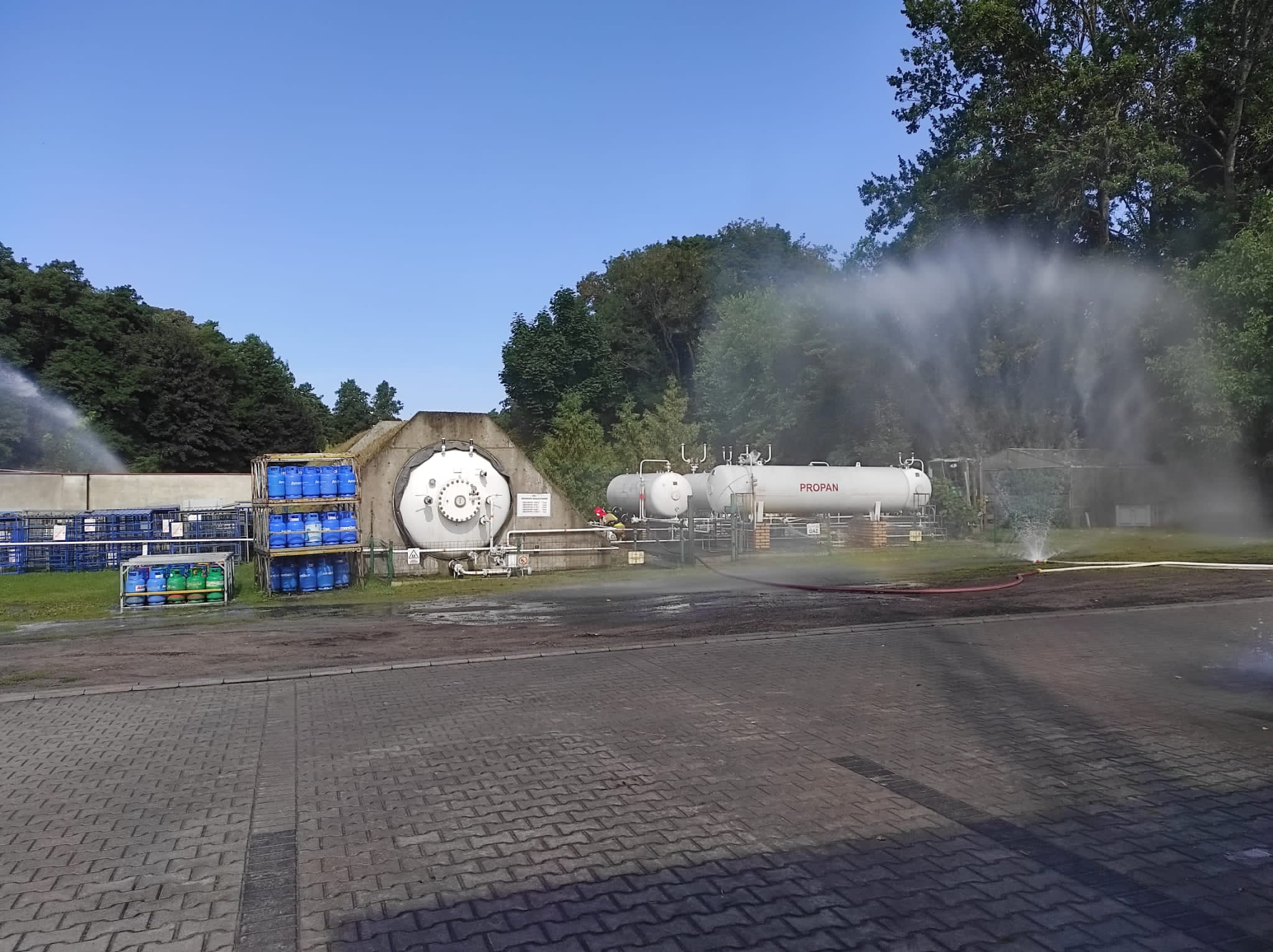 24 sierpnia na terenie zakładu o zwiększonym ryzyku wystąpienia poważnej awarii przemysłowej (ZZR) - AUTOBUTLEGAZ Szczygieł Sp.j. w Rakoniewicach odbyły się ćwiczenia taktyczno - bojowe.
