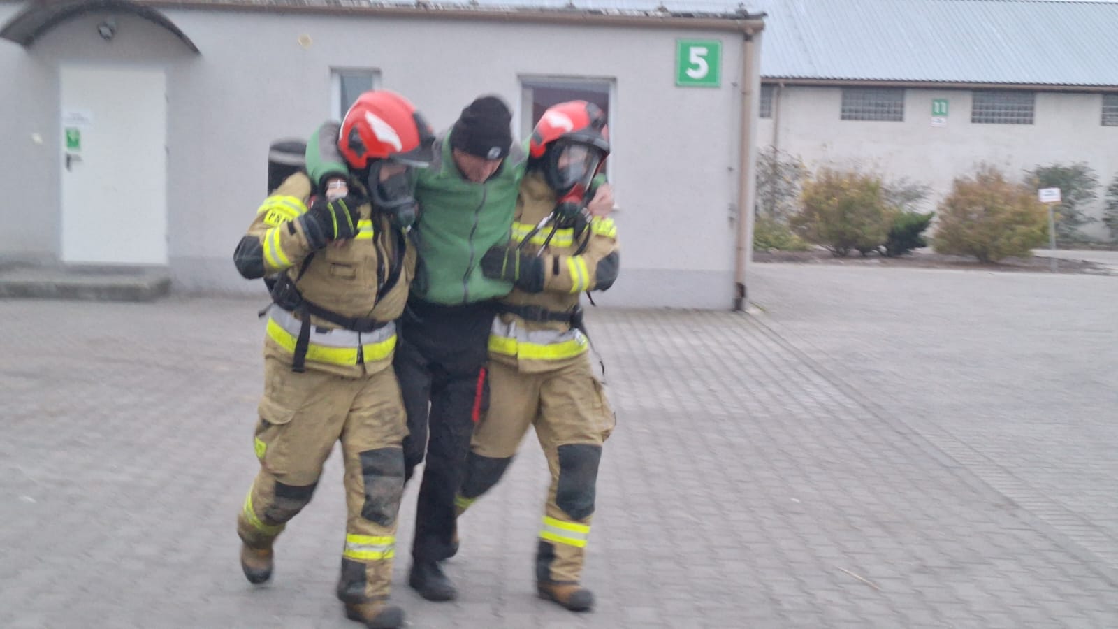 W wyniku symulowanego zdarzenia dwóch pracowników zostało poszkodowanych, natomiast kierowca pojazdu – pozostając w szoku – oddalił się z miejsca zdarzenia.