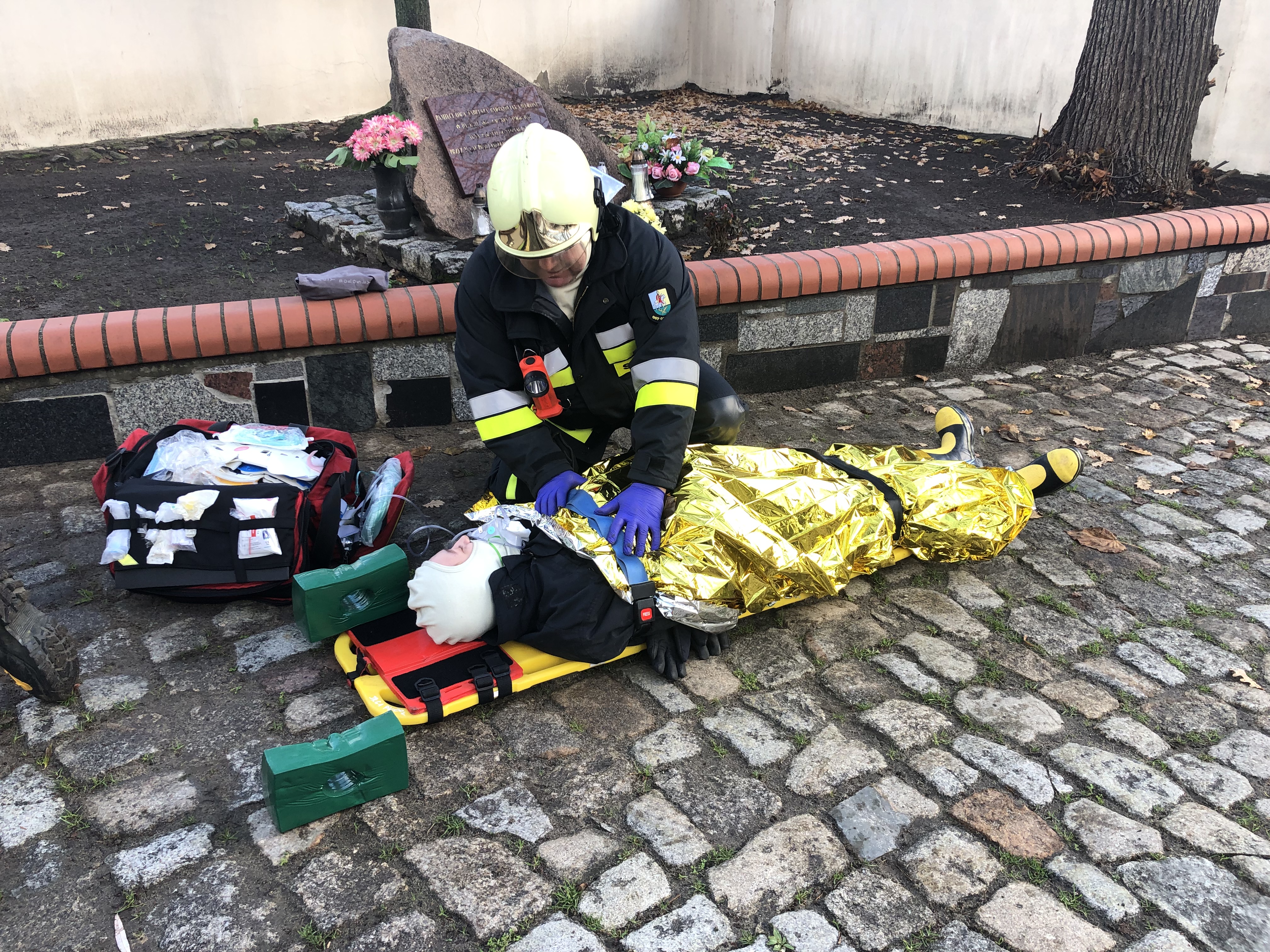 Po zakończeniu zasadniczej części strażacy zapoznali się z charakterystyką kościoła, warunkami ewakuacji, usytuowaniem głównych wyłączników prądu, lokalizacją hydrantów zewnętrznych oraz drogami dojazdowymi i możliwością manewrowania samochodami pożarniczymi.