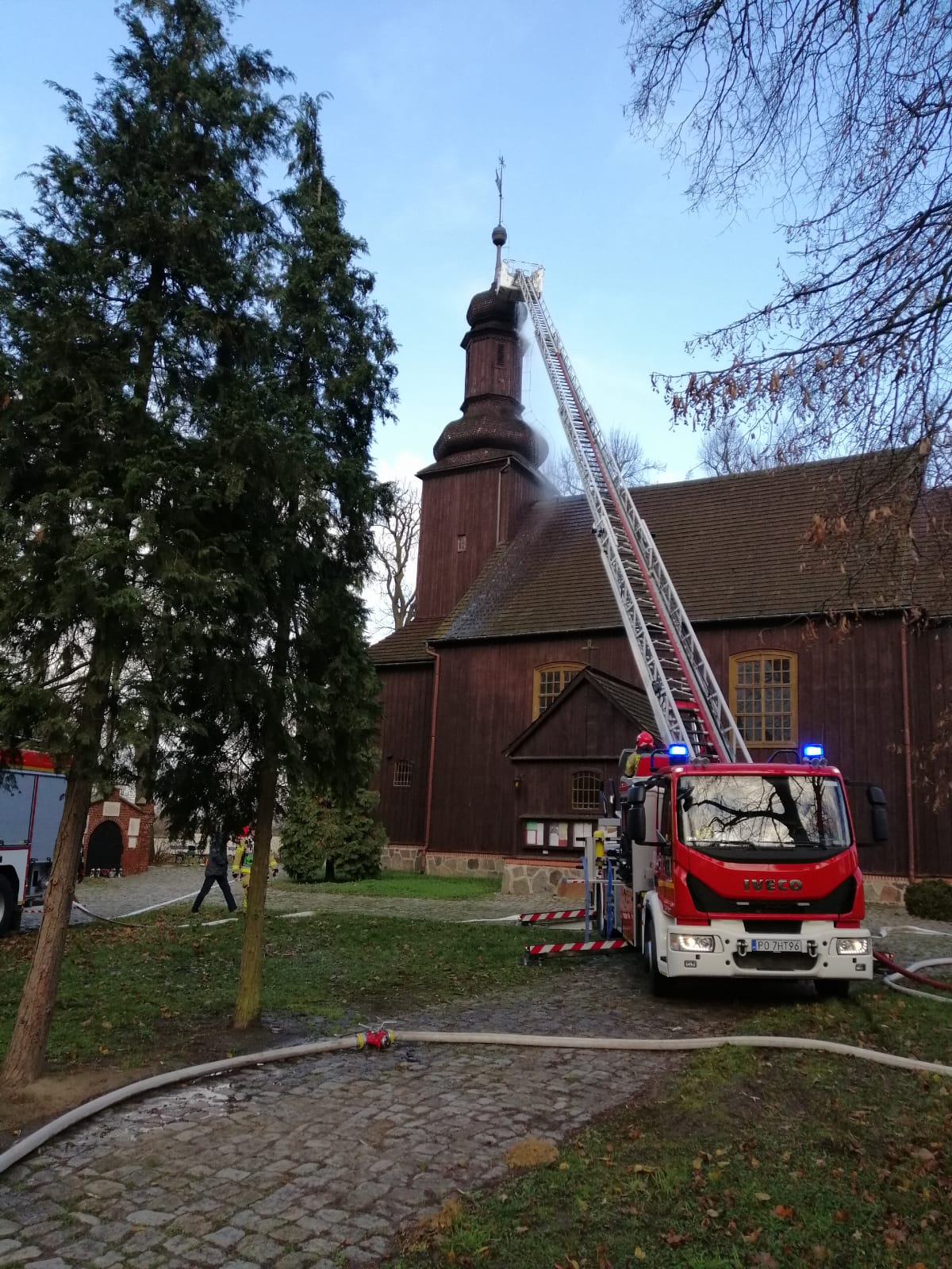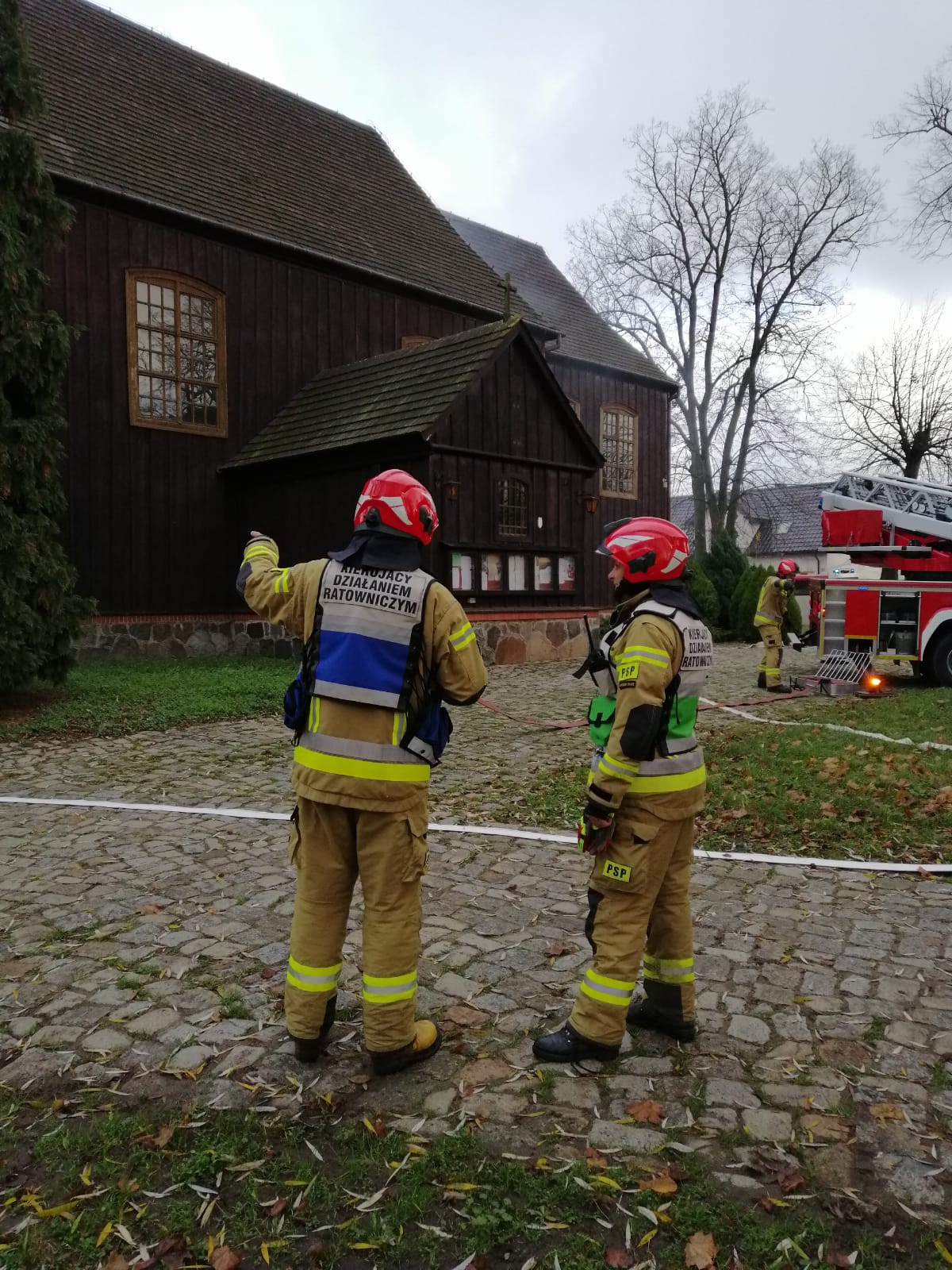 24 listopada br. o godz. 10 00 strażacy Jednostki Ratowniczo – Gaśniczej w Grodzisku Wlkp., OSP Granowo, OSP Granówko oraz OSP Kąkolewo wzięli udział w ćwiczeniach na obiekcie drewnianego Kościoła pw. Św. Marcina w Granowie.