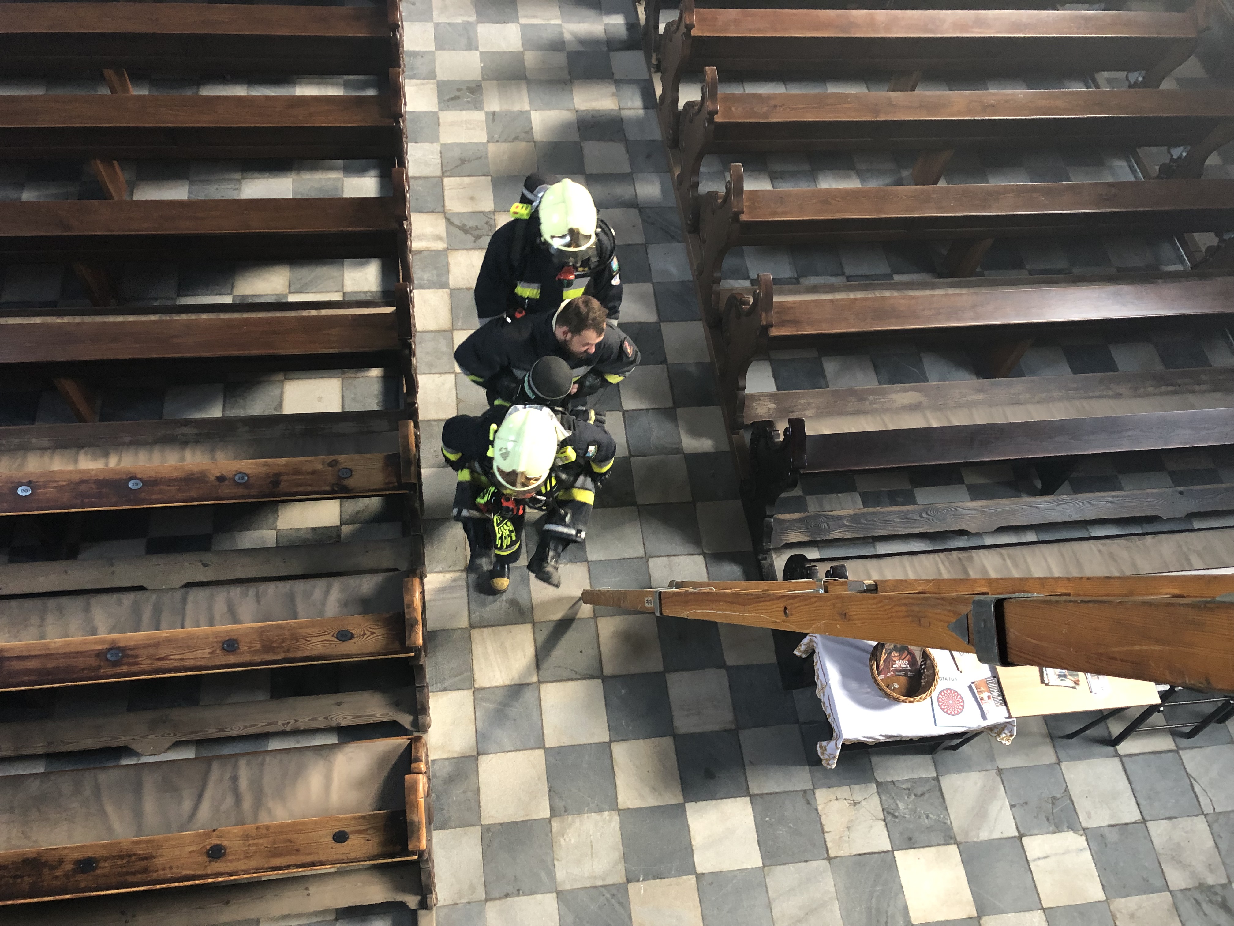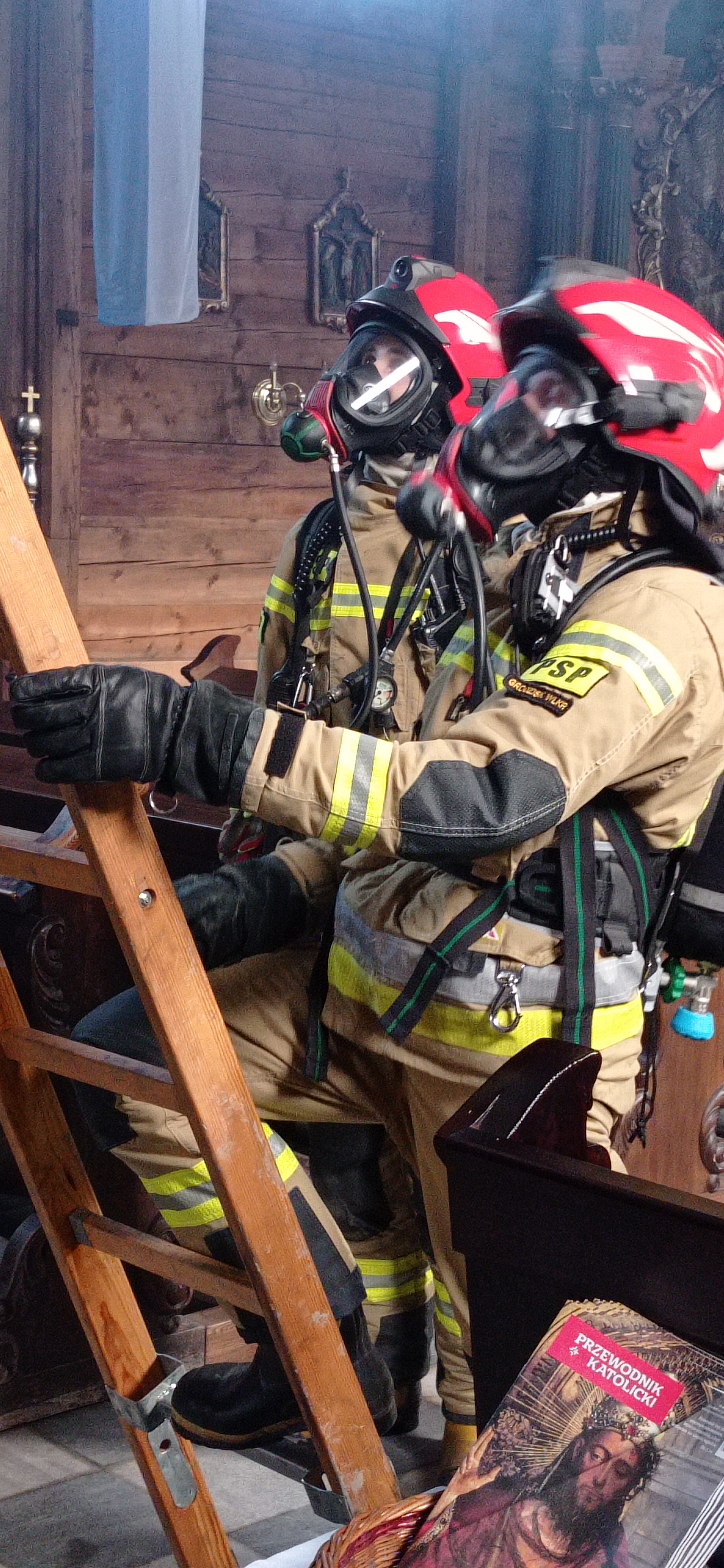 Podczas ćwiczeń strażacy doskonalili swoje umiejętności praktyczne w zakresie prowadzenia działań ratowniczych w obiektach sakralnych.