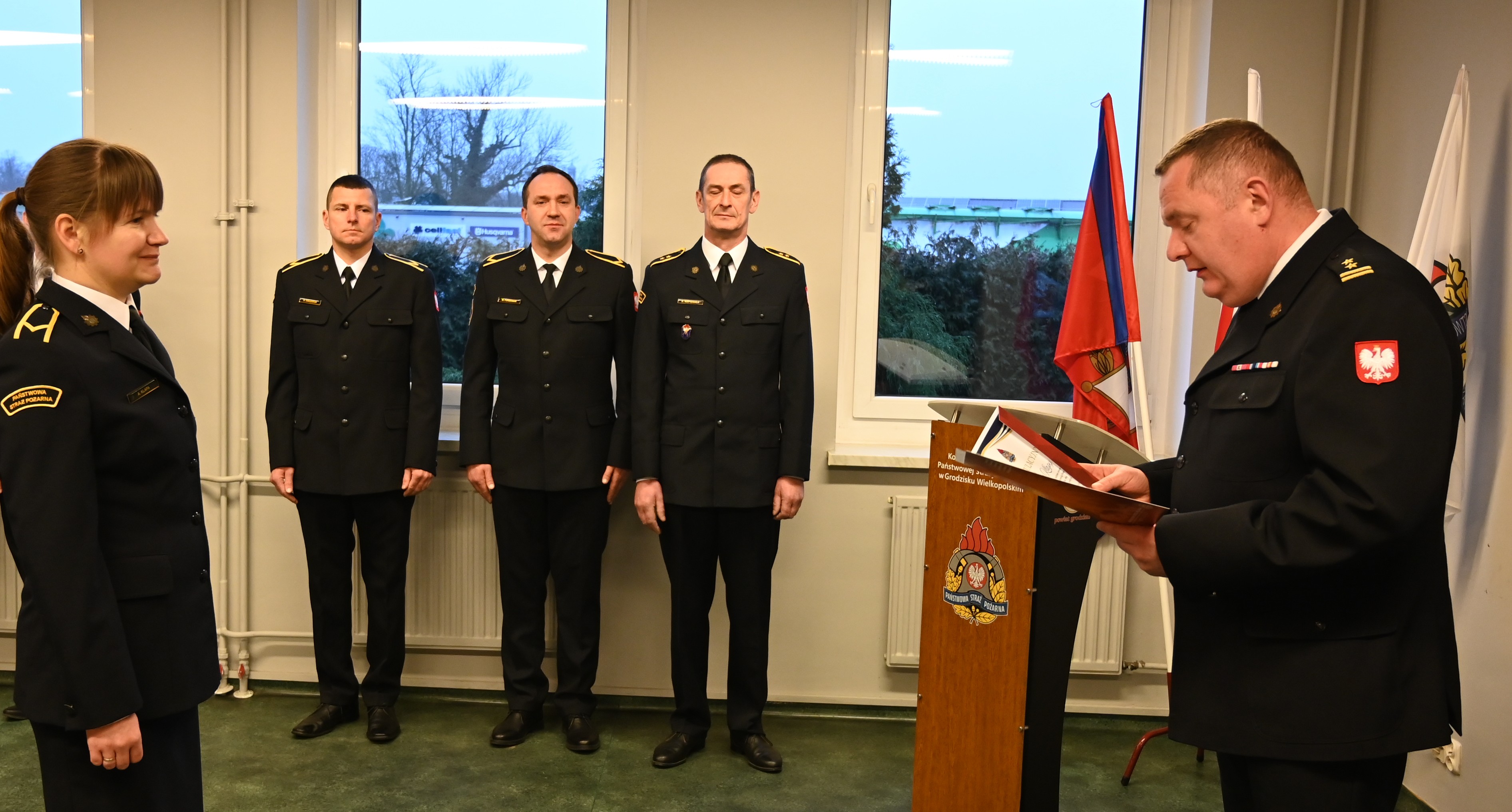 16 stycznia br. w sali narad Komendy Powiatowej Państwowej Straży Pożarnej w Grodzisku Wlkp. odbyła się uroczysta zbiórka z okazji wręczenia Nagród Jubileuszowych oraz awansu na wyższe stanowisko służbowe.