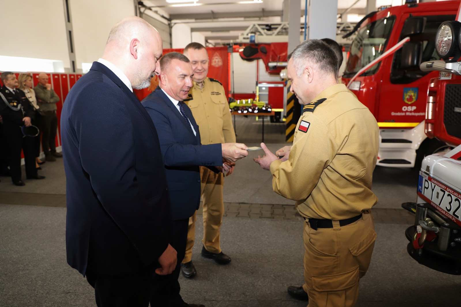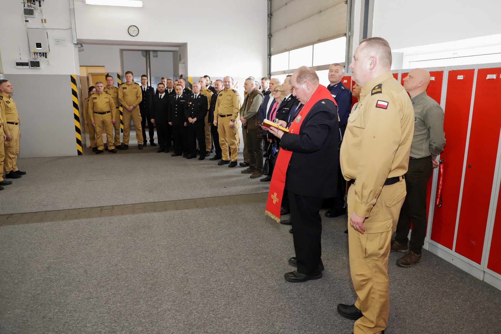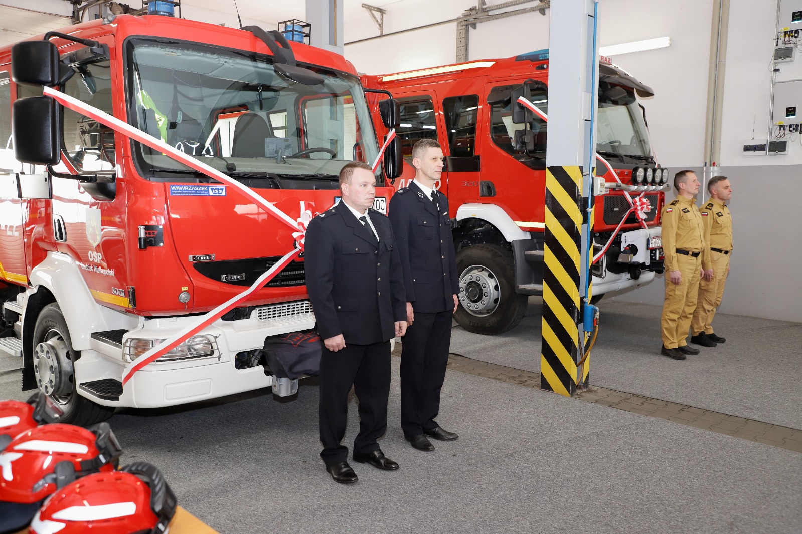 Ostatnia część narady odbyła się w wozowni jednostki, gdzie kapelan dokonał poświecenia nowych pojazdów ratowniczo gaśniczych, które następnie zostały symbolicznie przekazane do użytku w Jednostce Ratowniczo – Gaśniczej PSP oraz Ochotniczej Straży Pożarnej w Grodzisku Wlkp.