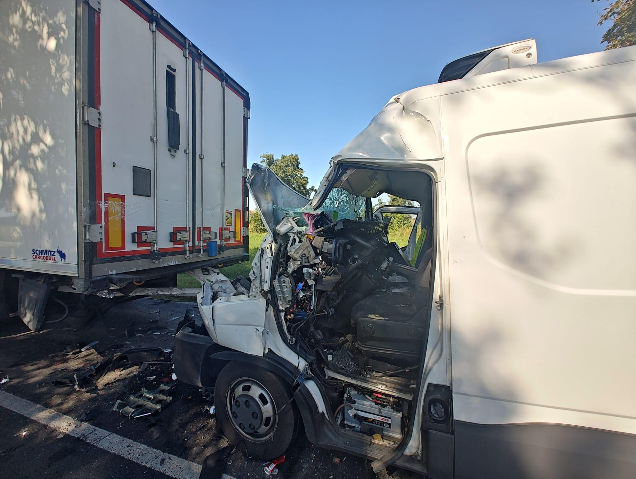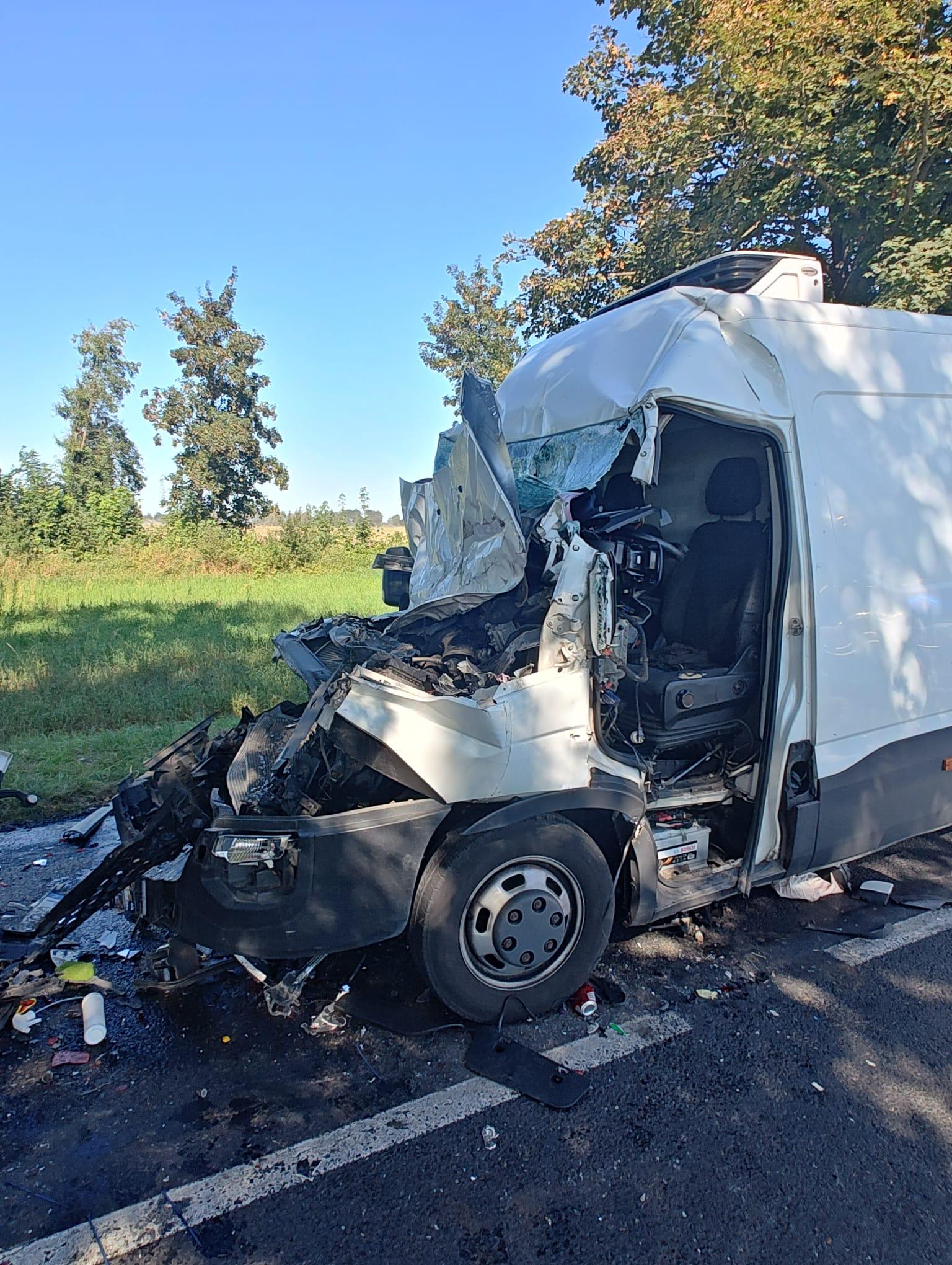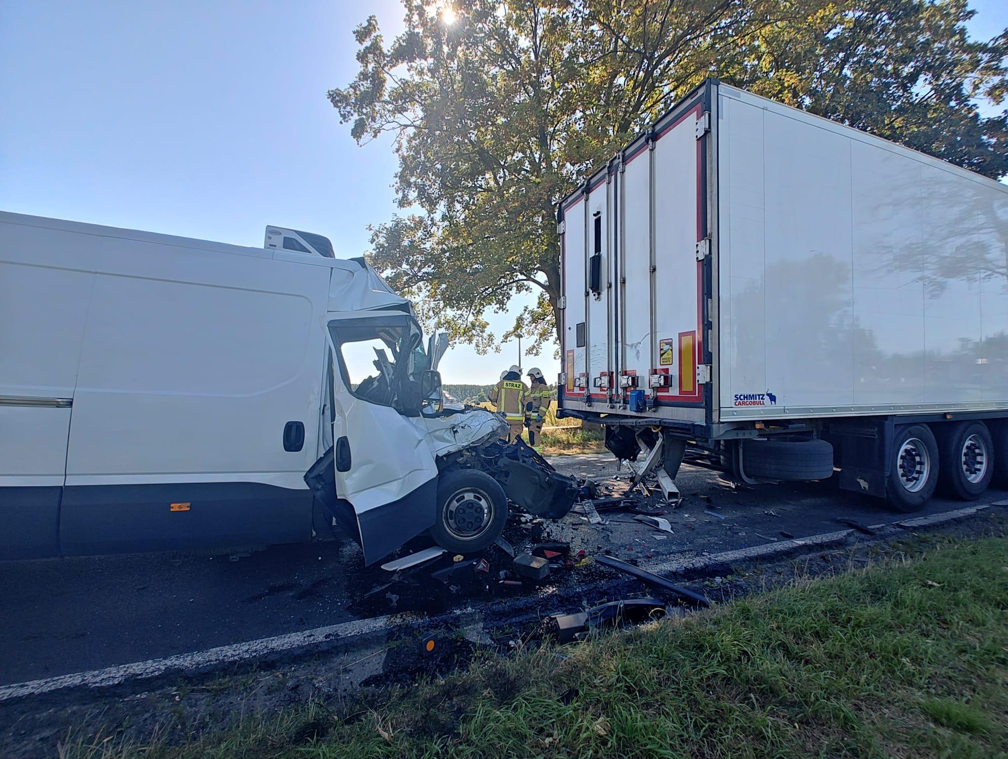 Do najgroźniejszego zdarzenia doszło na drodze wojewódzkiej nr 308 w m. Sepno. Informację o tym zdarzeniu Dyżurny Stanowiska Kierowania Komendanta Powiatowego otrzymał z CPR o godz. 14:43. Do akcji zadysponowane zostały zastępy JRG Grodzisk Wlkp., JRG Kościan, OSP Kamieniec, OSP Konojad oraz OSP Bonikowo. Po dojeździe na miejsce zdarzenia Straży Pożarnej okazało się, że doszło do najechania busa na tył naczepy TIRa. Kierowca samochodu dostawczego pozostawał w zmiażdżonej kabinie pojazdu. W celu jego wydobycia z rozbitego pojazdu strażacy musieli wykonać za pomocą narzędzi hydraulicznych dostęp. Następnie został przekazany pod opiekę ZRM. Na miejscu akcji lądował śmigłowiec LPR, który przetransportował poszkodowanego do szpitala w Puszczykowie. Droga wojewódzka była zablokowana przez 4,5 godz. Policja ustala okoliczności wypadku.