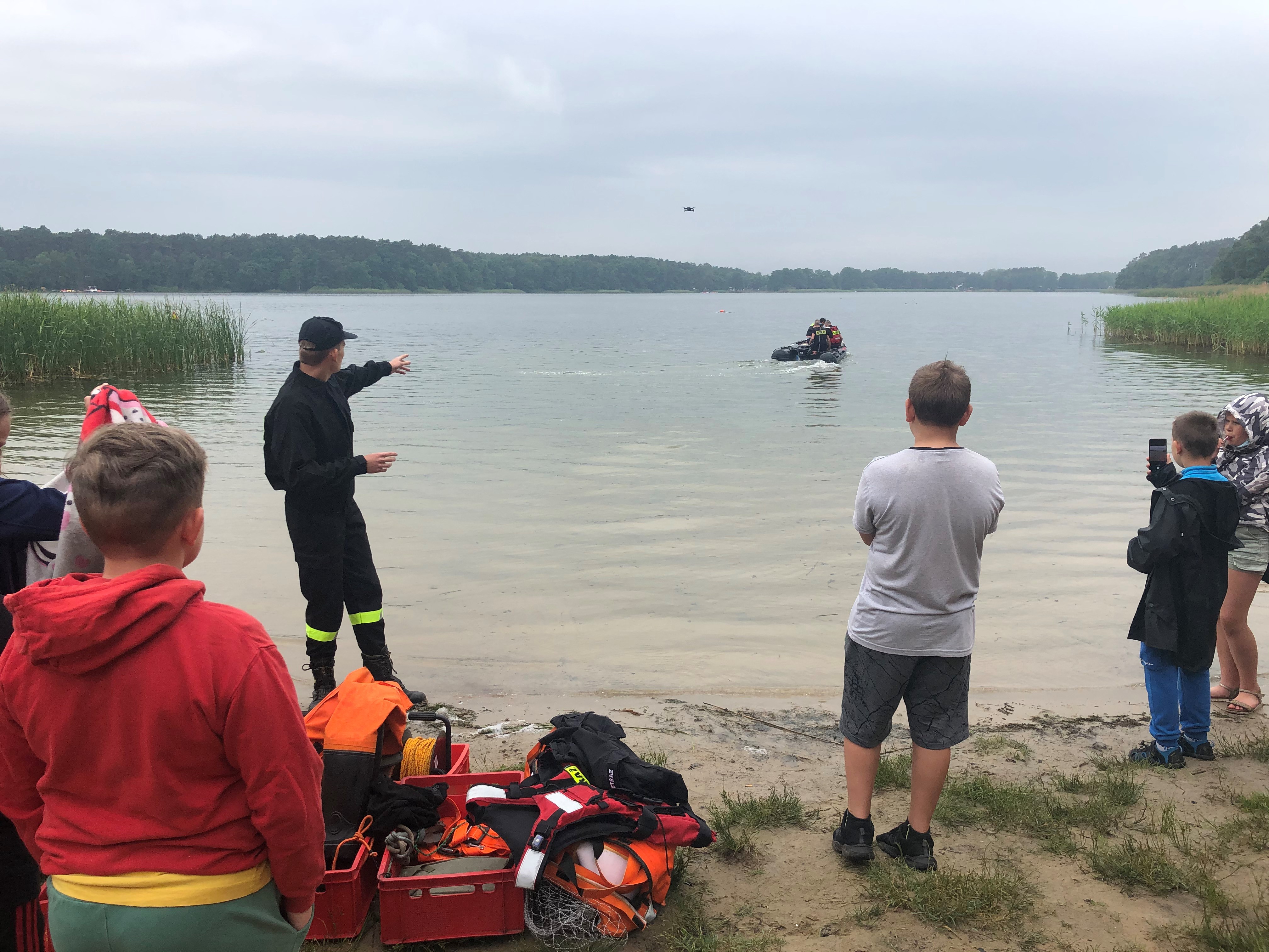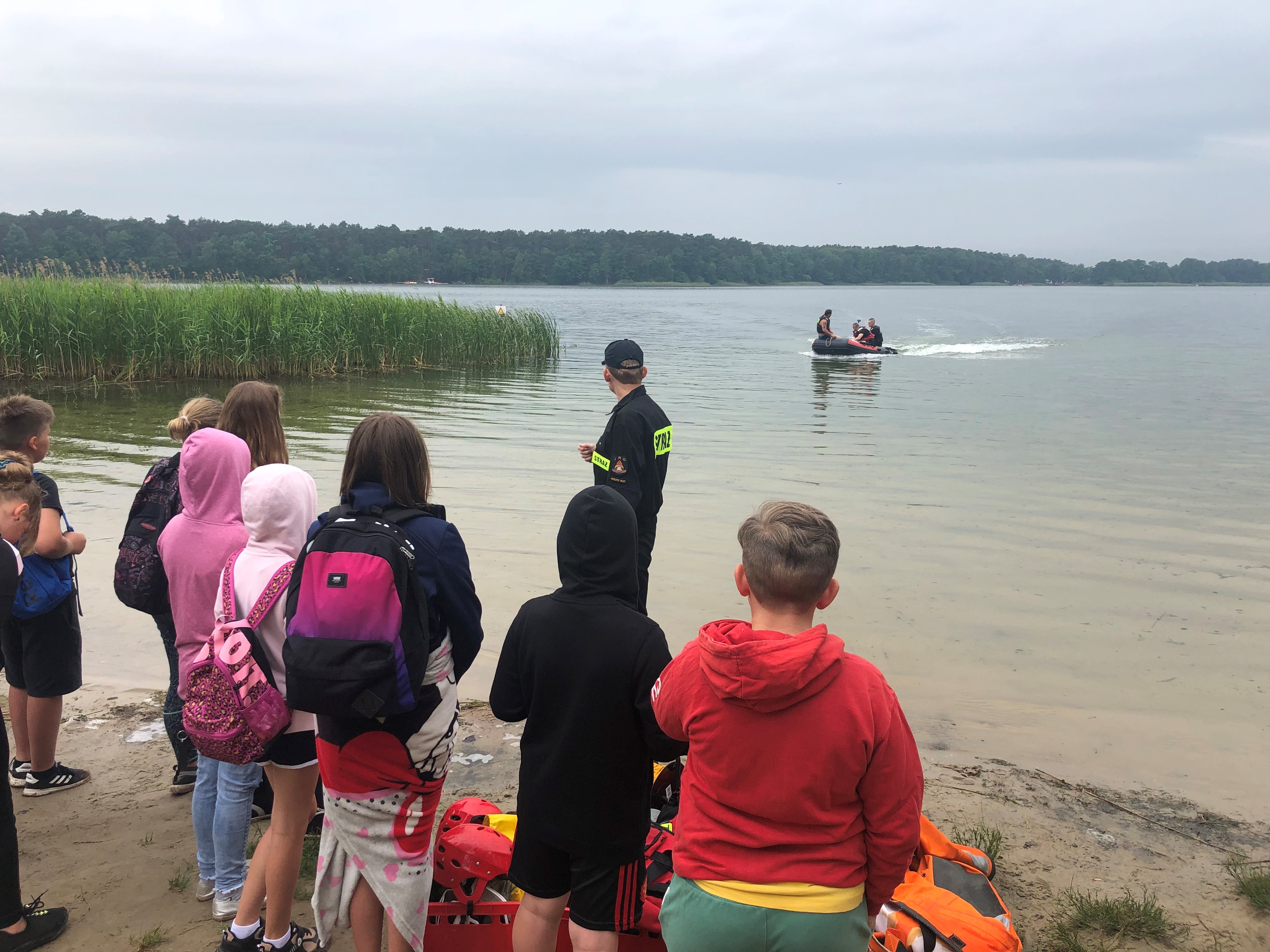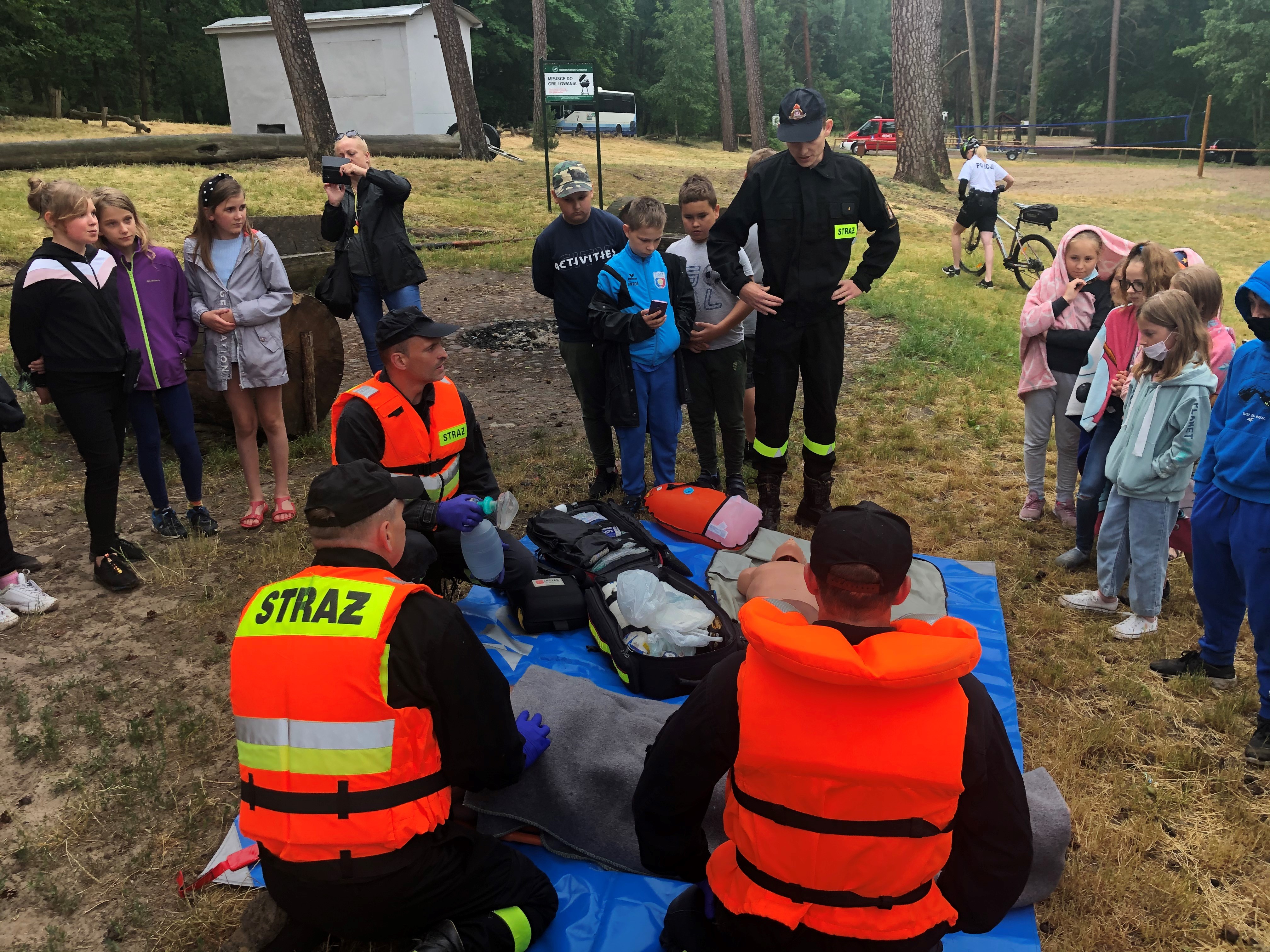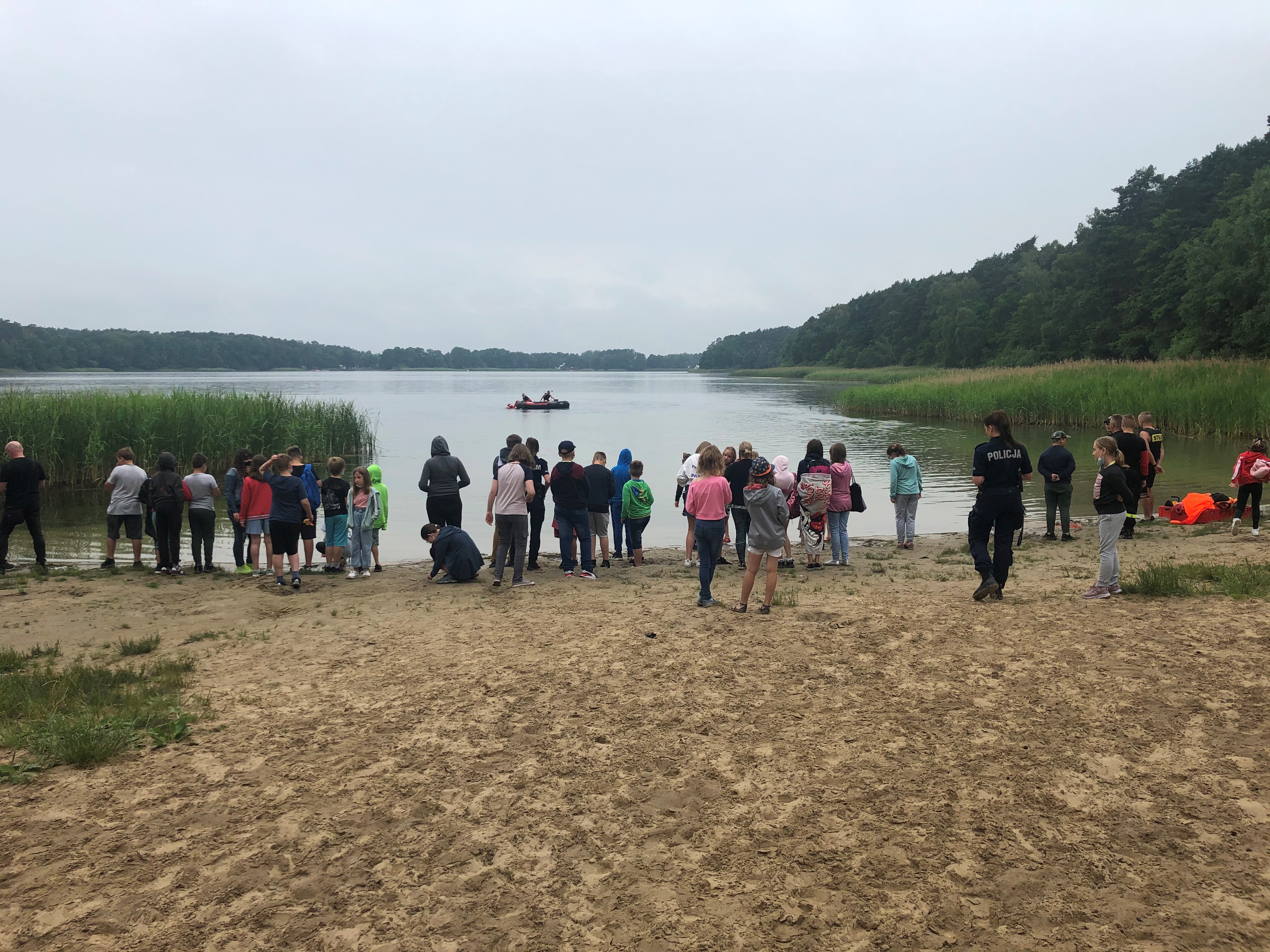 Poruszano tematy szeroko pojętego bezpieczeństwa podczas wakacji - przede wszystkim bezpiecznych zachowań nad wodą, udzielania pierwszej pomocy poszkodowanym. Dzieci z zainteresowaniem oglądały pokazy ratownictwa na wodzie w wykonaniu strażaków z OSP Rakoniewice, JRG Grodzisk Wlkp., policjantów oraz psa policyjnego.