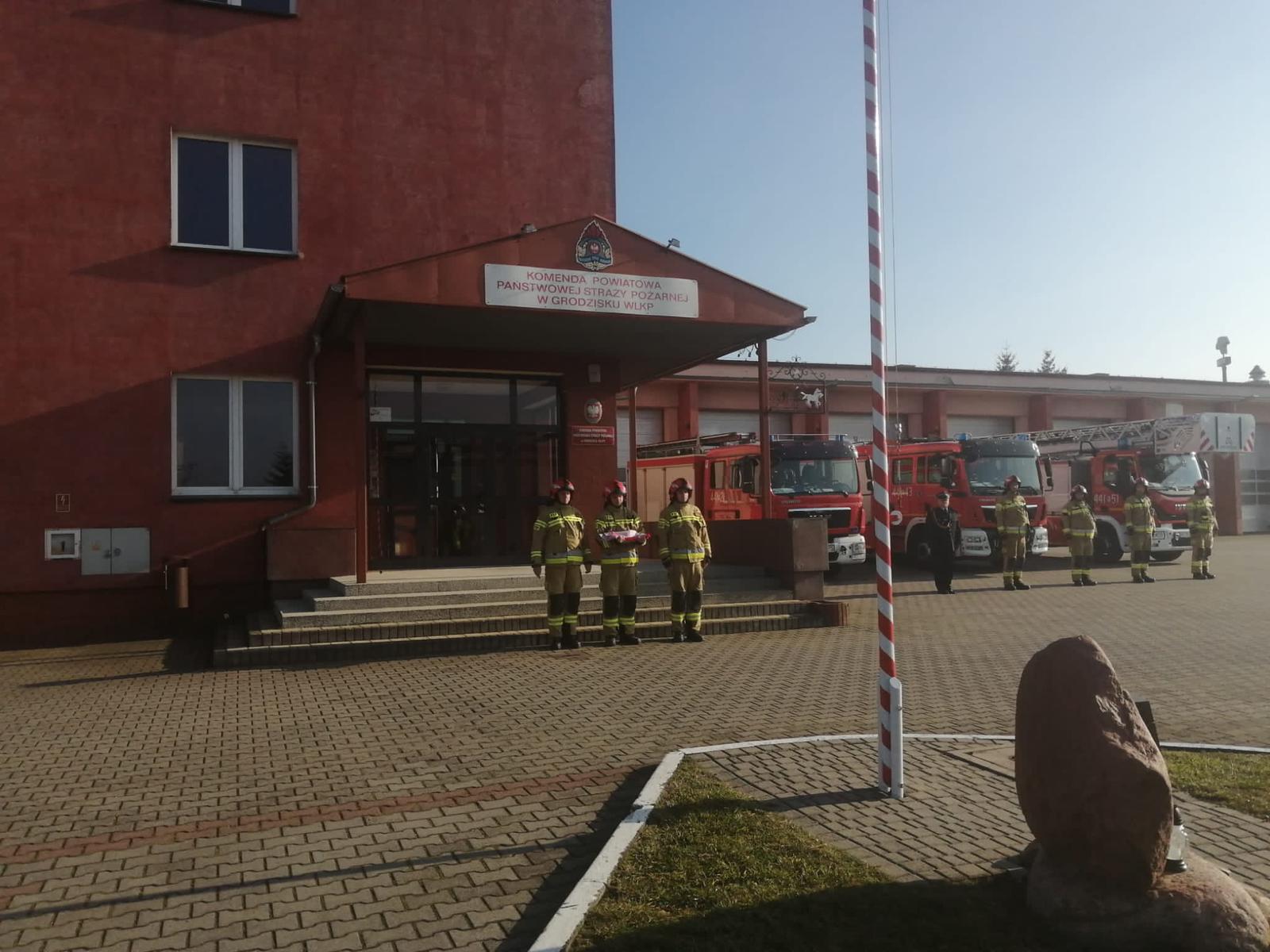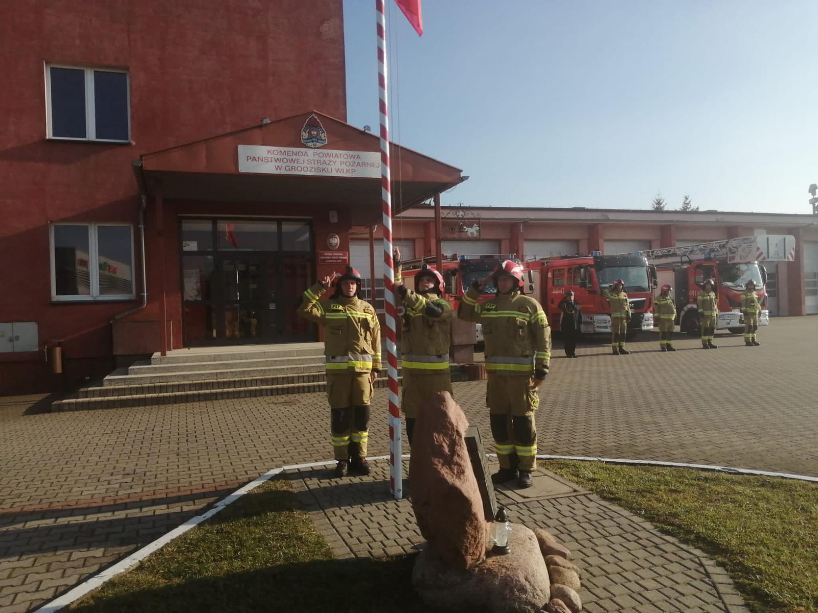 W dniu 11 listopada br. w samo południe strażacy z Jednostki Ratowniczo – Gaśniczej w Grodzisku Wlkp. dokonali uroczystego wciągnięcia flagi państwowej na maszt oraz odśpiewali „Mazurka Dąbrowskiego” przyłączając się do ogólnopolskiej akcji "Niepodległa do hymnu" upamiętniającej 103 rocznicę odzyskania przez Polskę niepodległości. Uroczystość odbyła się w obecności Z-cy Komendanta Powiatowego PSP w Grodzisku Wlkp. bryg. Krzysztofa Wojtaszewskiego.