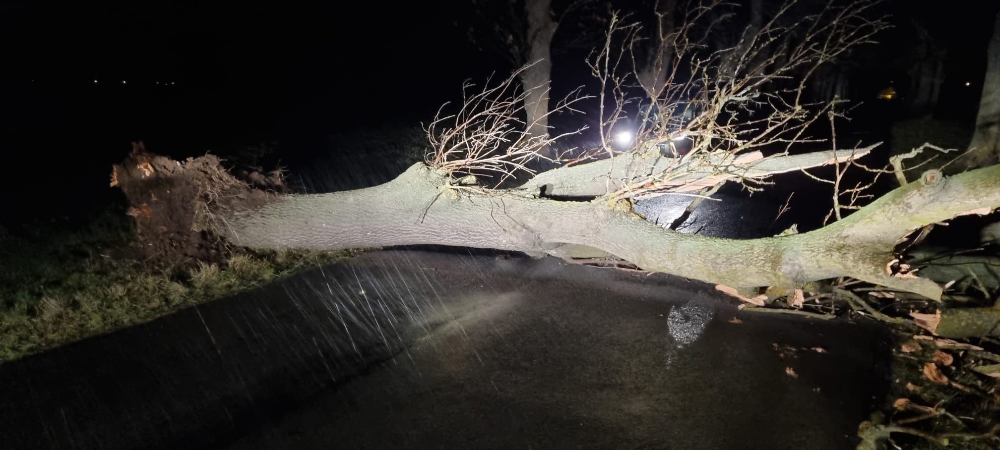 Konsekwencją silnych porywów wiatru było łącznie pięć strażackich interwencji. Strażacy usuwali połamane drzewa z szlaków komunikacyjnych w miejscowościach: Wola Jabłońska, Kotowo, Grodzisk Wlkp., Niemierzyce. Jednak najpoważniejsze zdarzenie odnotowano w miejscowości Januszewice , gdzie z budynku mieszkalnego zerwało pokrycie dachowe na powierzchni około 50 m kwadratowych. Dach budynku w miejscu uszkodzenia doraźnie pokryto plandekami.