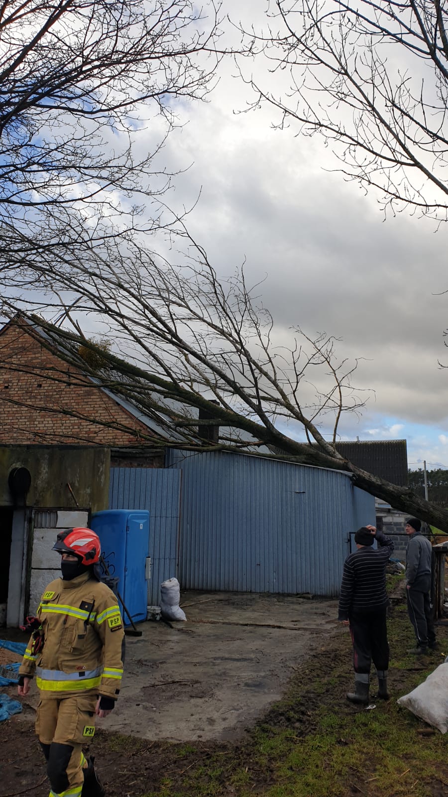 • 9 razy interweniowano przy uszkodzonych dachach zarówno w budynkach mieszkalnych, jak i gospodarczych;