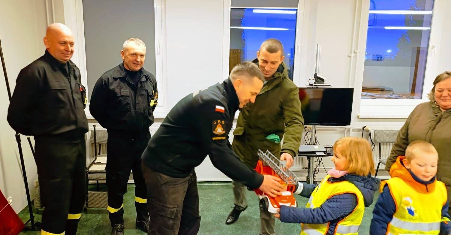 Okazją do odwiedzin była chęć podziękowania strażakom za uratowanie ich domu oraz podjęte działania podczas pożaru kotłowni, który miał miejsce pod koniec 2024 roku. Dzieci i ich rodzice przekazały na ręce strażaków podziękowania oraz symboliczny wóz strażacki.