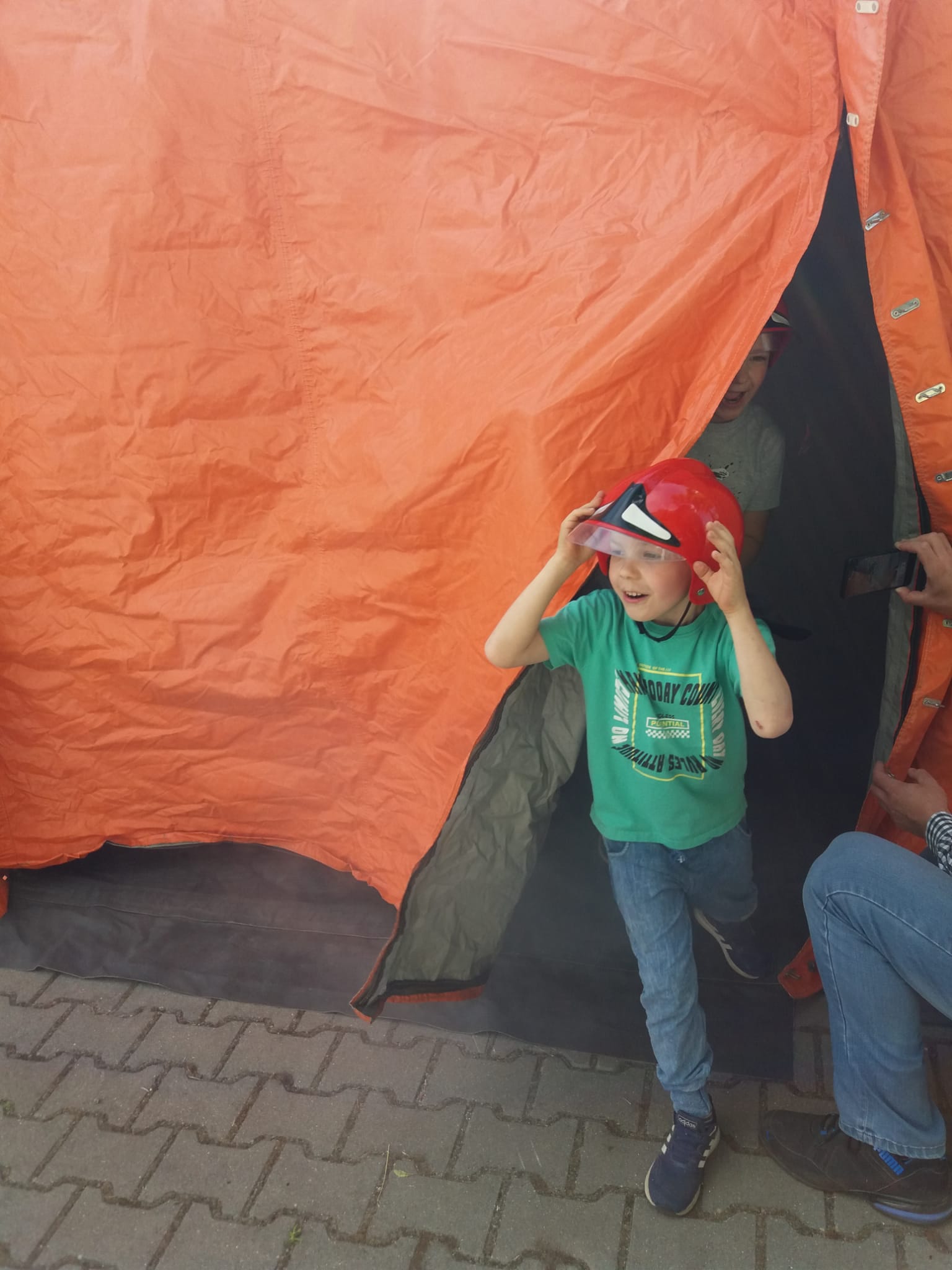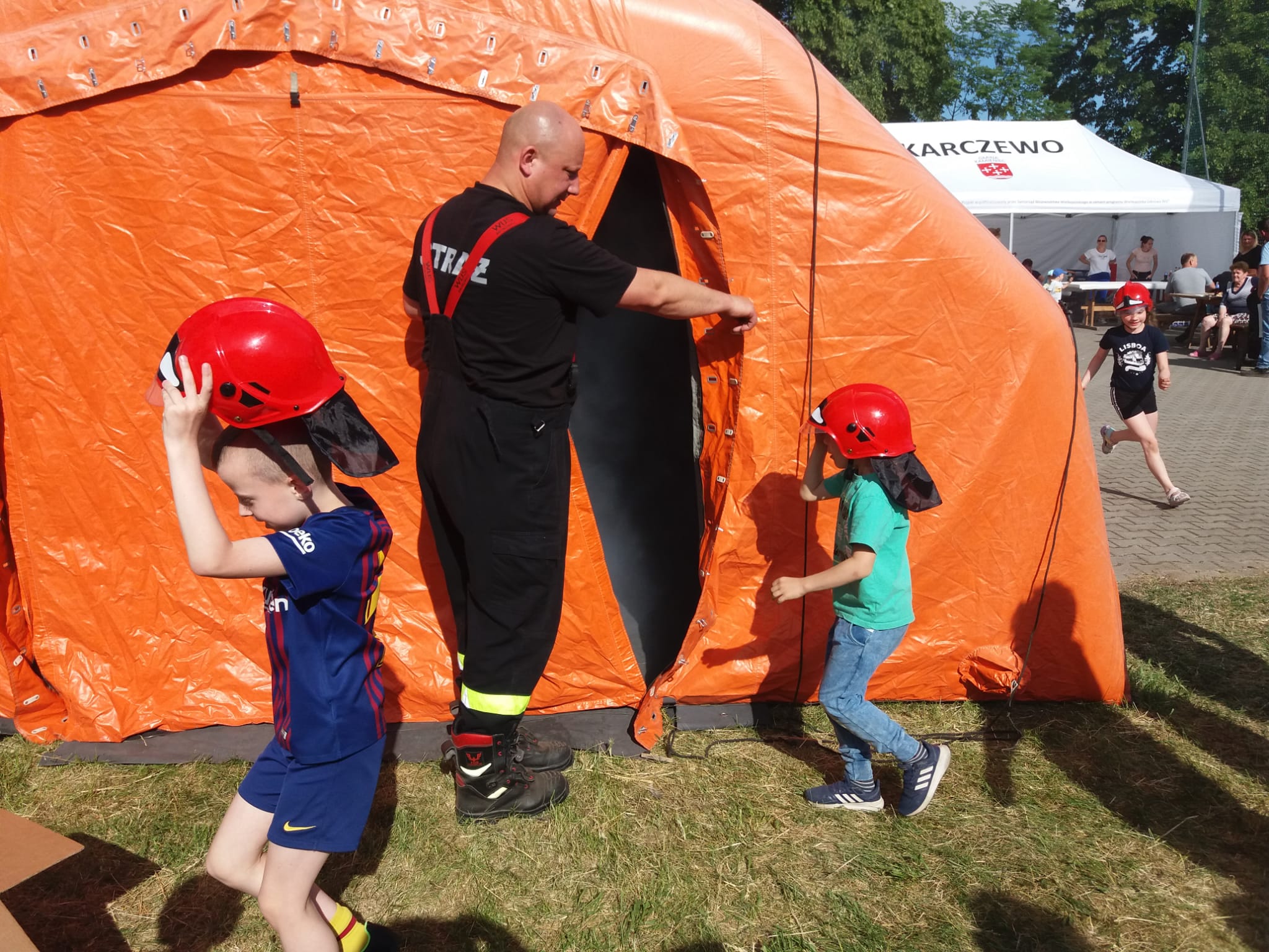 Licznie zgromadzeni najmłodsi mieli okazję zapoznać się z wyposażeniem wozu strażackiego. Najodważniejsi mogli spróbować swoich sił i wcielić się w rolę strażaka w akcji poprzez przejście przez silnie zadymione pomieszczenie.