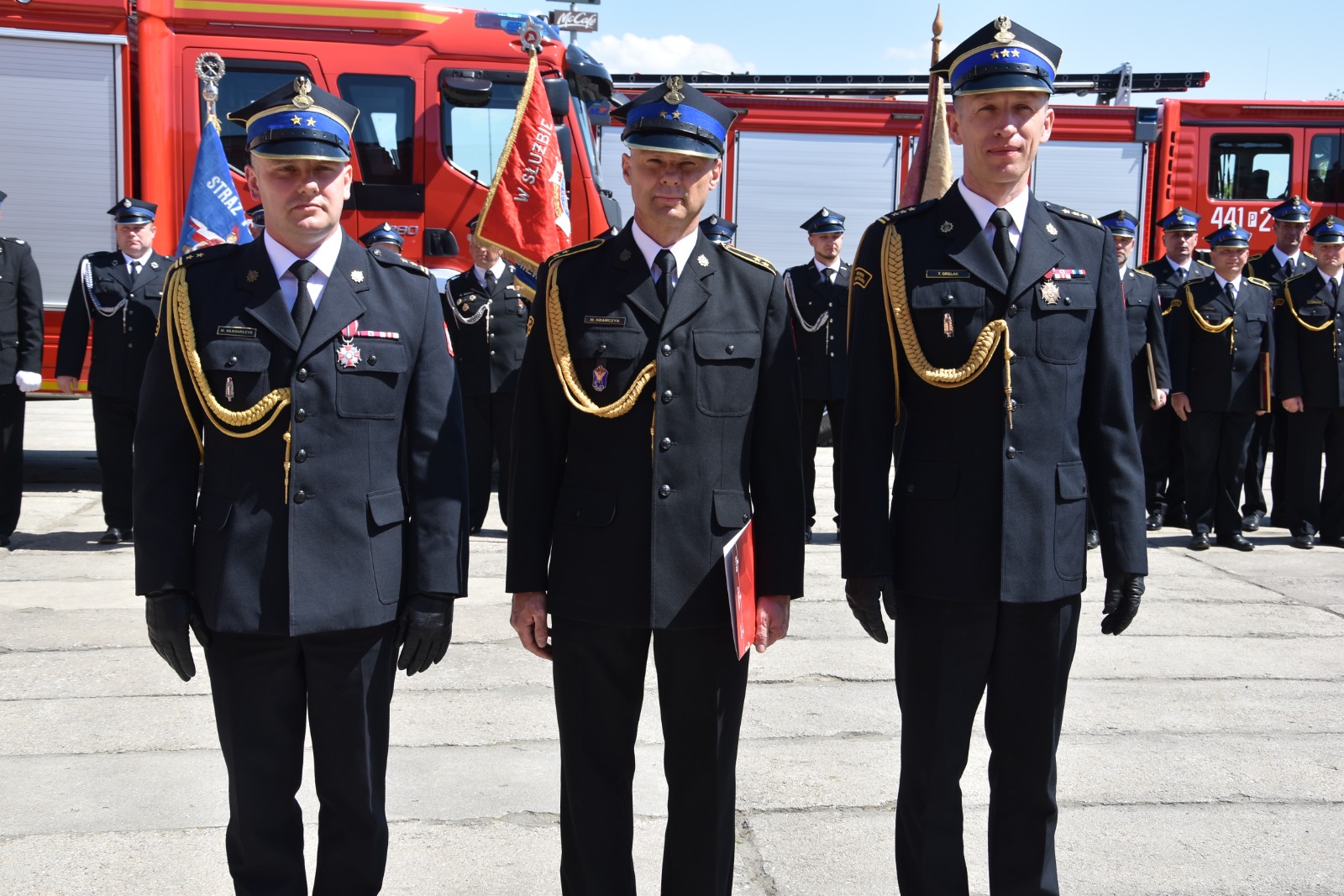 Na wstępie dowódca uroczystości kpt. Piotr Bamber złożył meldunek st. bryg. Tomaszowi Grelakowi, następnie podniesiono flagę państwową.