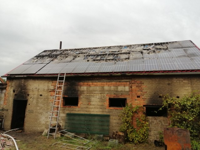 Nadpaleniu uległa konstrukcja dachu, częściowo jego pokrycie. Zniszczeniu uległy również panele fotowoltaiczne.
