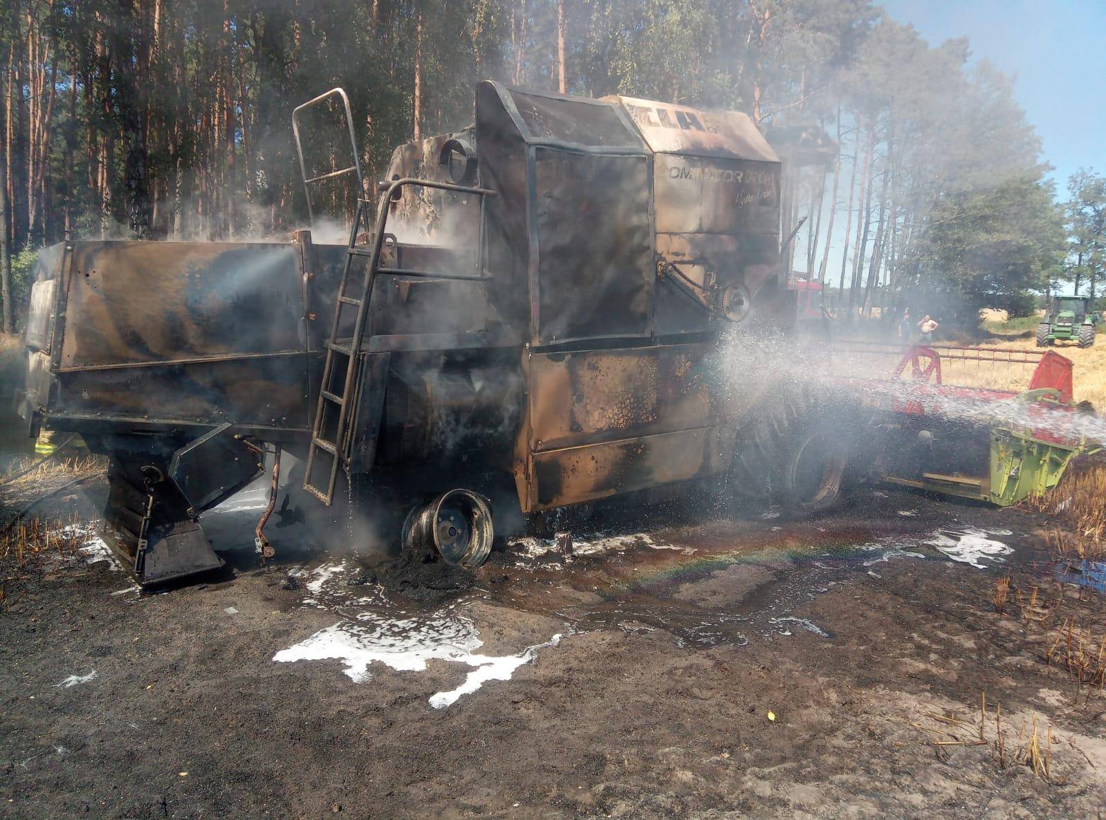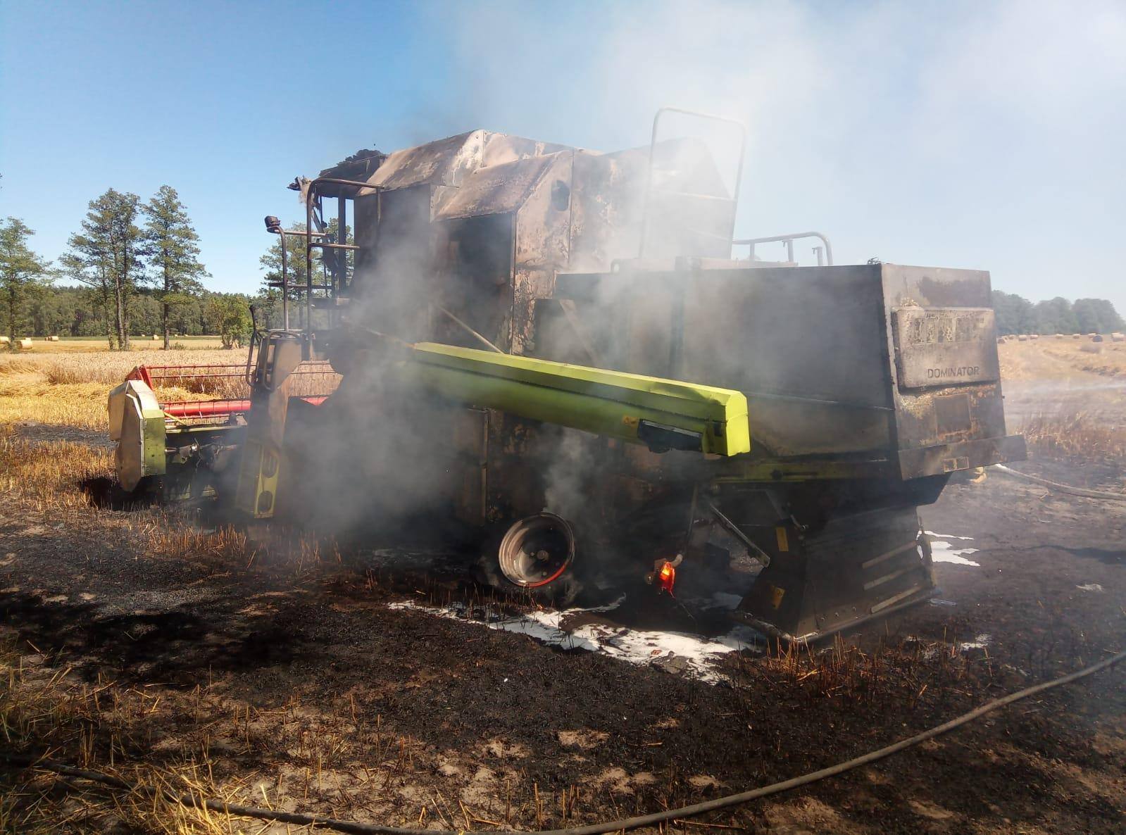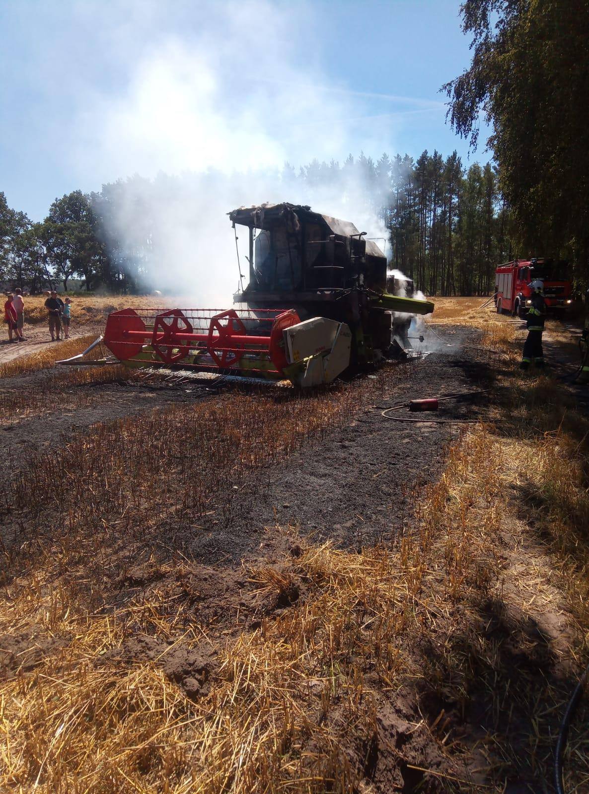 31.07.2020 roku o godzinie 12.49 przyjęto zgłoszenie o pożarze kombajnu w miejscowości Czarna Wieś.