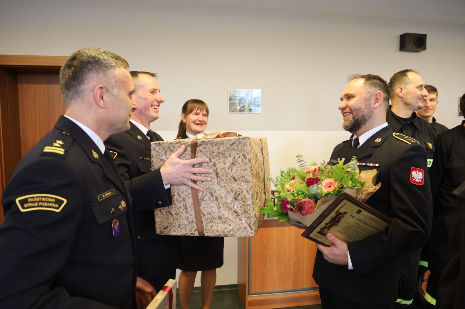 - Za wami 30 lat pracy i służby. Jesteście przykładem dla młodych adeptów pożarnictwa. Współpraca z wami była dla mnie zaszczytem i przyjemnością. Dziękuję za wasze zaangażowanie, ciężką pracę, wszystko to, co sobą reprezentowaliście. Byliście ważną częścią zespołu, osobami bardzo lubianymi i szanowanymi. Zawsze można było na was liczyć. Z naszej jednostki odchodzą bardzo wartościowi ludzie, ale drzwi komendy będą dla was zawsze otwarte, zawsze jesteście tutaj mile widziani - mówił bryg. Tomasz Lewandowski, komendant KP PSP Grodzisk.