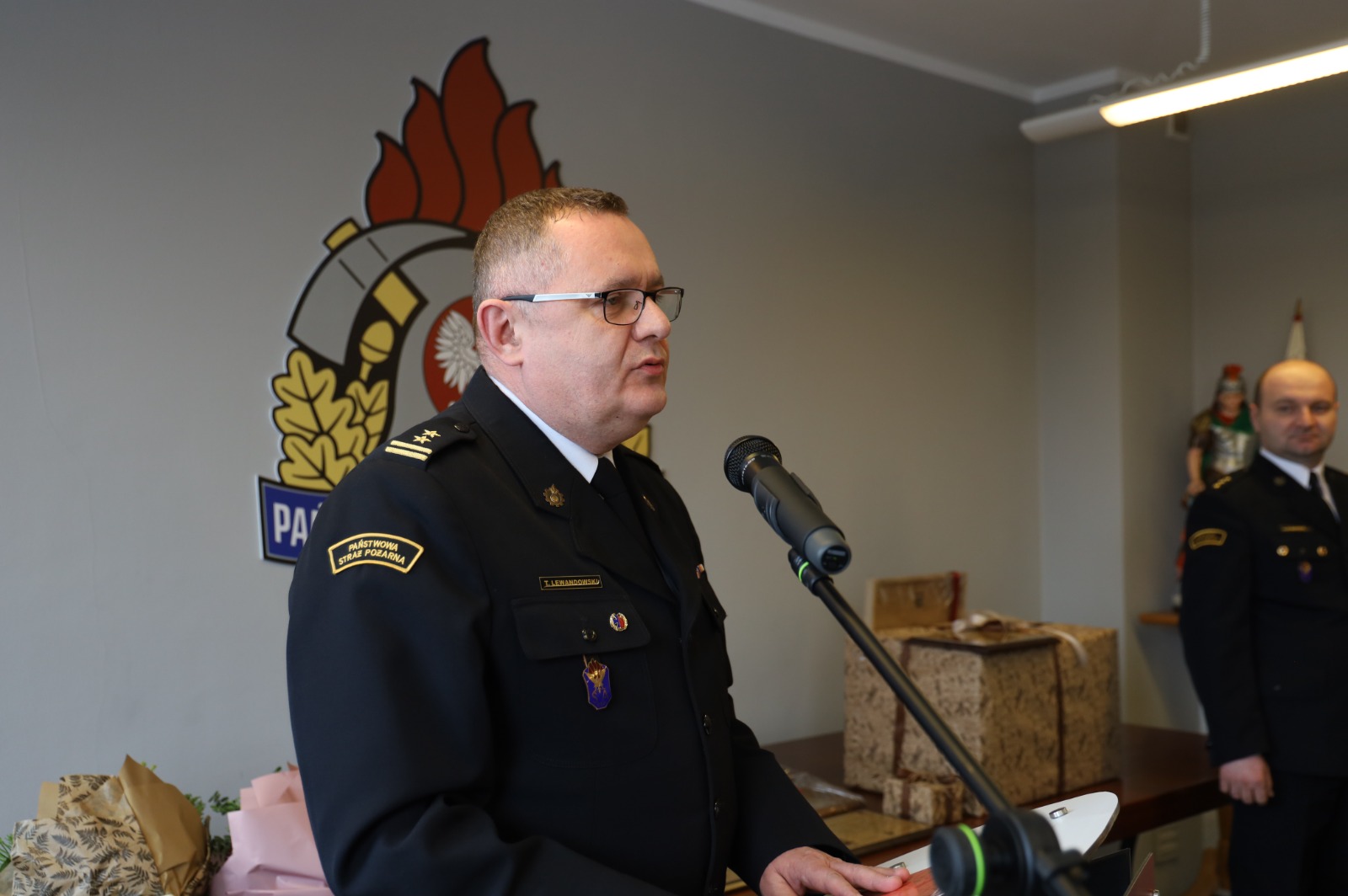 - Pamiętam moje pierwsze służby w tej komendzie, która była jeszcze w trakcie budowy. Dziś nadszedł czas przejścia na emeryturę. Poznałem wielu wspaniałych ludzi, którym bardzo dziękuję za wspólne służby, zaufanie, koleżeństwo. Praca z wami to był dla mnie zaszczyt - mówił st. ogn. Mariusz Skrzypek.