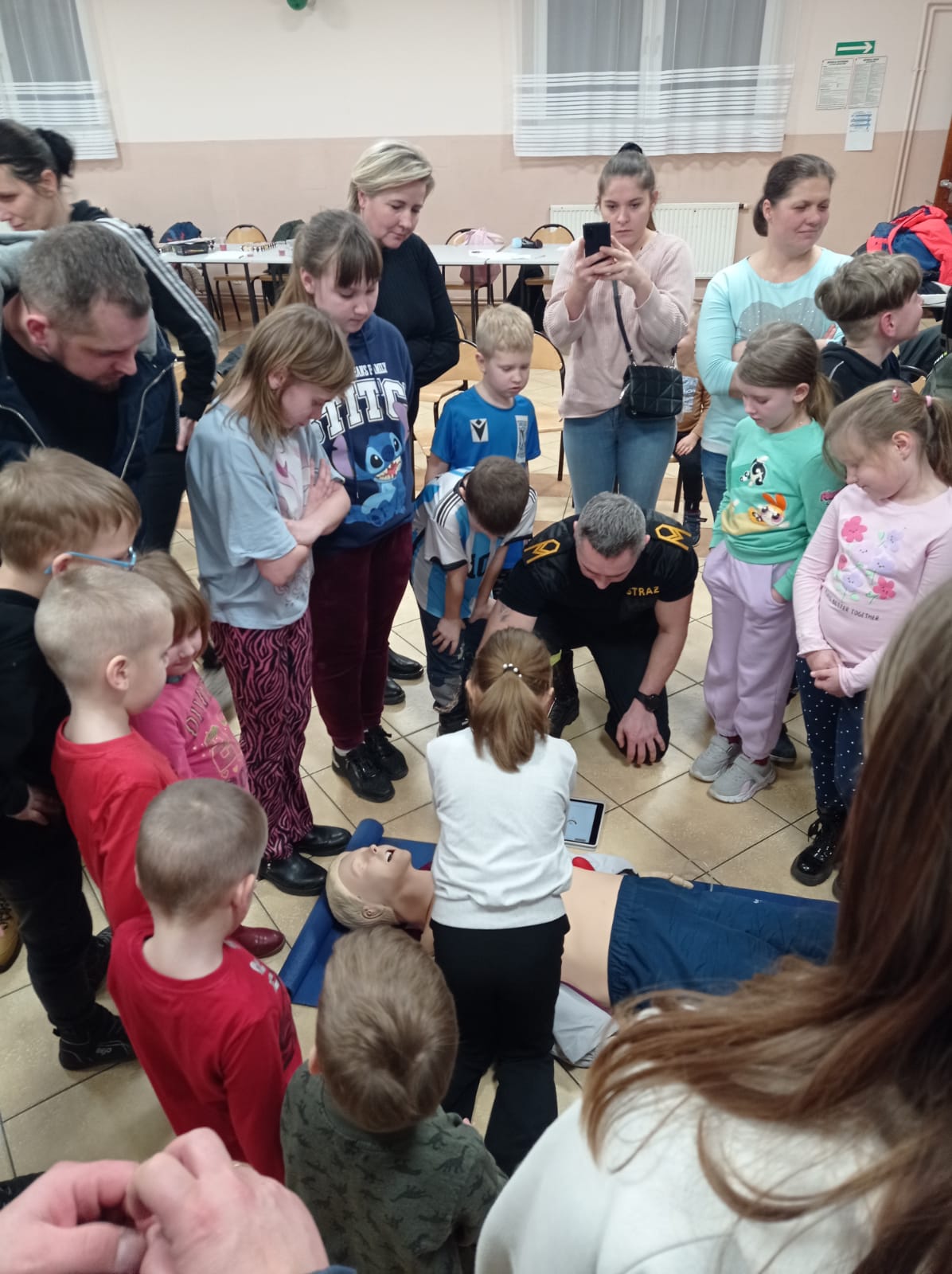 Omawiana tematyka na tyle wzbudziła ciekawość uczestników, że mimo trwających ferii nie brakowało chętnych do nauki prowadzenia resuscytacji na profesjonalnym fantomie.