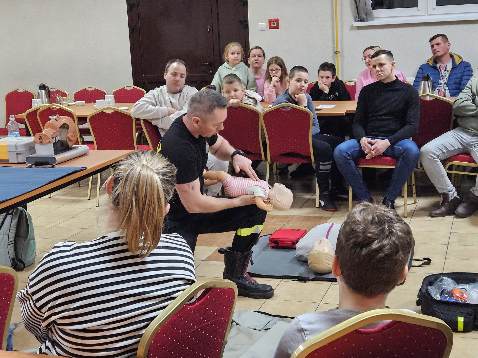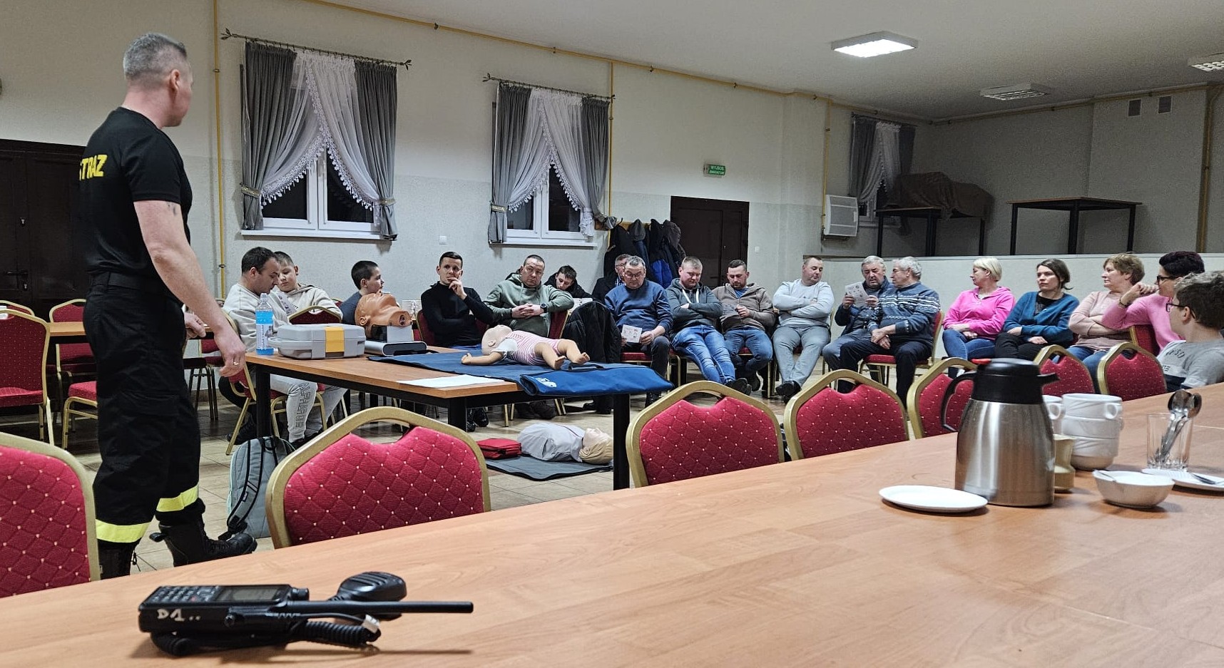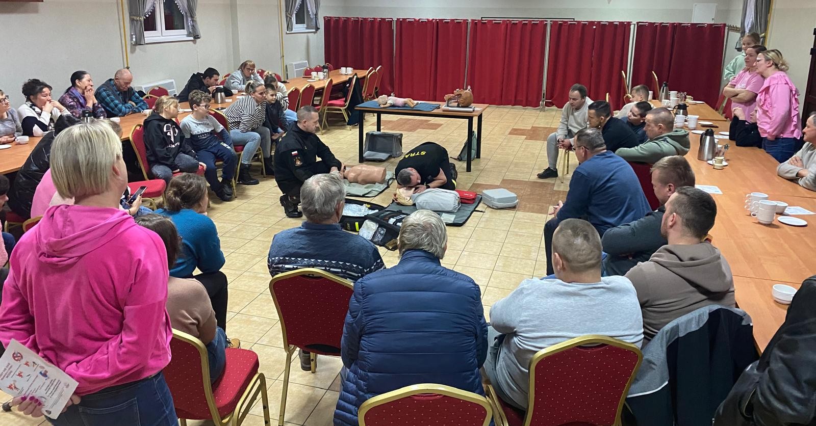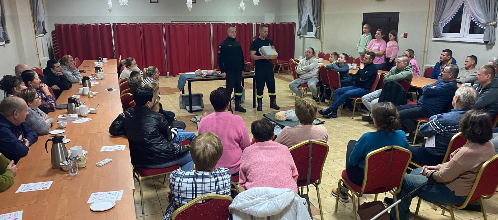 Podczas spotkania strażacy przedstawili zagrożenia występujące ze strony tlenku węgla, omówili sposoby zabezpieczania się przed „CZADEM”. Ponadto przeprowadzili szkolenie z zakresu pierwszej pomocy uwzględniając takie sytuacje jak: zakrztuszenie niemowlaka, zasłabnięcie osoby dorosłej, użycia AED itp.. Spotkanie cieszyło się dużym zainteresowaniem ze strony mieszkańców wsi.