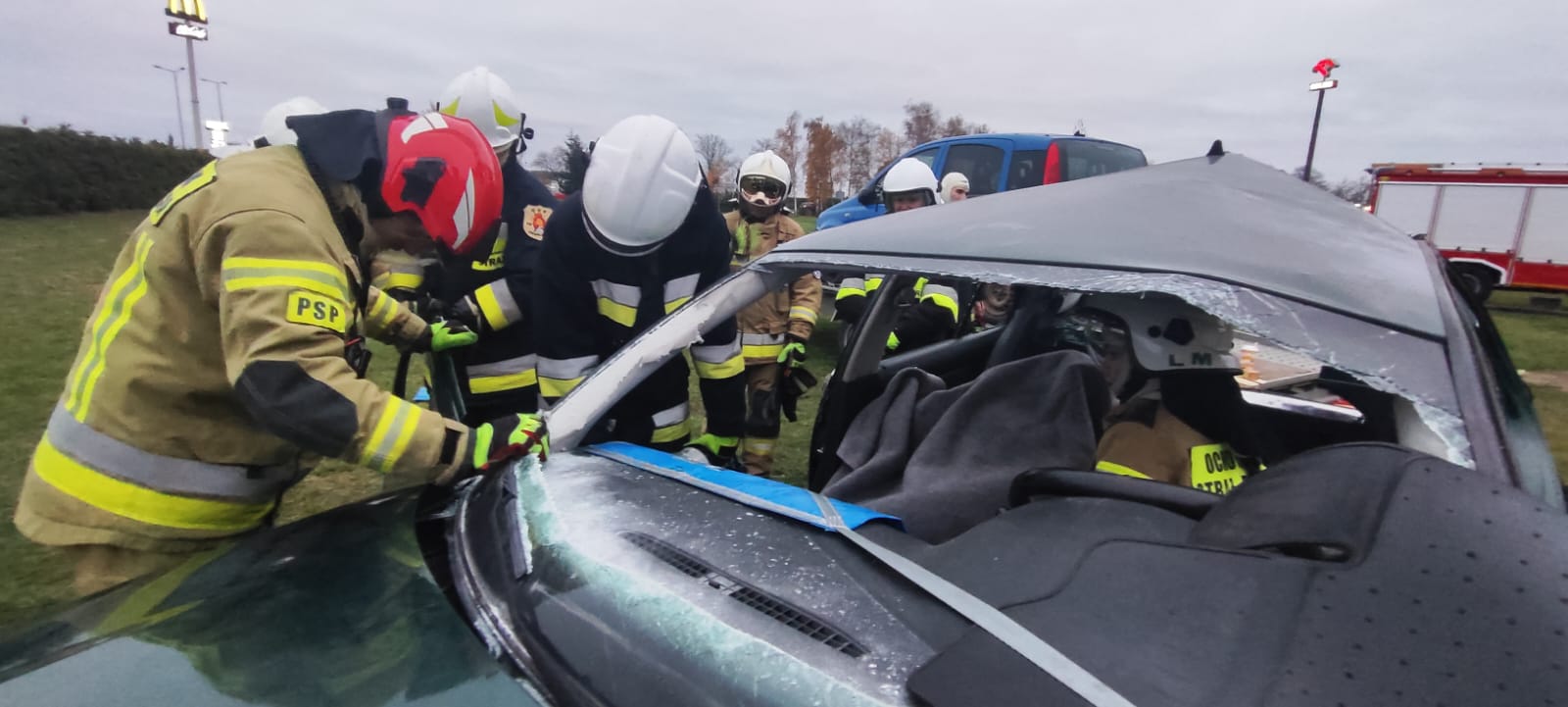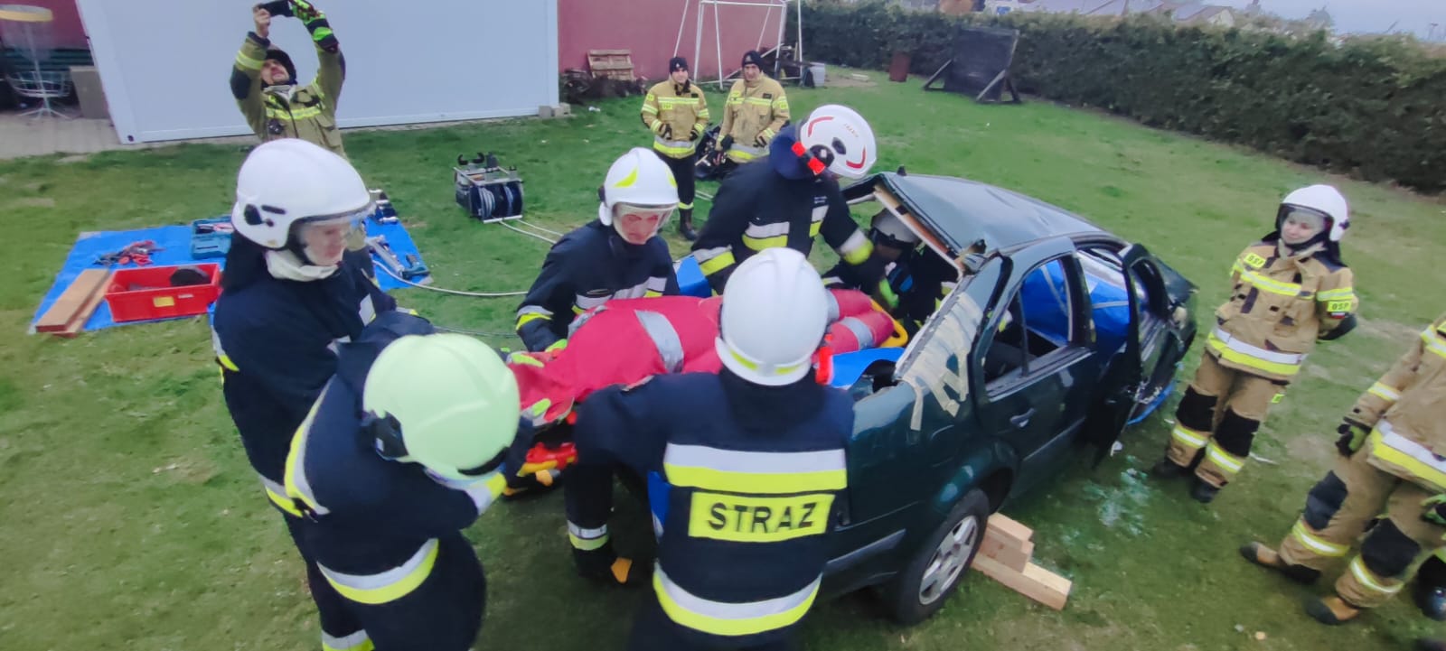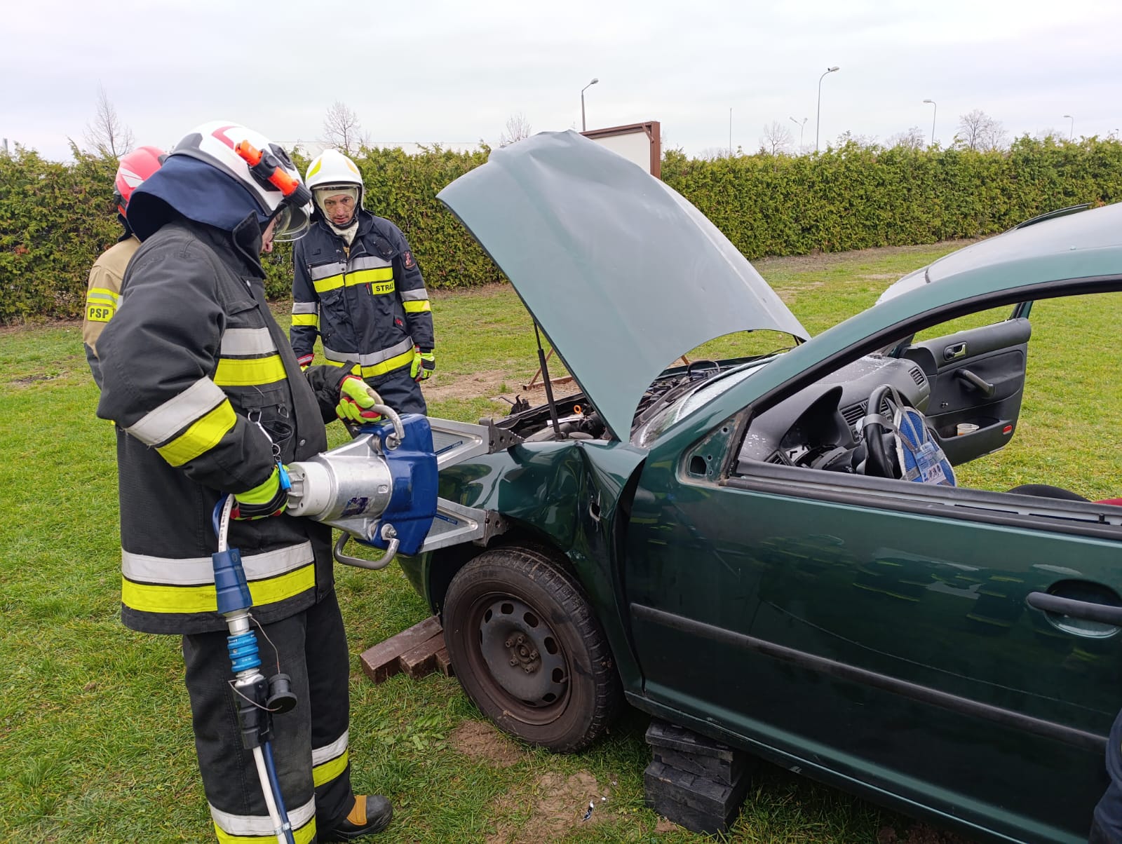 Egzamin składający się z części teoretycznej i praktycznej na terenie Komendy Powiatowej Państwowej Straży Pożarnej w Grodzisku Wlkp..
