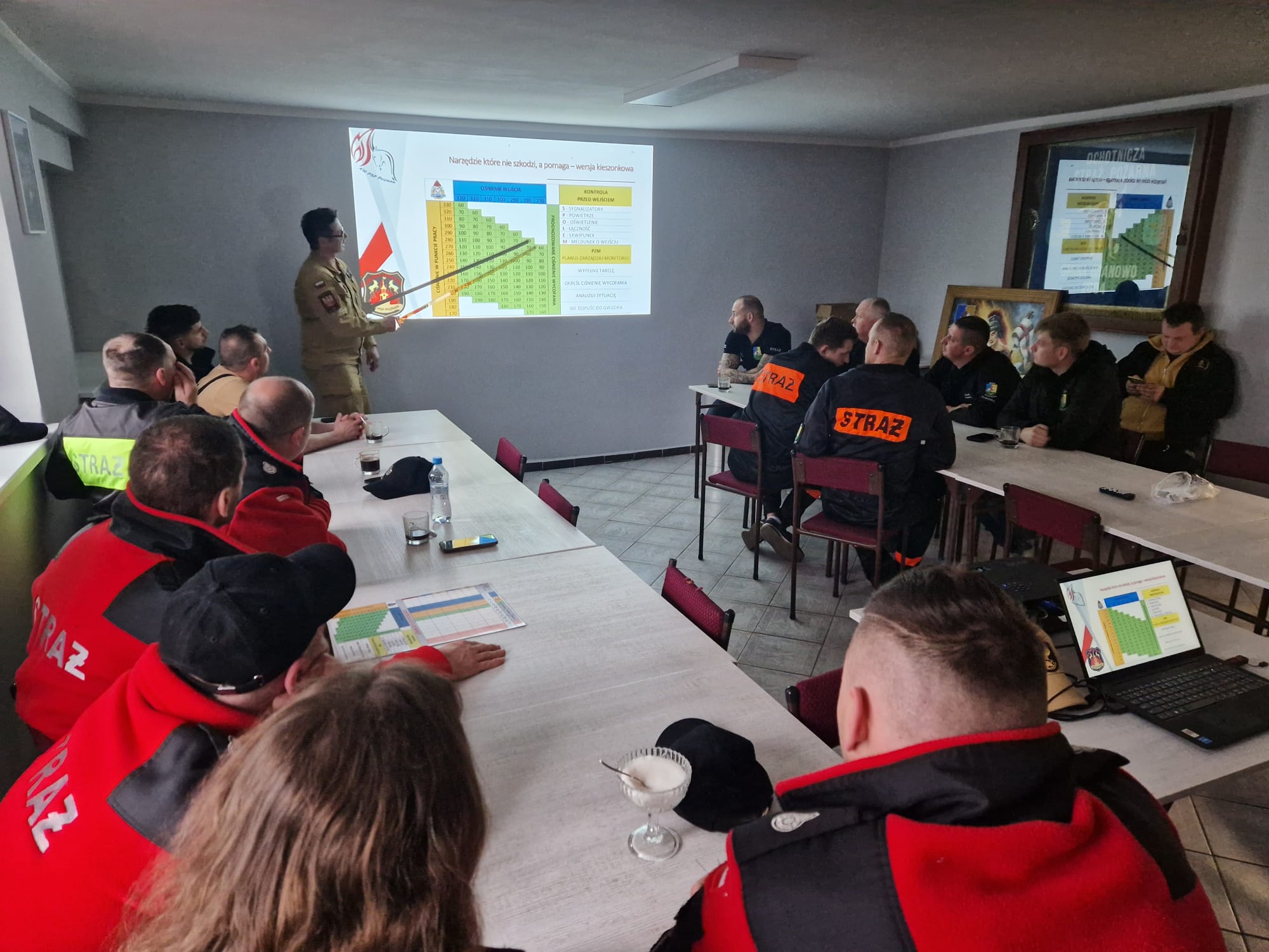 w strefie zadymienia, które jest obowiązkiem każdego kierującego działaniem ratowniczym i wynika to z obowiązujących zasad i uregulowań przepisów prawa. Szczegółowo omówił zasady pracy w sprzęcie ochrony układu oddechowego, kontrolę stanu powietrza w sprzęcie izolującym drogi oddechowe ratowników pracujących w strefie zadymienia, a także stały nadzór nad ilością strażaków pracujących w strefie.