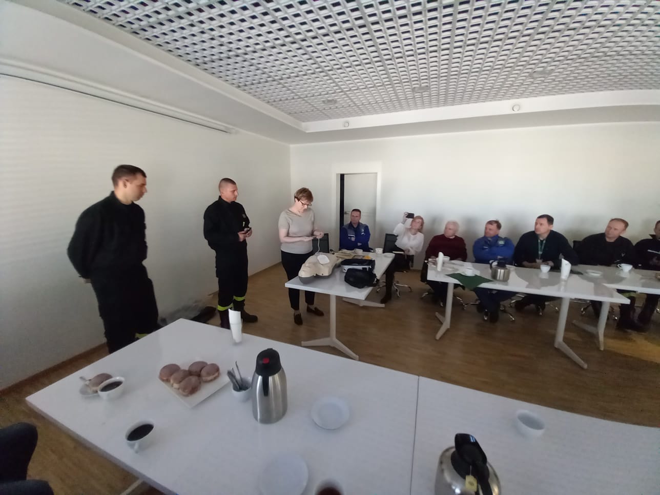 W drugiej częsci pracownicy zostali przeszkoleni z obsługi defibrylatora AED.