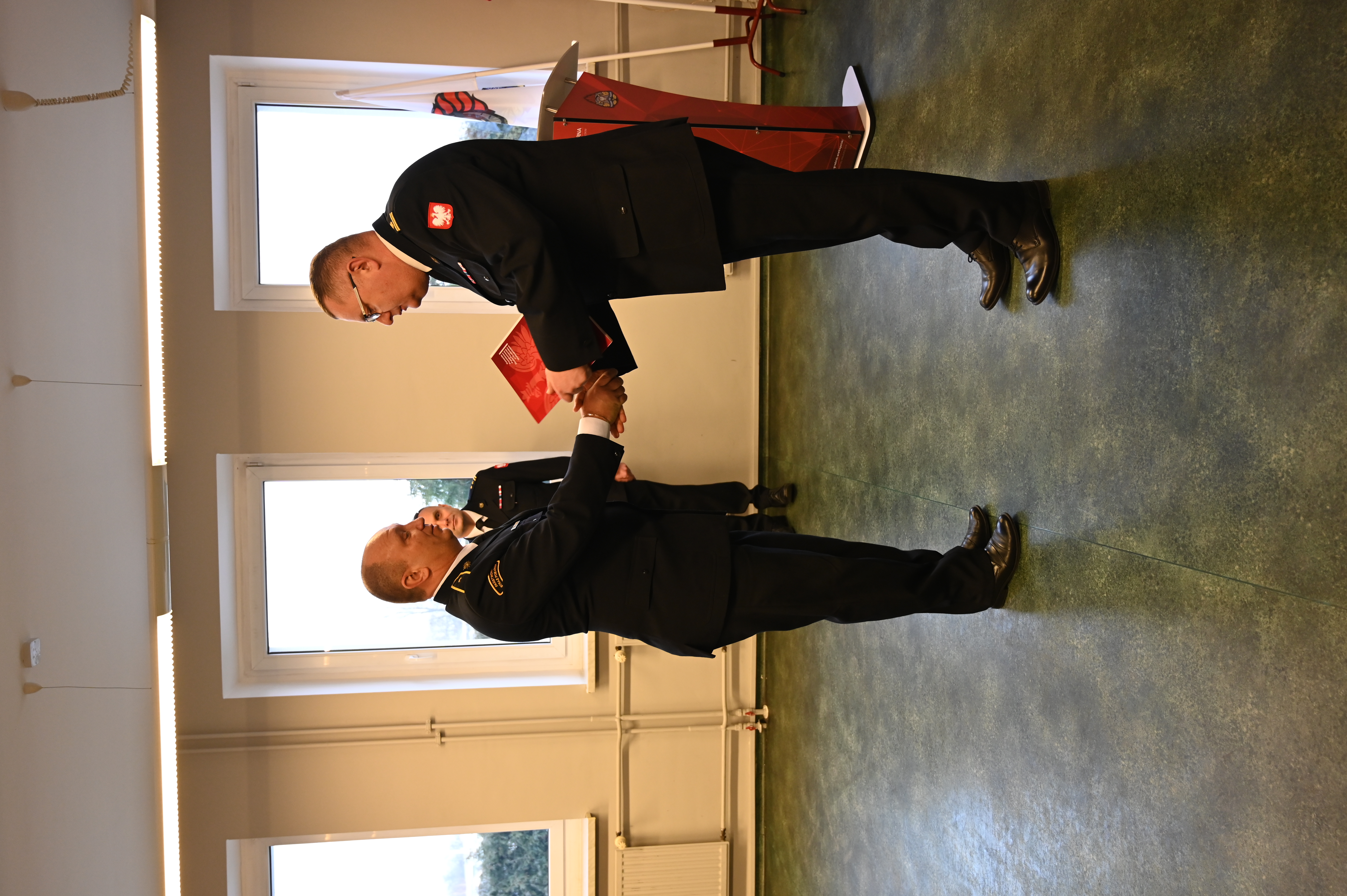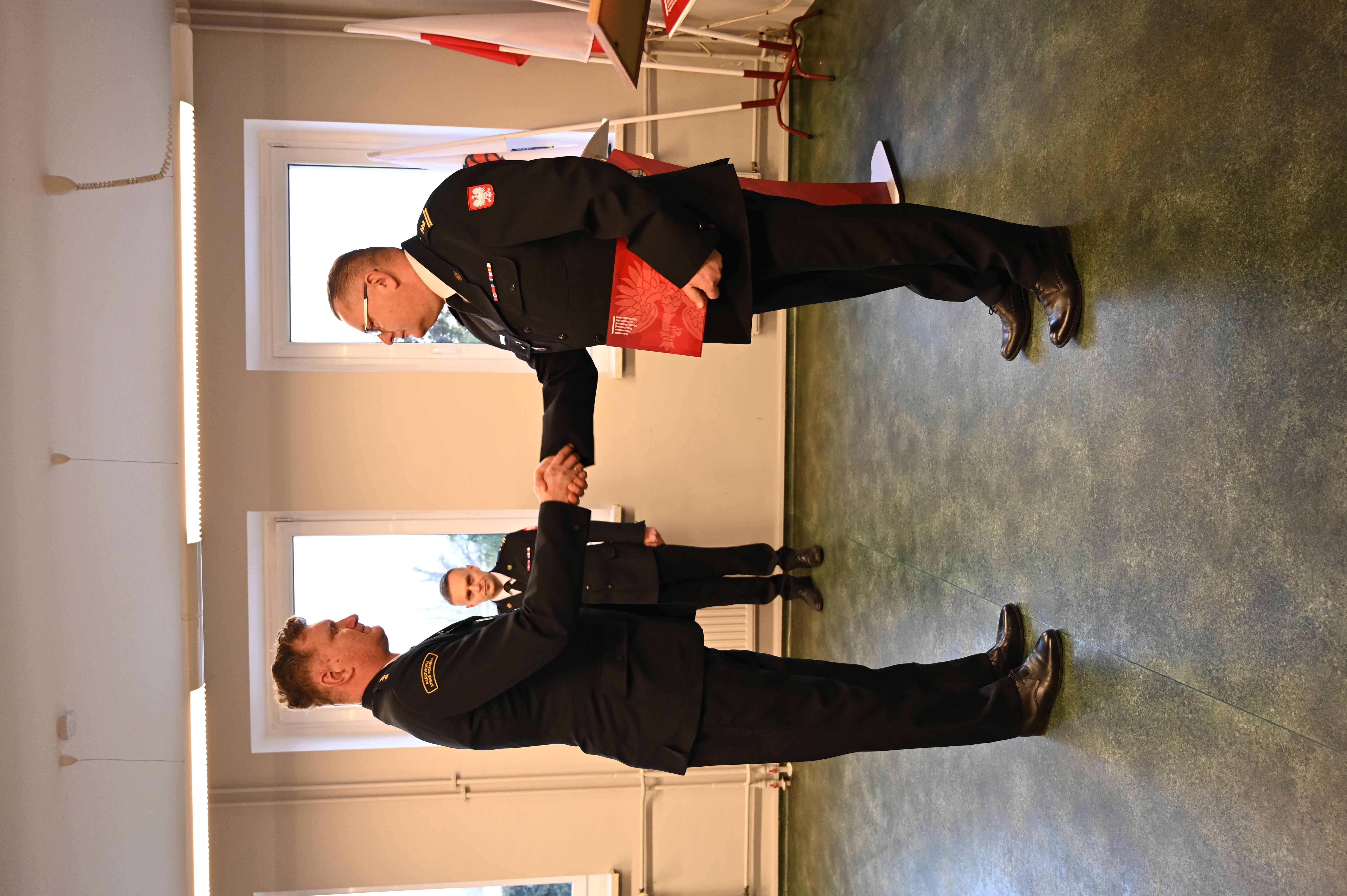 Podczas uroczystości wręczono również nagrodę jubileuszową st. kpt. Marcinowi Sadeckiemu z okazji 25-lecia pracy i służby. Wieloletnia służba stanowi potwierdzenie doświadczenia, profesjonalizmu oraz odpowiedzialności w realizacji ustawowych zadań formacji.