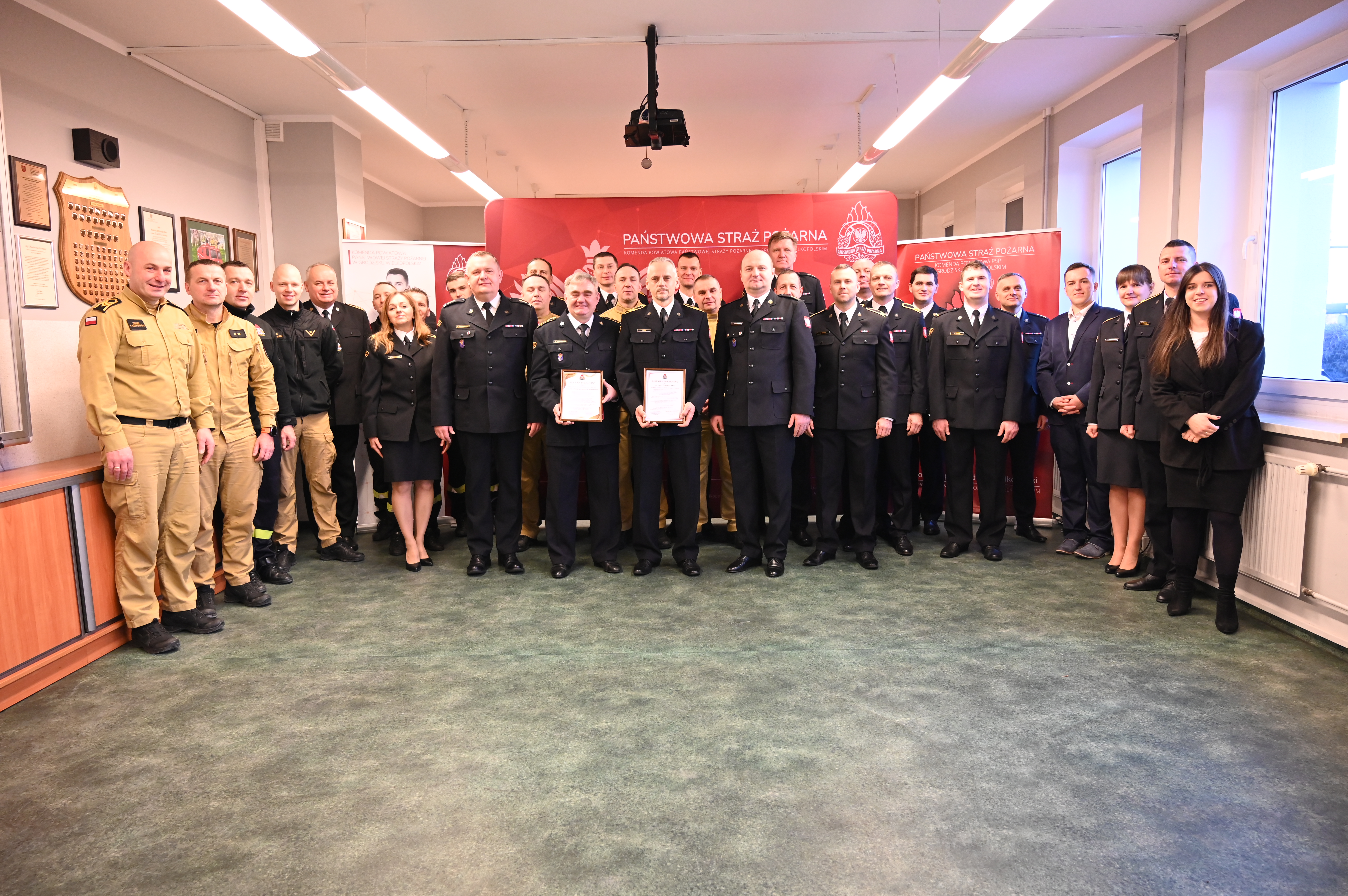 21 stycznia 2026 roku w sali narad Komendy Powiatowej Państwowej Straży Pożarnej w Grodzisku Wielkopolskim odbyła się uroczysta zbiórka, podczas której wręczono nagrody jubileuszowe funkcjonariuszom z wieloletnim stażem pracy i służby.