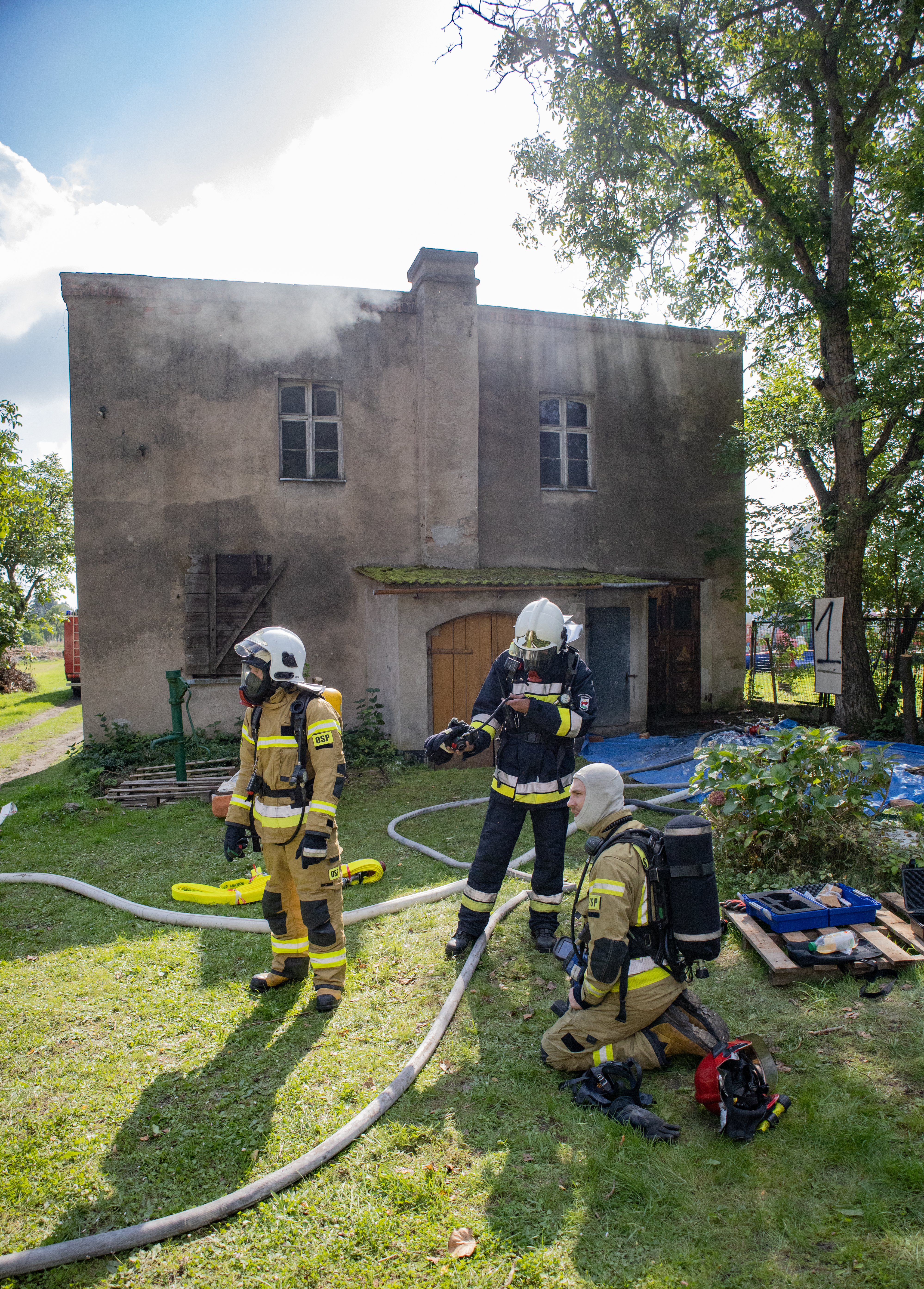 Instruktorzy z Jednostki Ratowniczo – Gaśniczej teren podzielili na trzy stanowiska, na których każda z jednostek ćwiczyła następujące epizody: