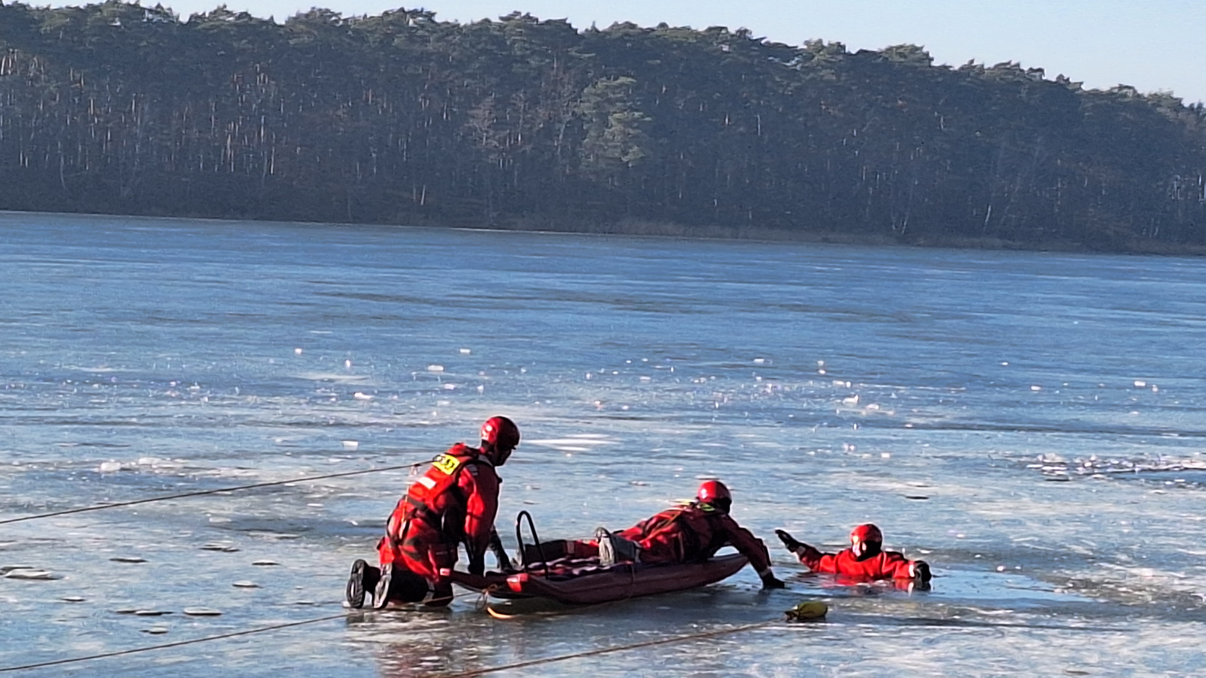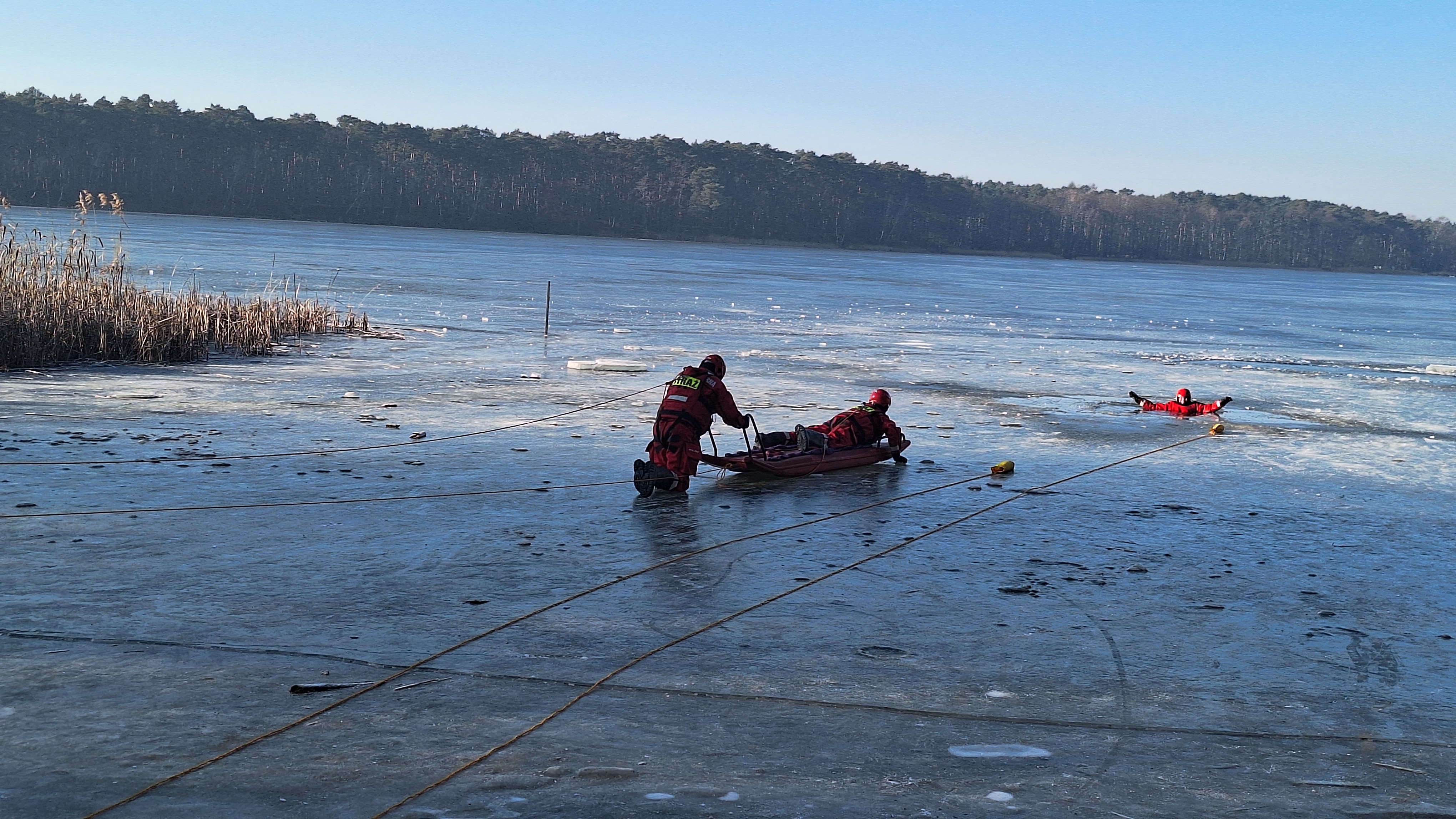 19 stycznia 2026 r. na jeziorze Kuźnickim odbyły się ćwiczenia ćwiczenia z zakresu ratownictwa lodowego.