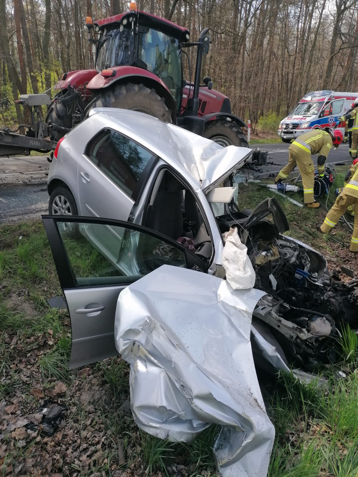 27 kwietnia ok. godz. 14:45 na drodze wojewódzkiej DW 308 przed miejscowością Ujzad doszło do zderzenia sam. osobowego z ciągnikiem rolniczym.