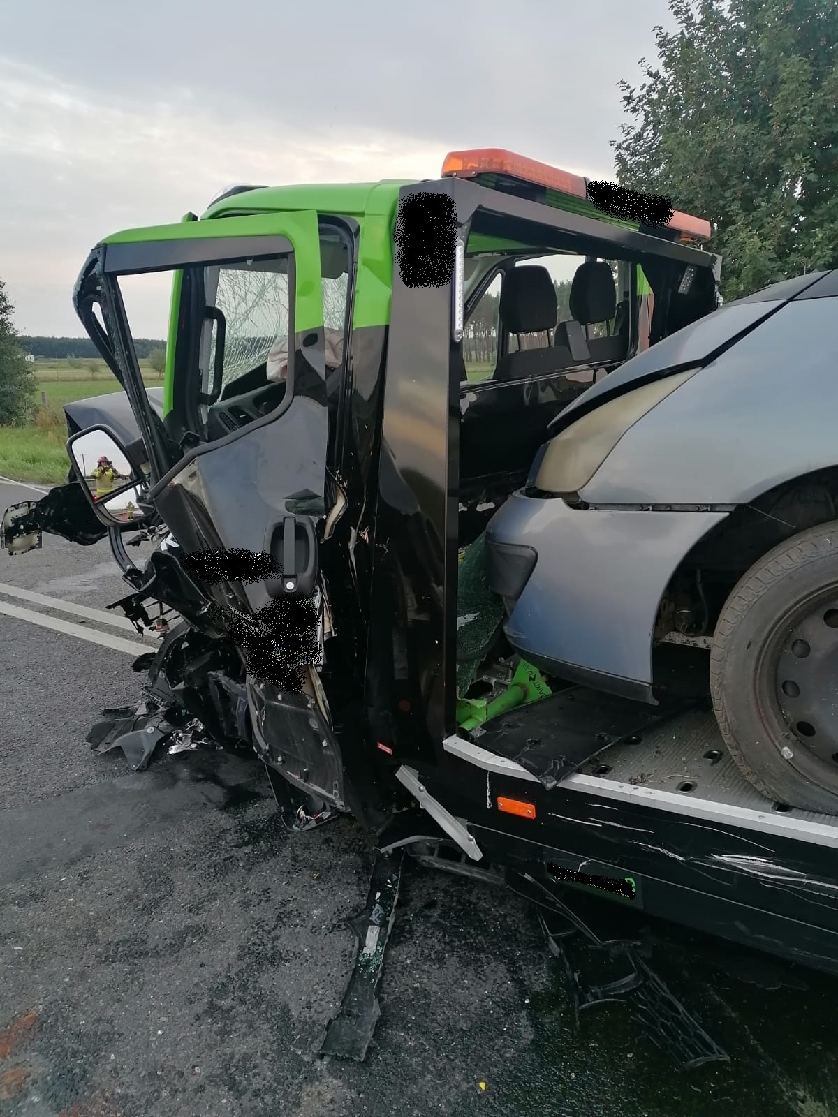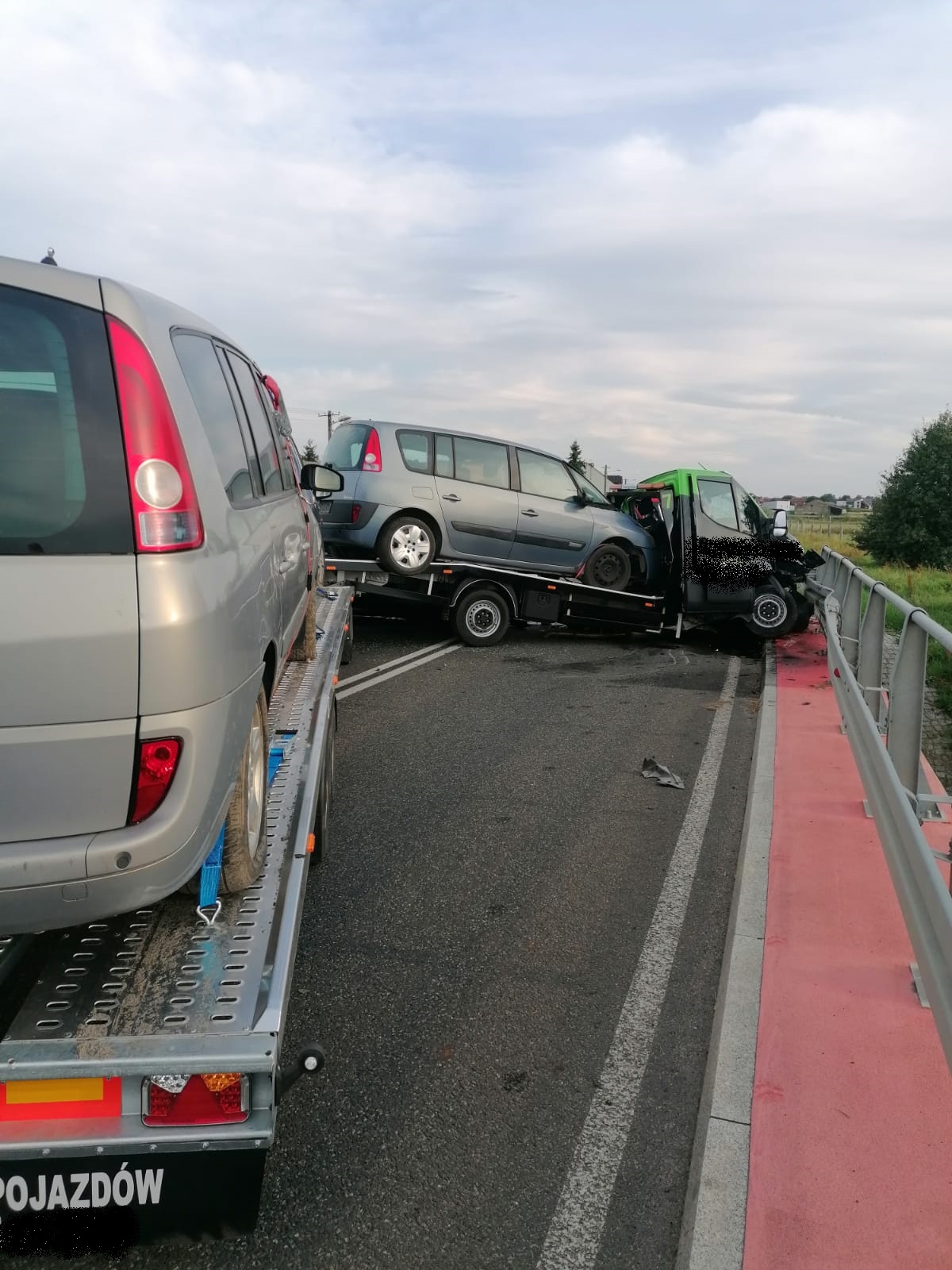 Mimo groźnie wyglądającego zderzenia osobowego BMW z autolawetą wraz z lawetą transportującą pojazdy, ostatecznie nikt z uczestników nie odniósł większych obrażeń. Po przebadaniu przez lekarza okazało się, że nie jest wymagana hospitalizacja uczestników. BMW podróżowali: 18 letni mężczyzna i 17 letnia kobieta, zaś zestawem do przewozu pojazdów kierował 27 letni mężczyzna.