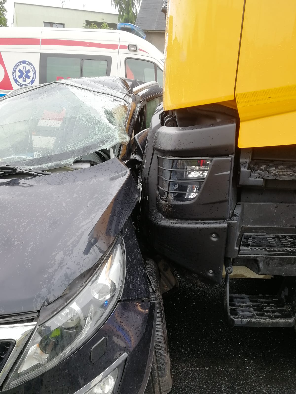 Po przybyciu na miejsce okazało się, że w bok pojazdu osobowego uderzyła ciężarówka. Kierowca i pasażer z uwagi na zniszczenia osobówki, pozostawali ranni w pojeździe. Dwie kolejne osoby z pojazdu ciężarowego na szczęście nie odniosły obrażeń.