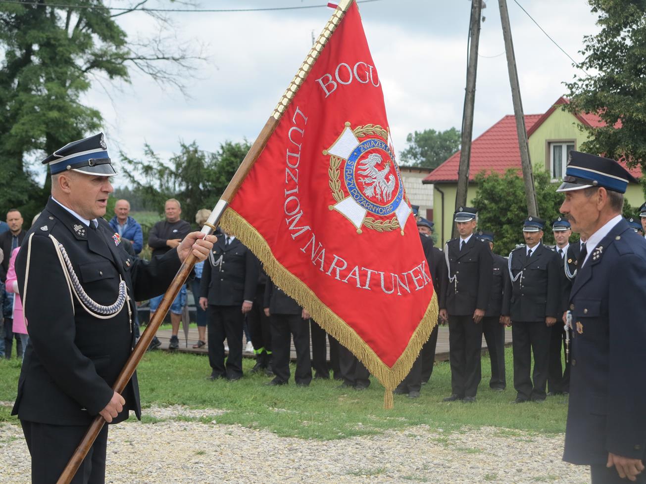 Jubileusz powstania jednostki był także okazją do wręczenia jednostce sztandaru. W imieniu Zarządu Wojewódzkiego OSP RP wręczył go Prezes Oddziału Powiatowego OSP RP dh Władysław Piątkowski.