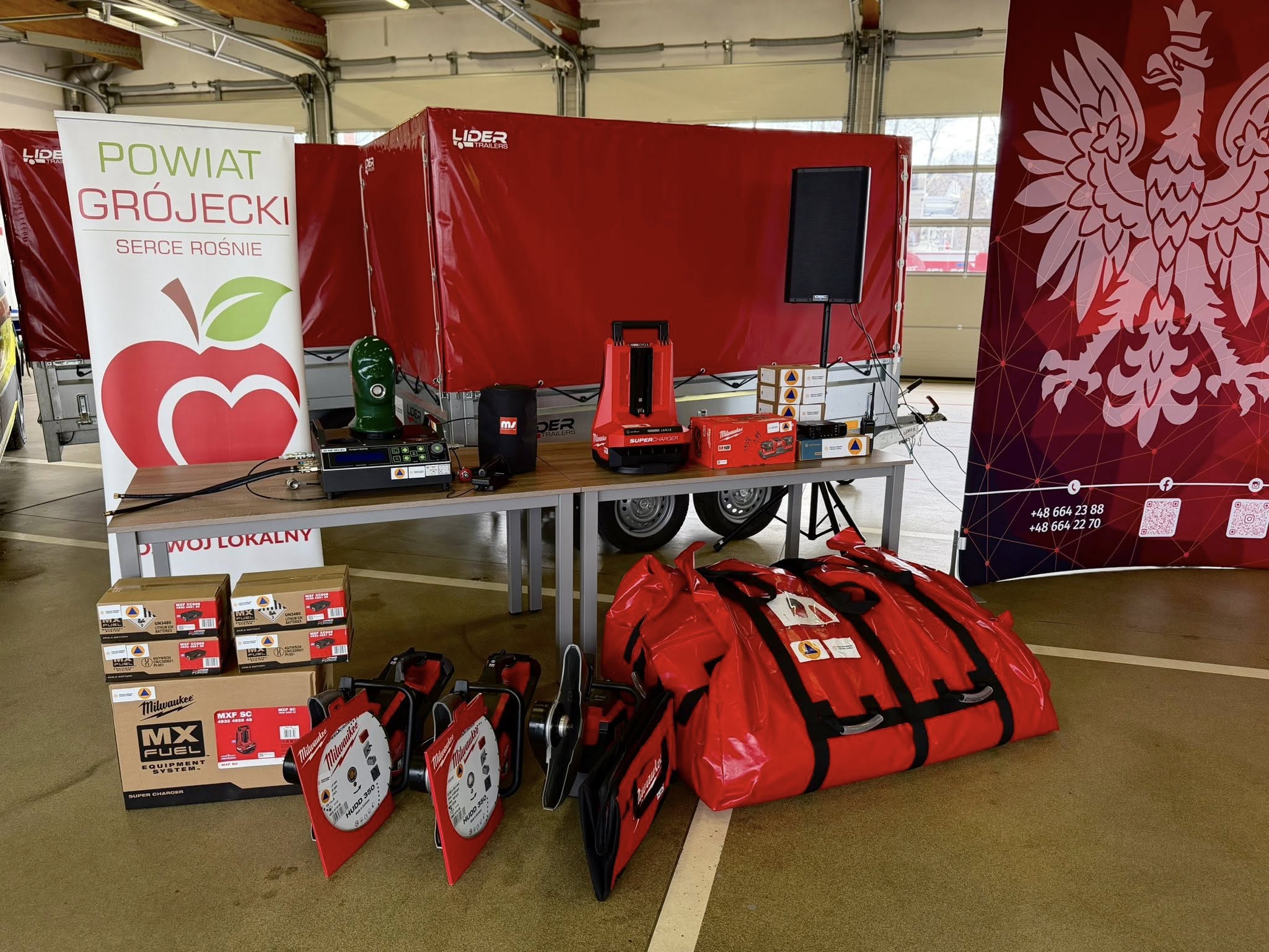 Jednym z kluczowych elementów programu jest doposażenie strażaków w nowoczesne środki ochrony indywidualnej oraz specjalistyczny sprzęt ratowniczy. W ramach projektu zakupiono m.in. urządzenie do sprawdzania szczelności masek ochronnych, które pozwala na bieżąco kontrolować stan sprzętu ochrony dróg oddechowych. Znaczącym wzmocnieniem zaplecza technicznego jest agregat prądotwórczy na przyczepie o dużej mocy umożliwiający zapewnienie zasilania w miejscach pozbawionych energii elektrycznej. Wśród zakupionego sprzętu znalazły się również pilarki oraz przecinarki elektryczne, zestaw PSP R1, akumulatorowe maszty oświetleniowe, radiostacje cyfrowe, namiot pneumatyczny z pełnym wyposażeniem, który może pełnić funkcję tymczasowego punktu medycznego, miejsca ewakuacji lub zaplecza logistycznego podczas długotrwałych działań. Pompa szlamowa o dużej wydajności przeznaczona jest do usuwania wody i zanieczyszczeń z zalanych terenów.