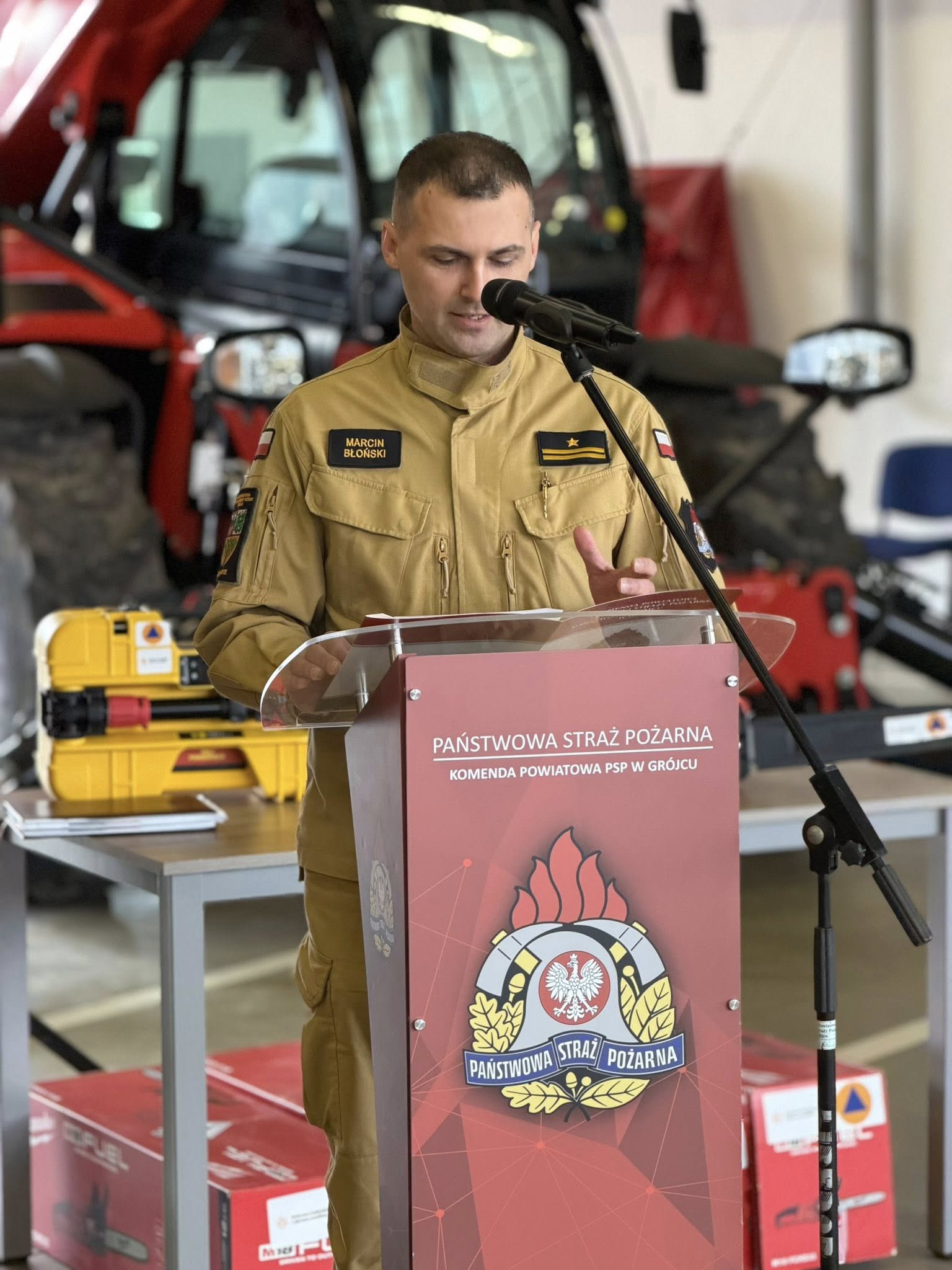 Briefing prasowy podsumowywujący zakupy zrealizowane przez Powiat Grójecki, KP PSP w Grójcu oraz PCM Grójec