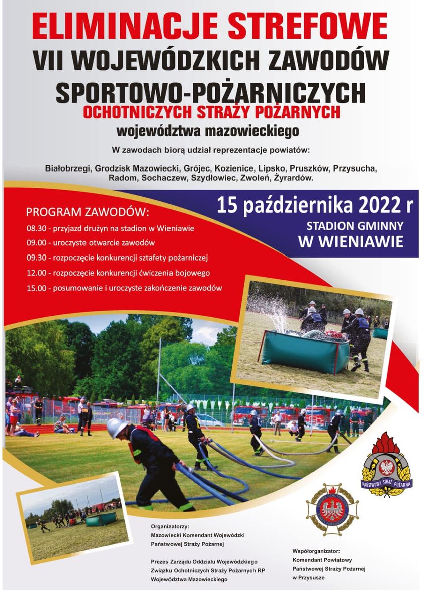 Serdecznie zapraszamy na Eliminacje Strefowe VII Wojewódzkich Zawodów Sportowo-Pożarniczych Ochotniczych Straży Pożarnych, które rozpoczną się o godz. 9:00 w sobotę, 15 października 2022 roku na stadionie gminnym w Wieniawie.