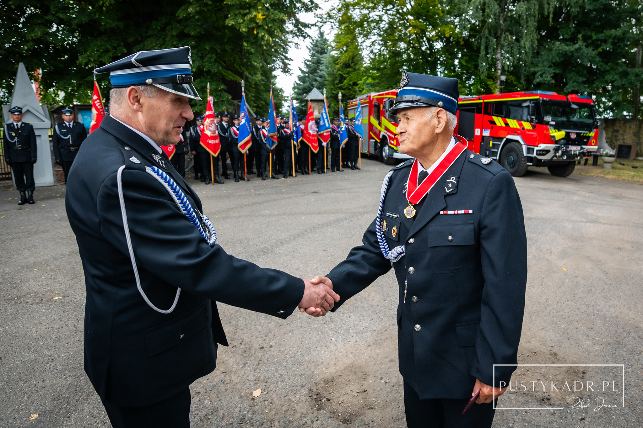 Uroczystość była także okazją do wręczenia medali, odznaczeń oraz wyróżnień. Punktem kulminacyjnym było wręczenie aktów przekazania samochodów pożarniczych: średniego samochodu ratowniczo-gaśniczego marki Volvo o wartości 1 681 902 zł oraz ciężkiego samochodu ratowniczo-gaśniczego marki Tatra 815 o wartości 2 999 964 zł.
